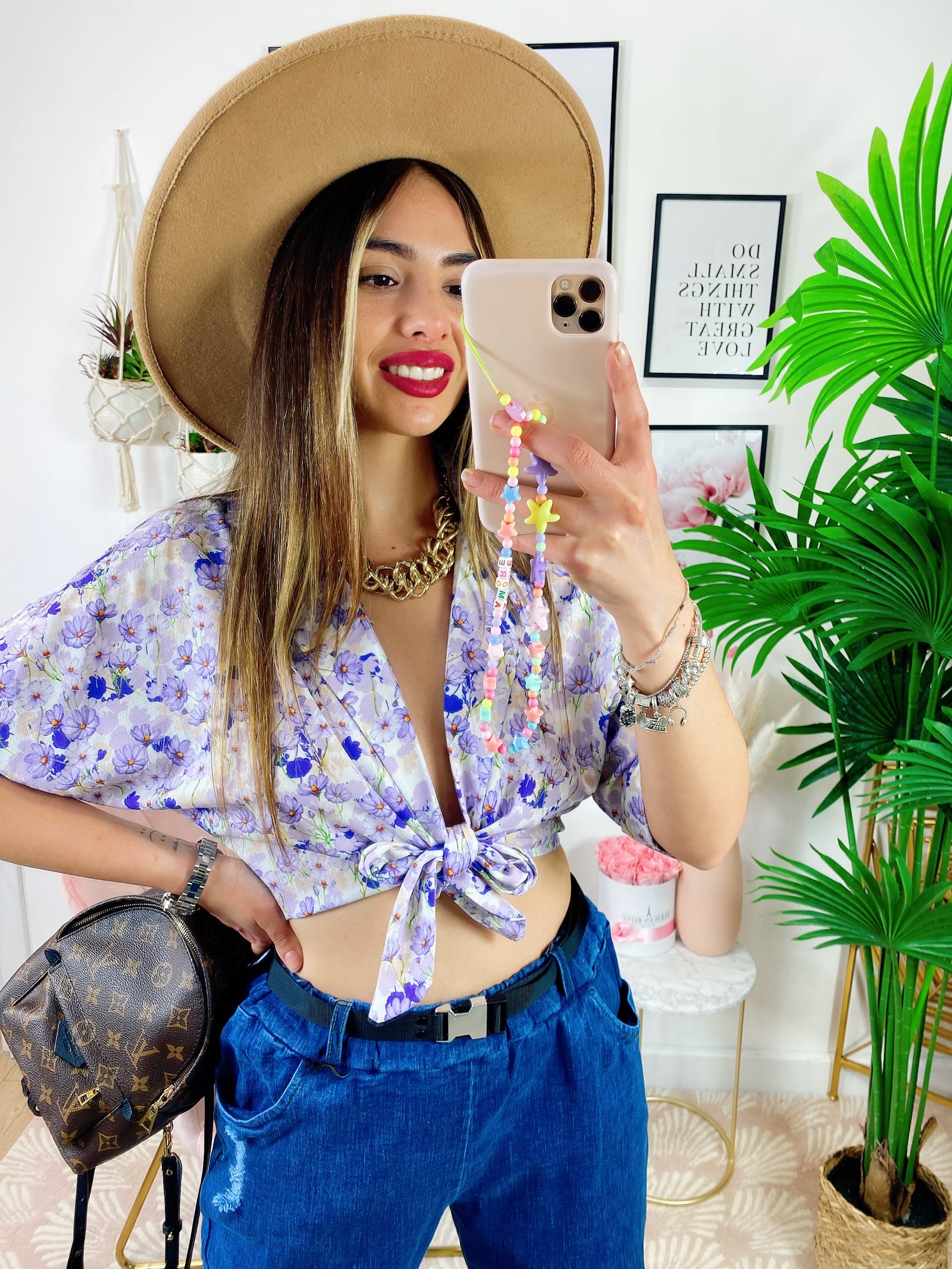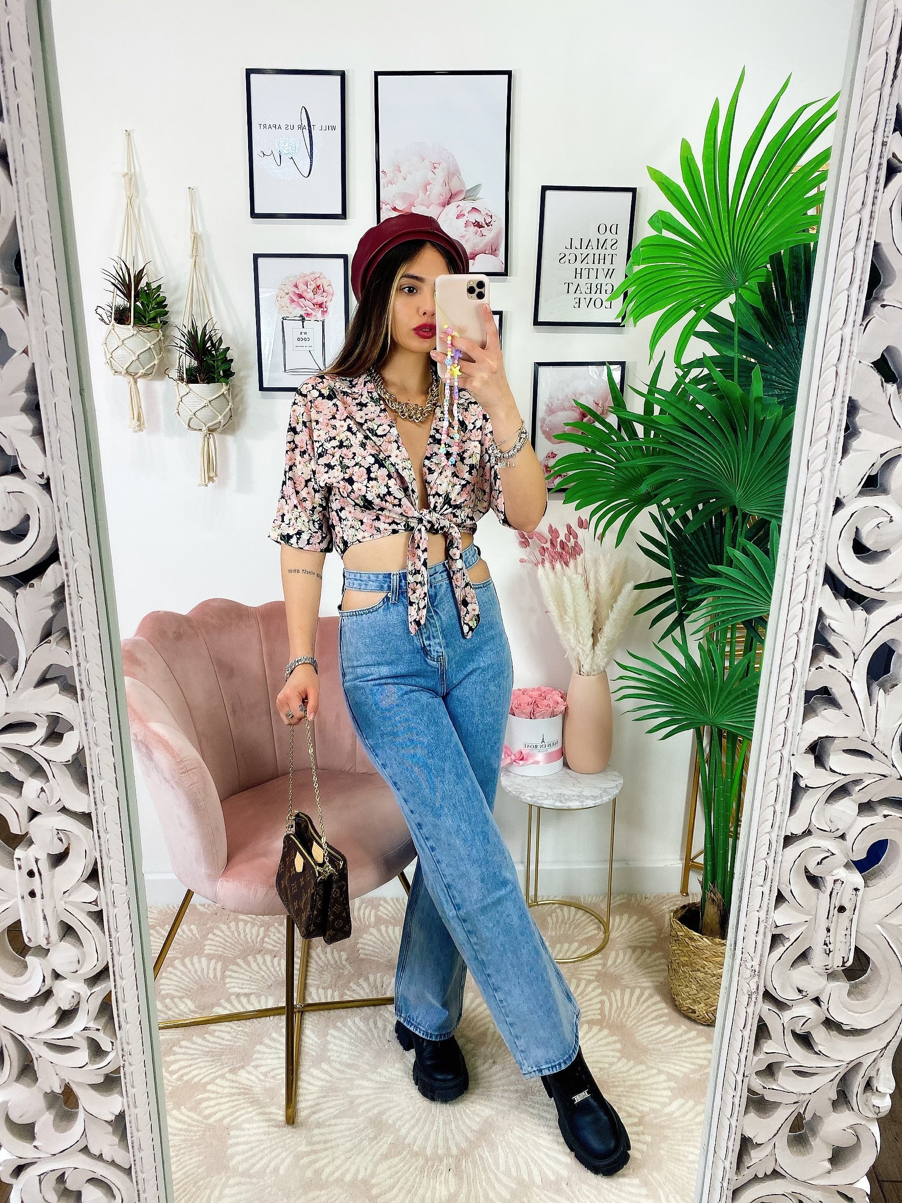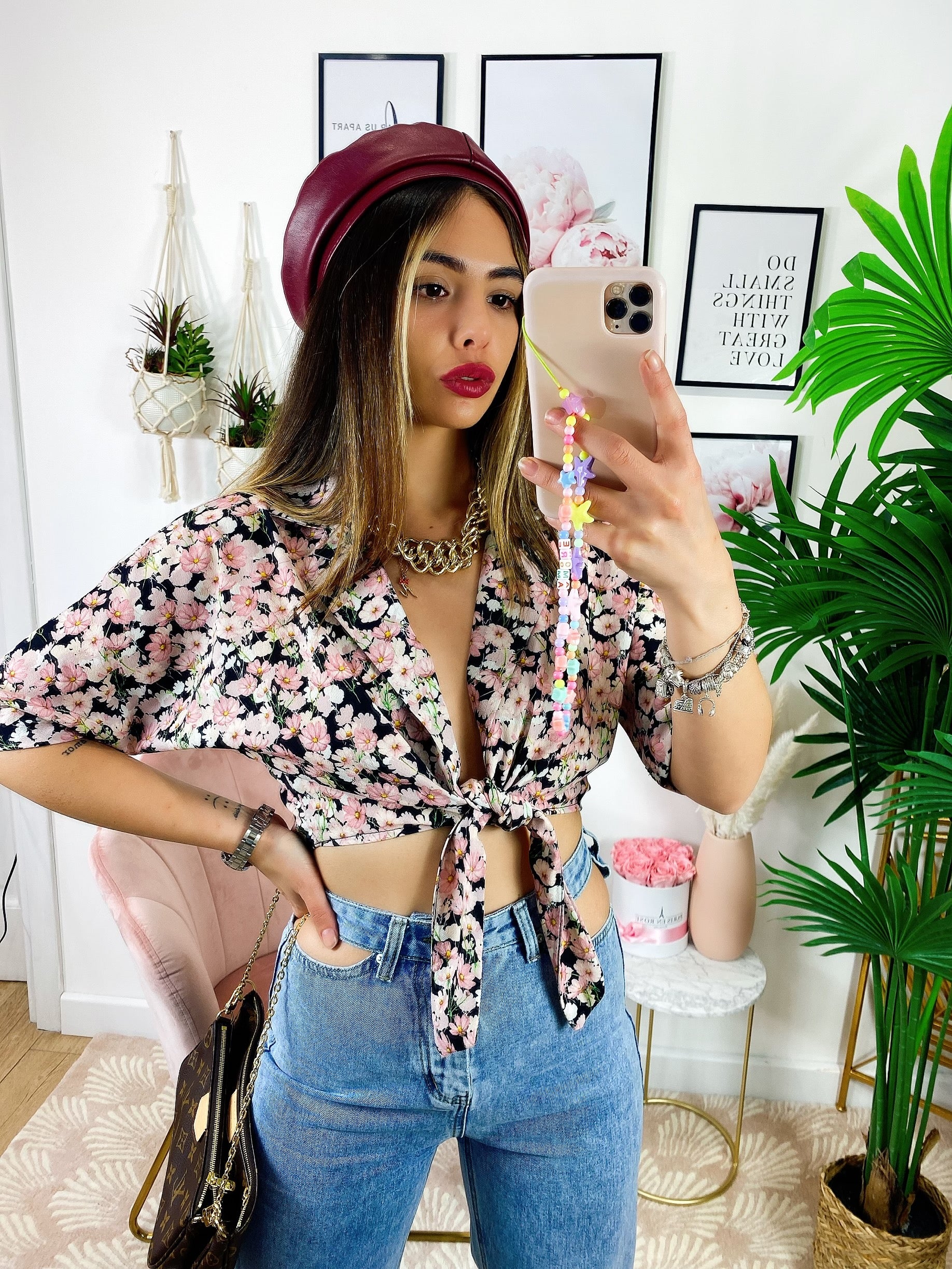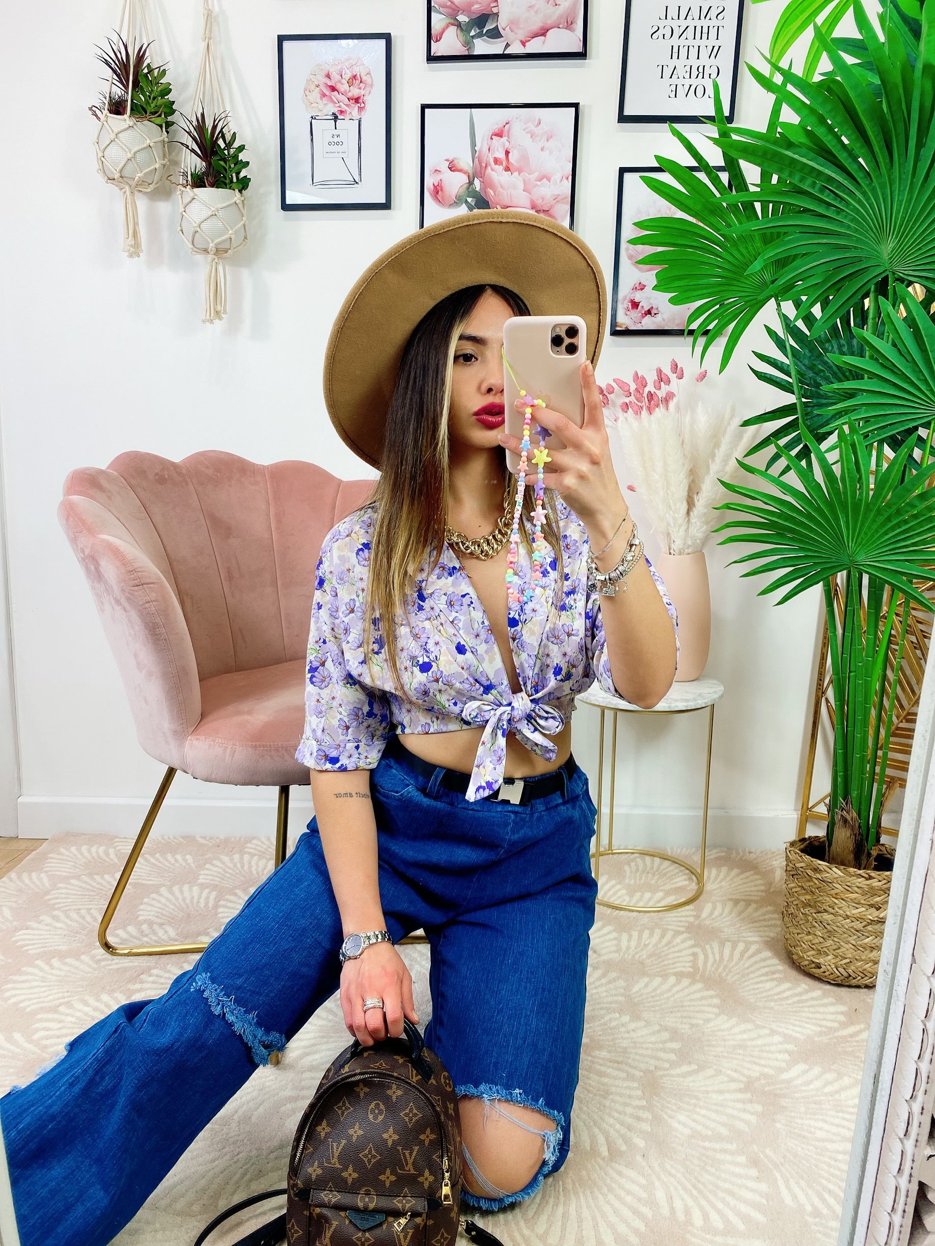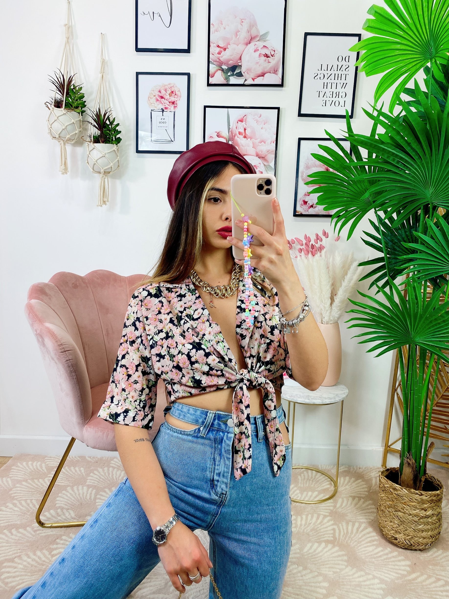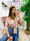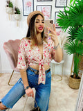 Blusa floreale con fiocco