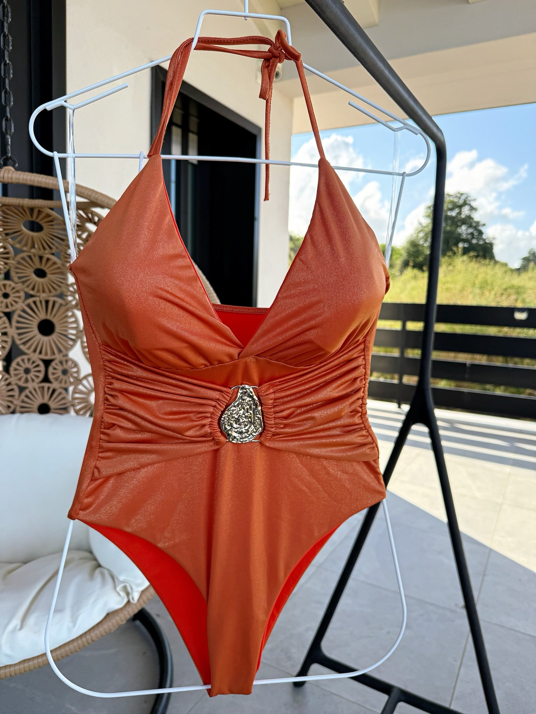 Scopri il nostro esclusivo body mare “Aura”, realizzato in un pregiato tessuto lurex leggermente brillantinato che cattura ogni raggio di sole. La texture luminosa accarezza le curve con eleganza, mentre il dettaglio centrale gioiello dona un tocco di raffinatezza unica. Disponibile in tre tonalità sofisticate: rame caldo, cioccolato intenso e turchese brillante.