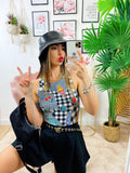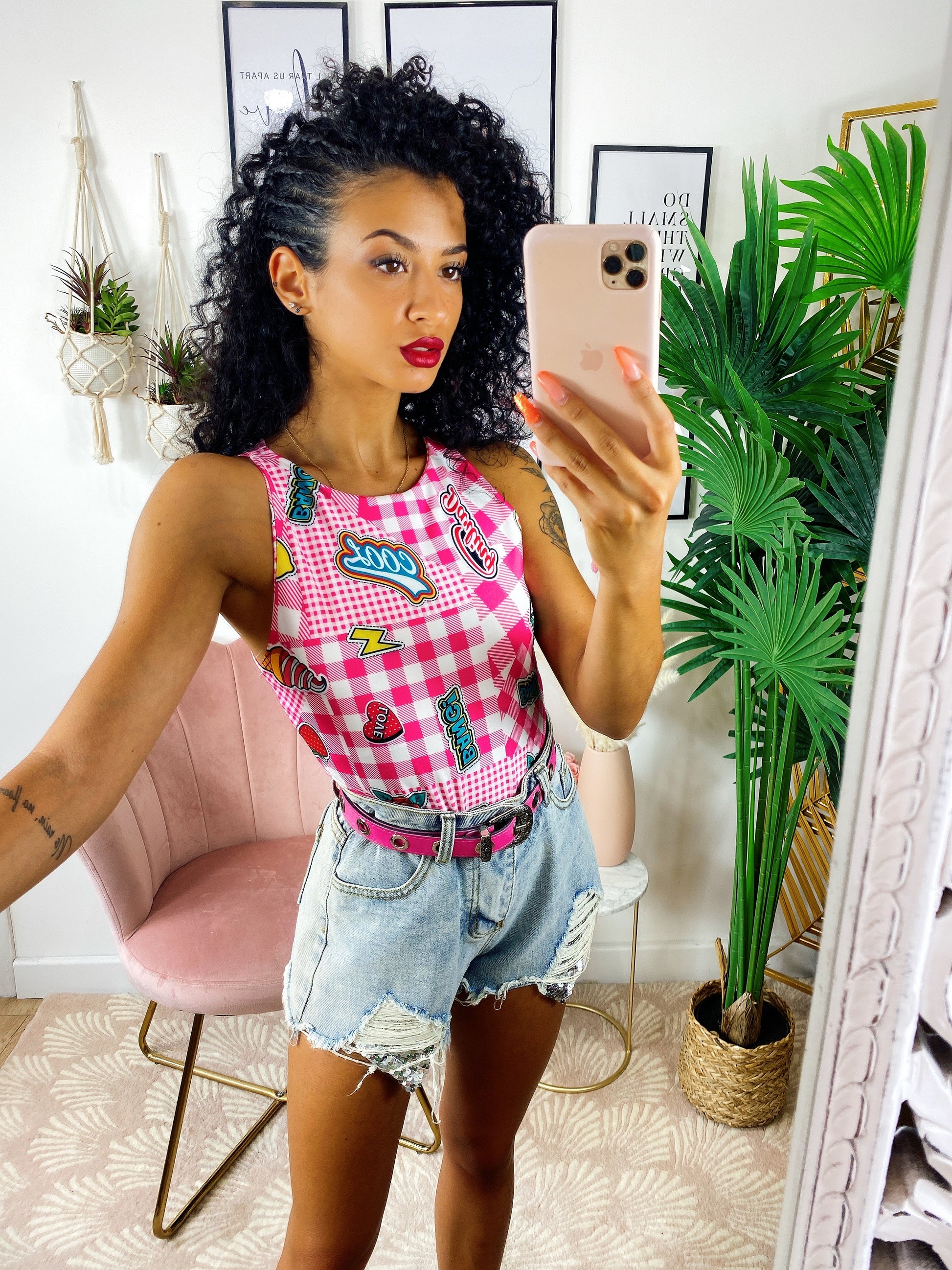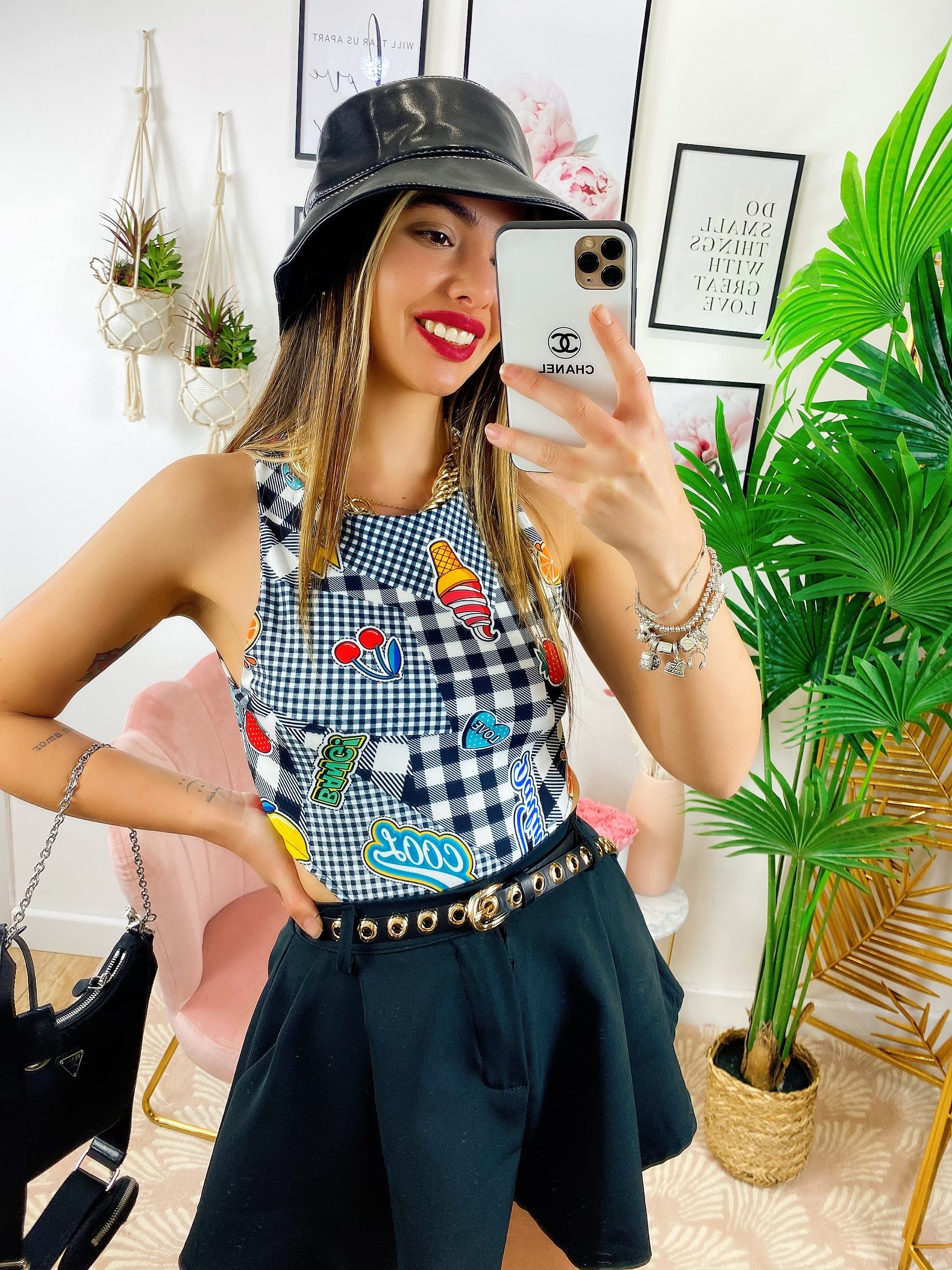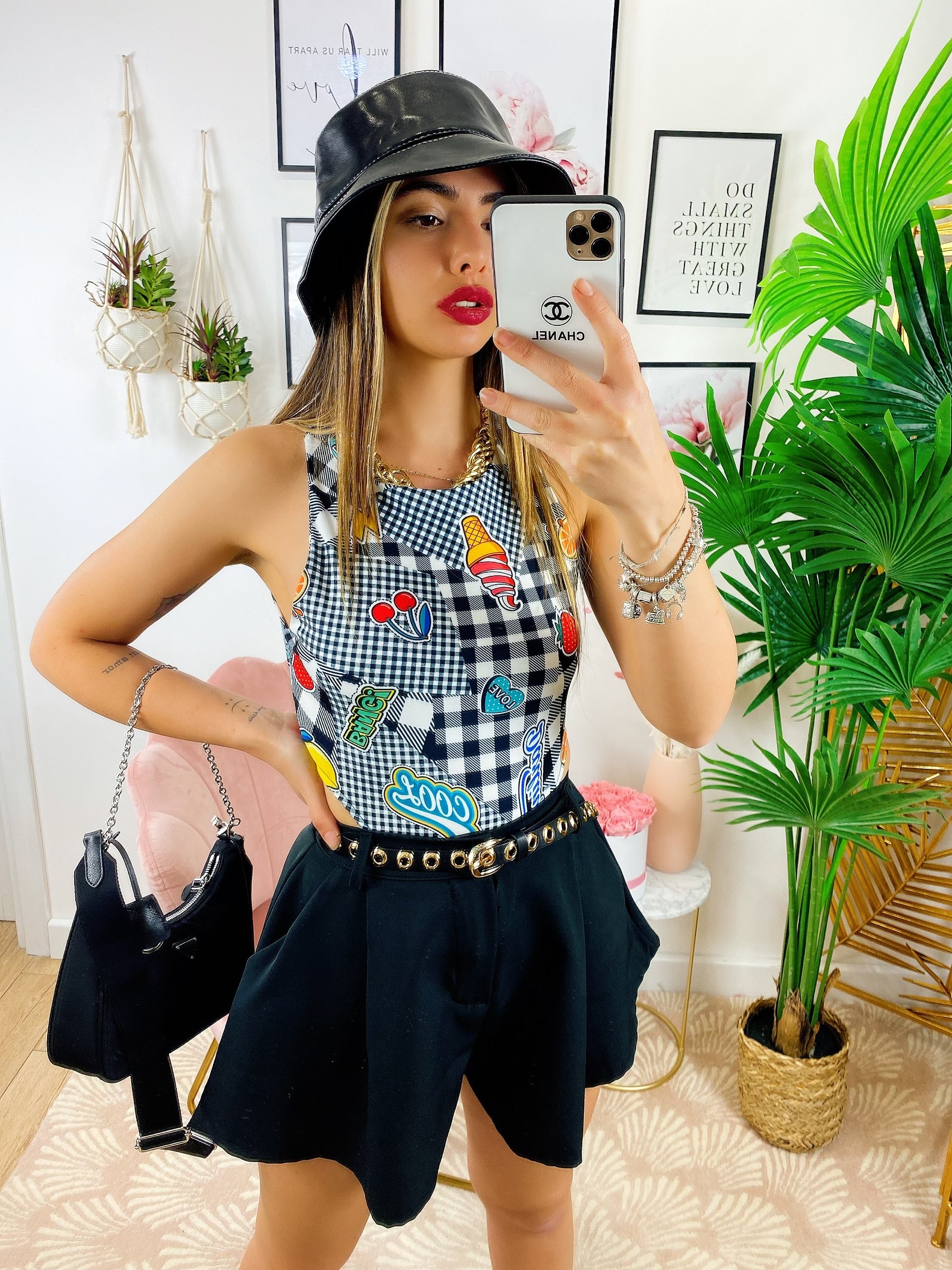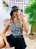 Body Cool a girocollo molto semplice ma sexy in quanto molto sgambato. Stampe a contrasto colorate