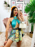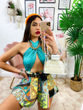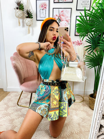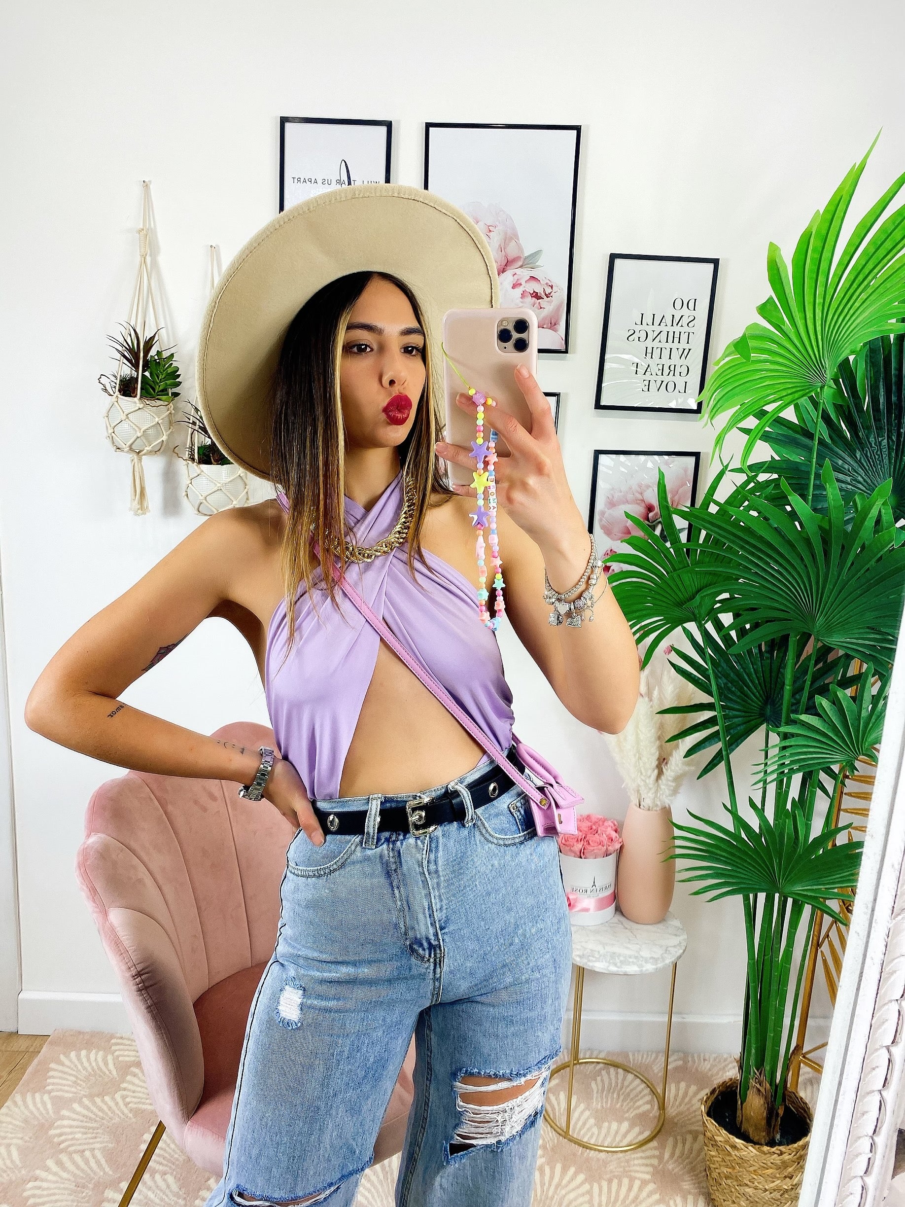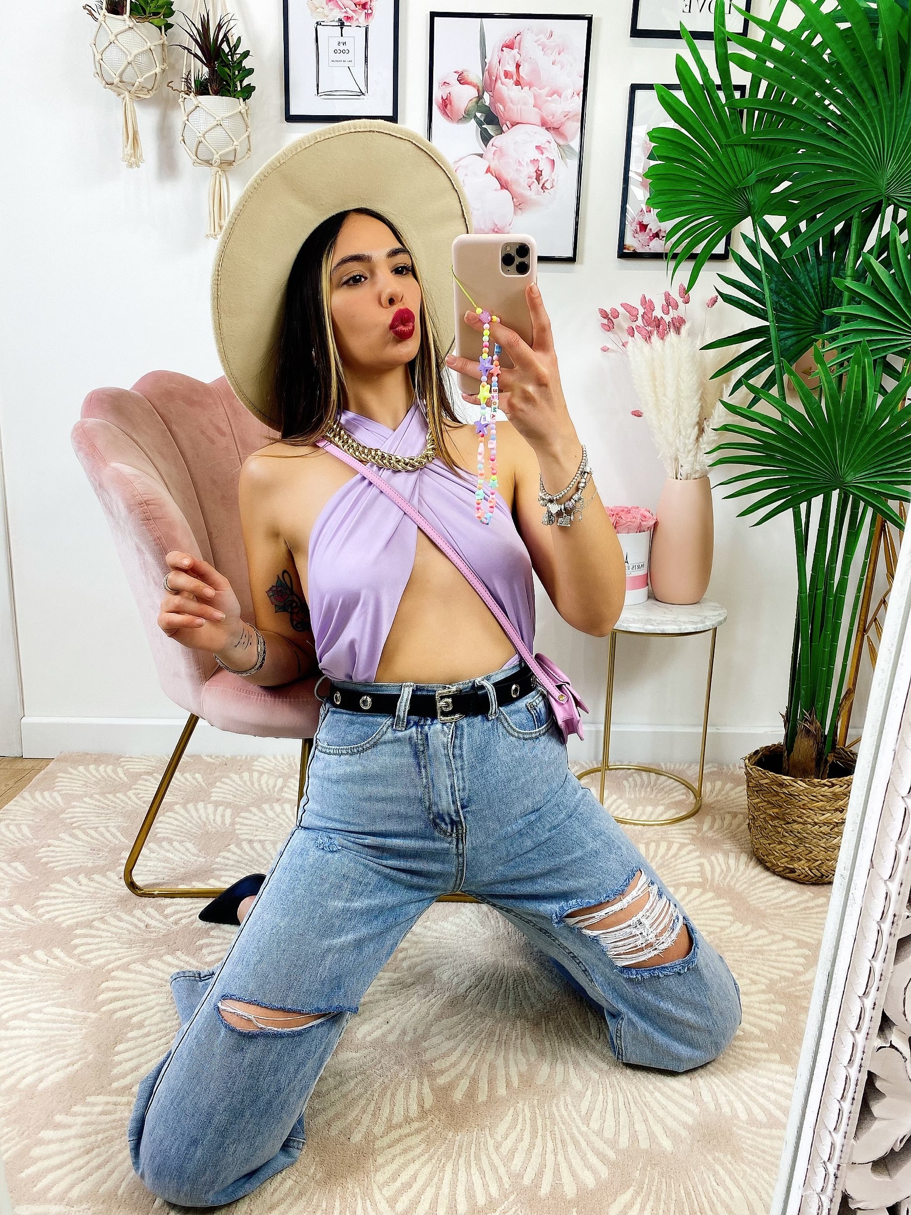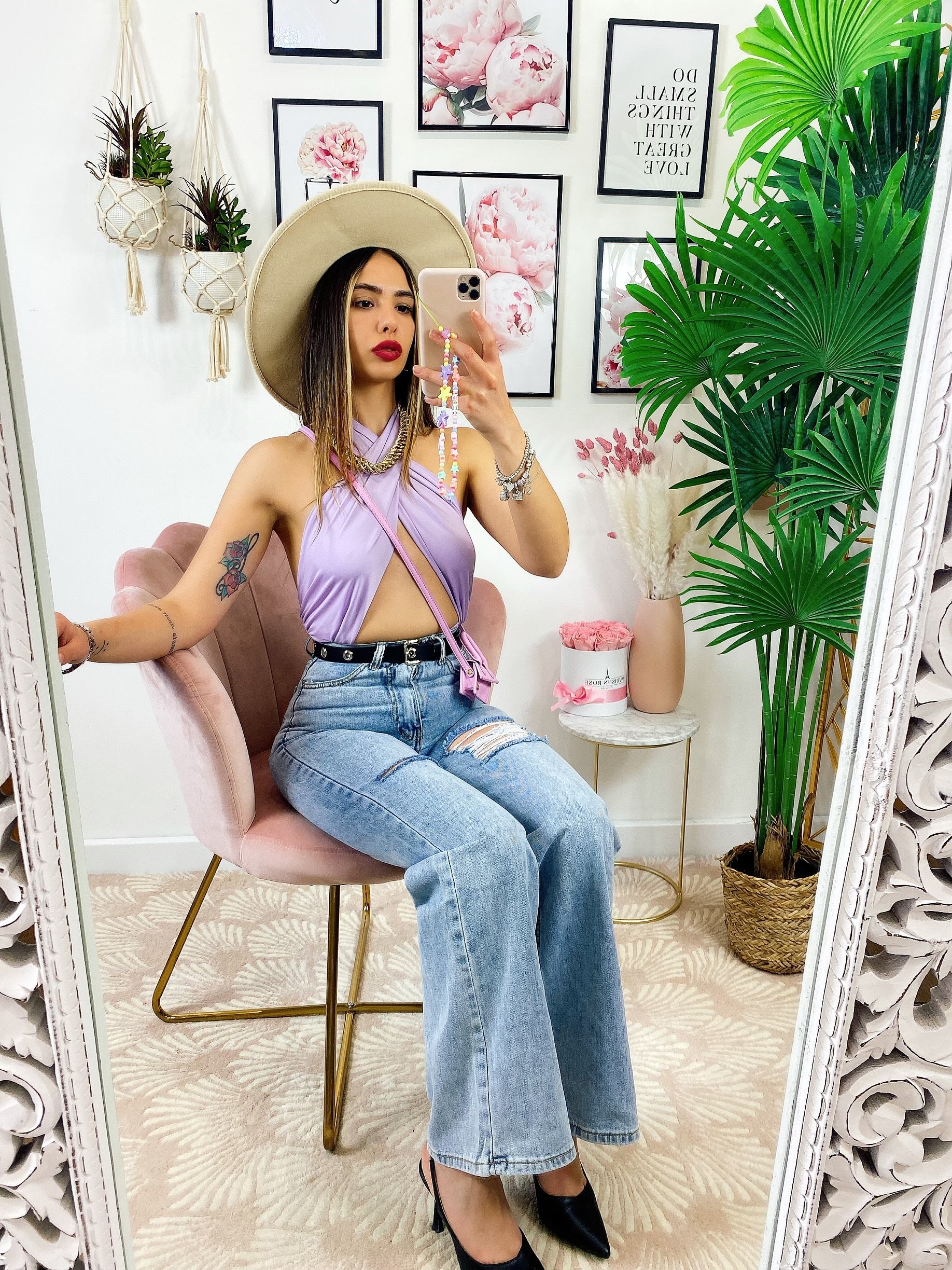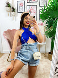 Body elasticizzato con incroci sul seno tessuto elasticizzato.