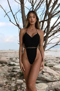 Body o costume in lycra con coppe e aperture su tutto il costume. Altezza modella 1,80