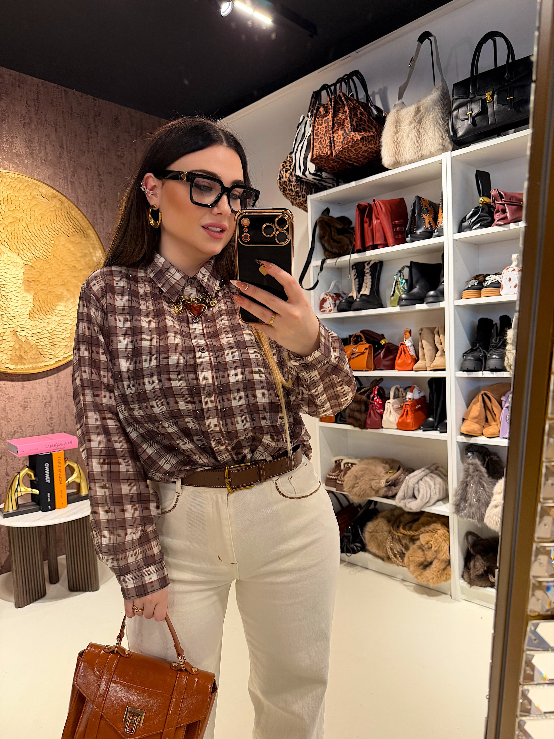 Realizzato in morbido cotone a quadri, questo camice è perfetto per un look elegante e trendy. Le borchie aggiungono un tocco rock ma sofisticato. Il tessuto leggero e comodo lo rende ideale per l'utilizzo quotidiano. Un must-have per il tuo guardaroba.