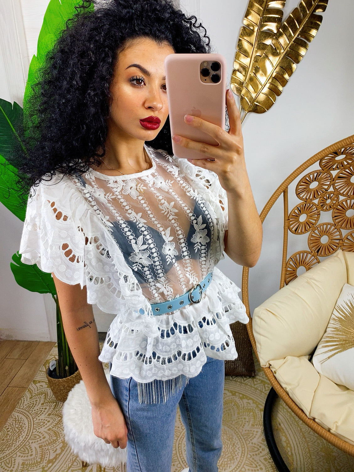 Camicetta in pizzo San Gallo con rouche