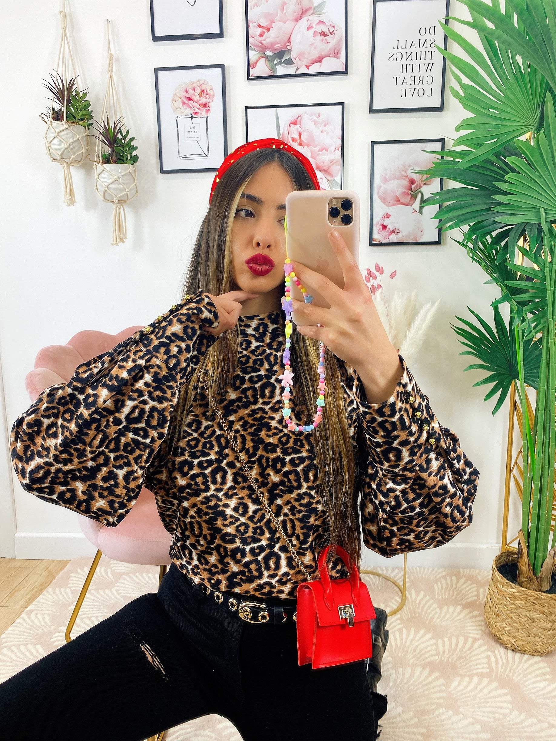 Camicetta con stampa animalier. Manica lunga particolare e chic con qualsiasi outfit