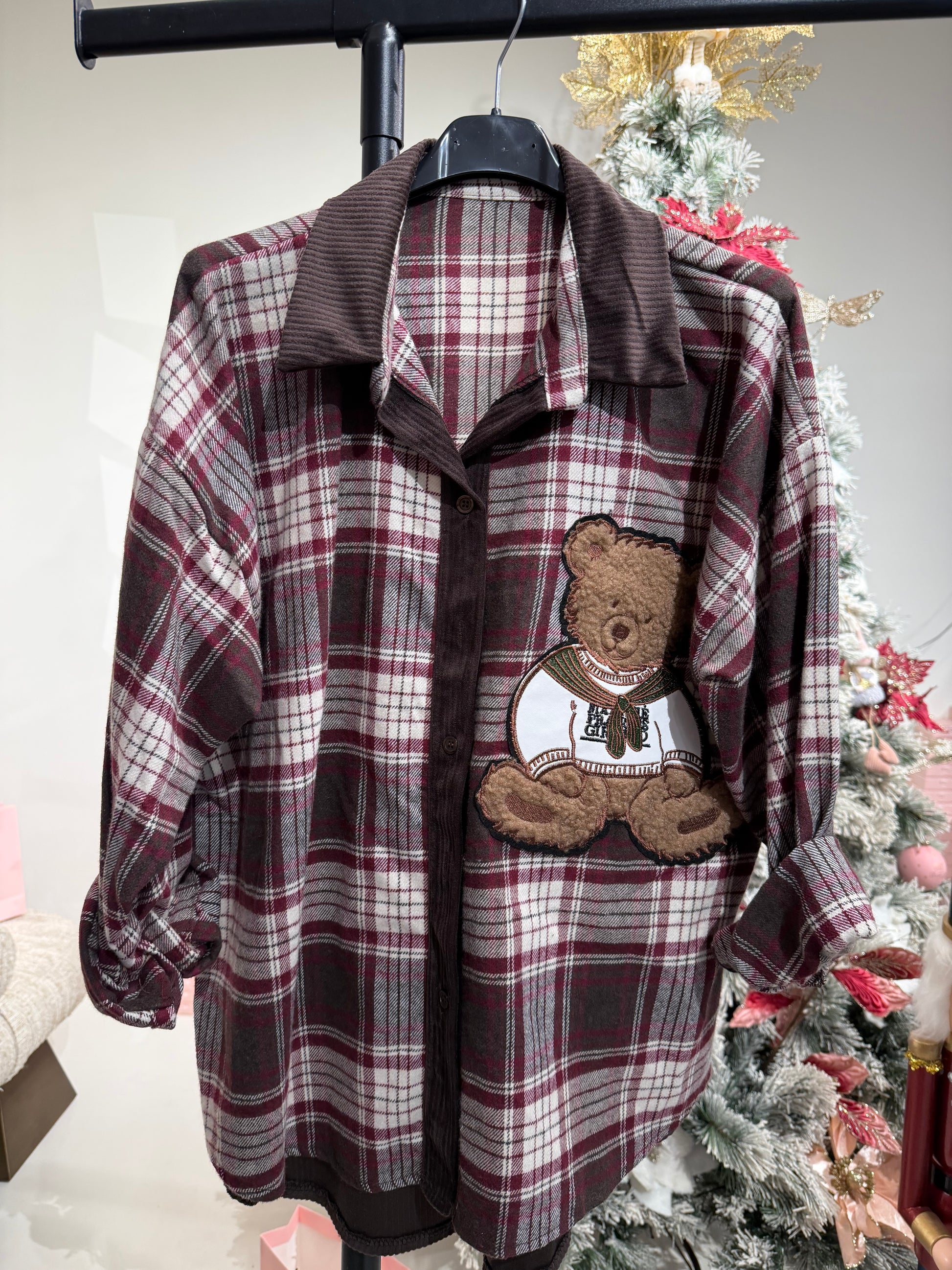 Camicia a quadri con teddy in rilievo