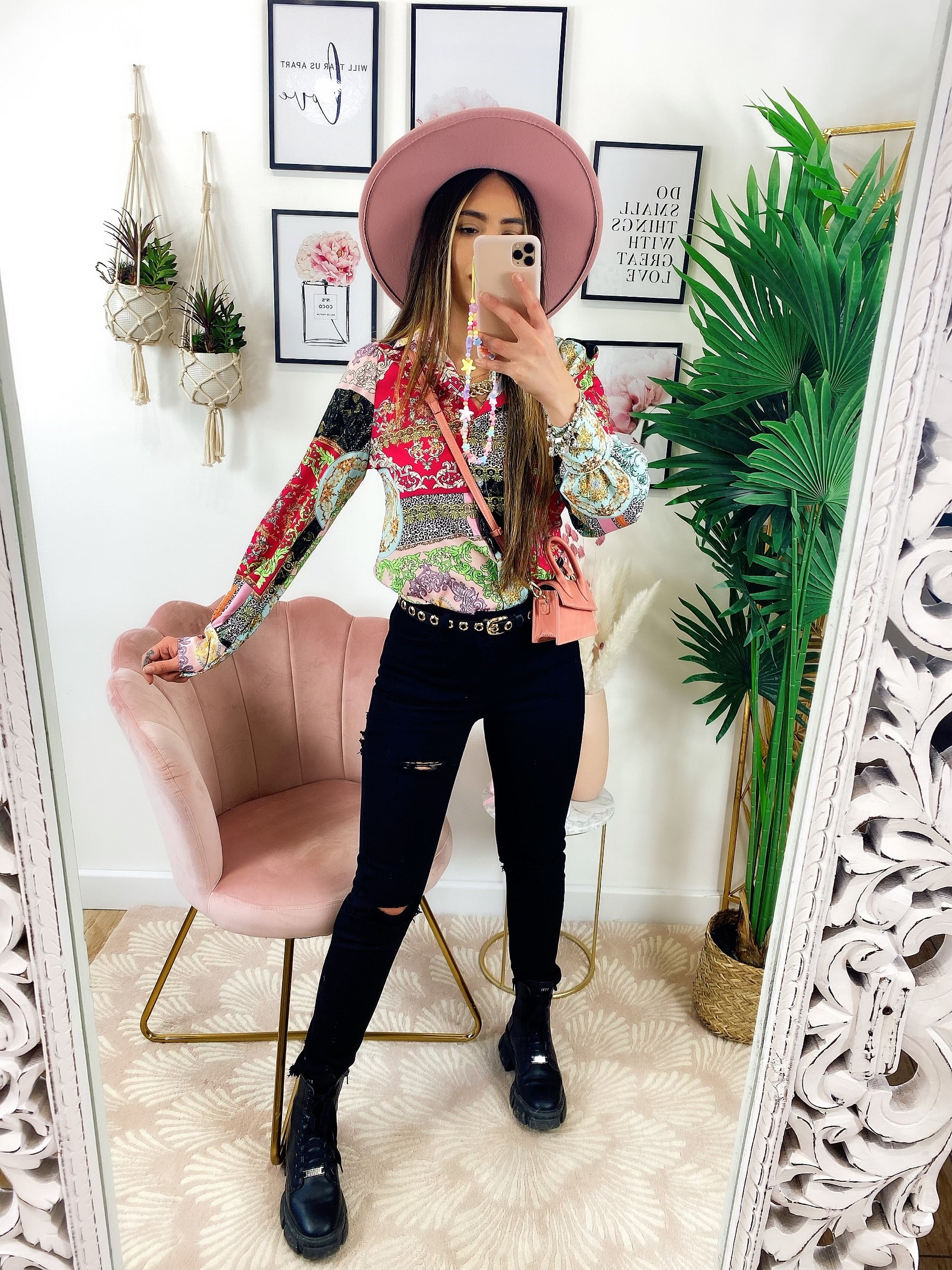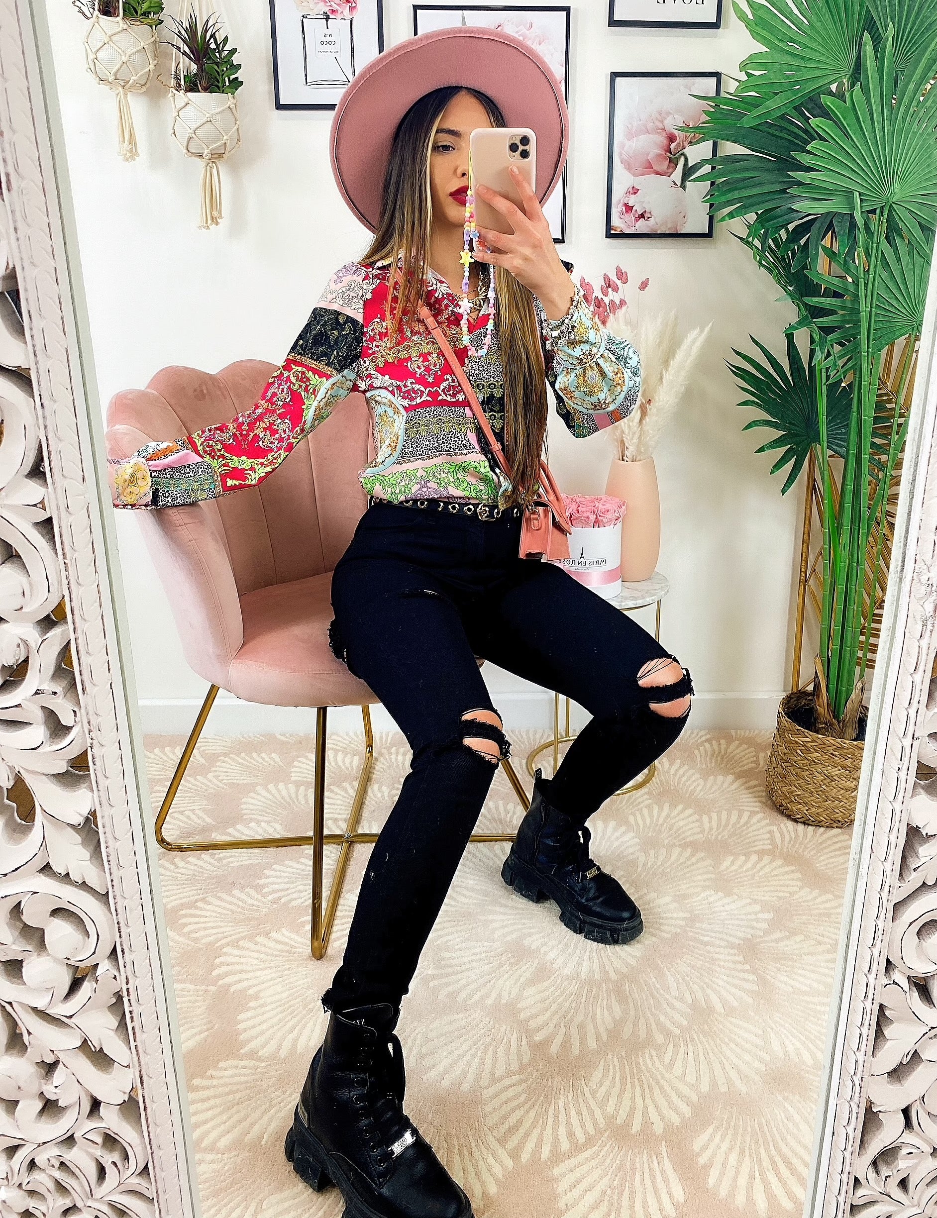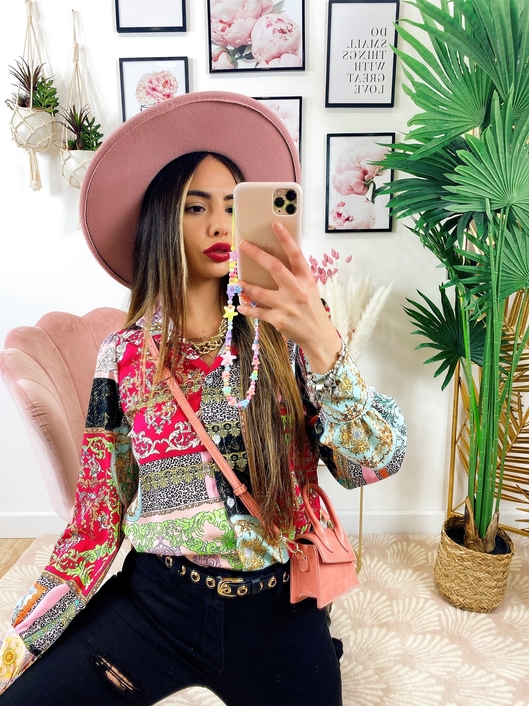 Camicia stampa etnica con sfumature fucsia taglia unica.