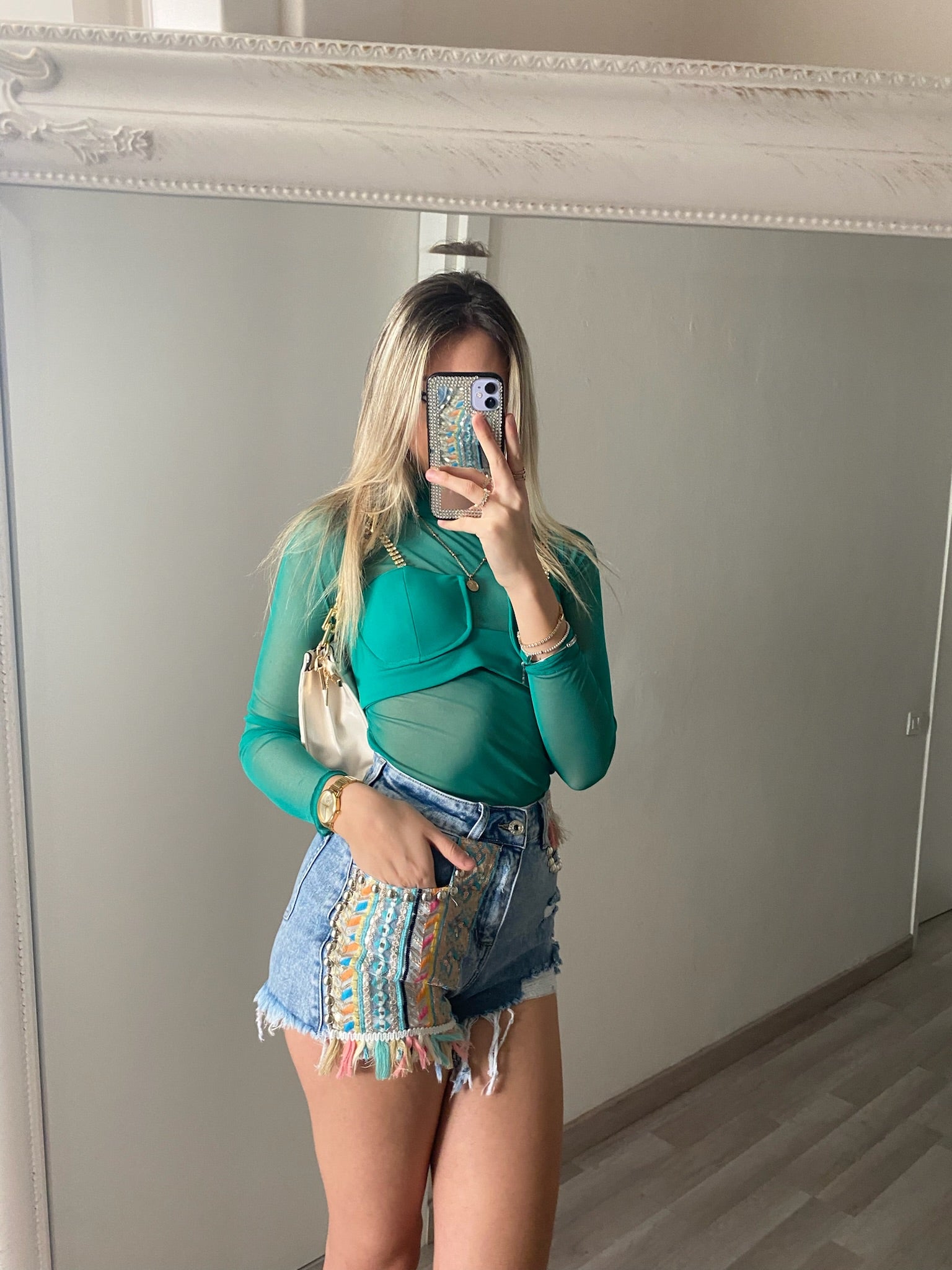 Camicia velata con corpino verde