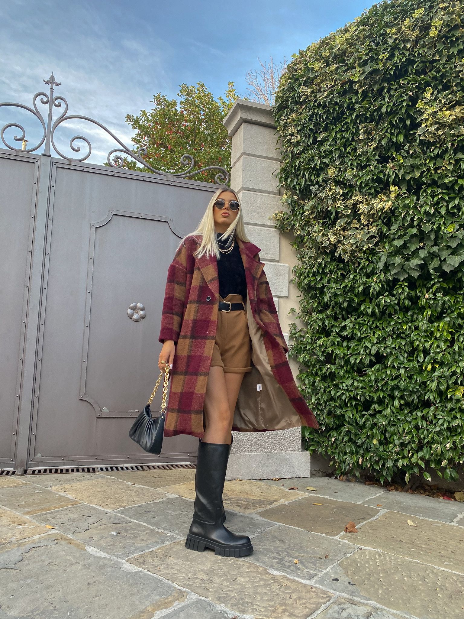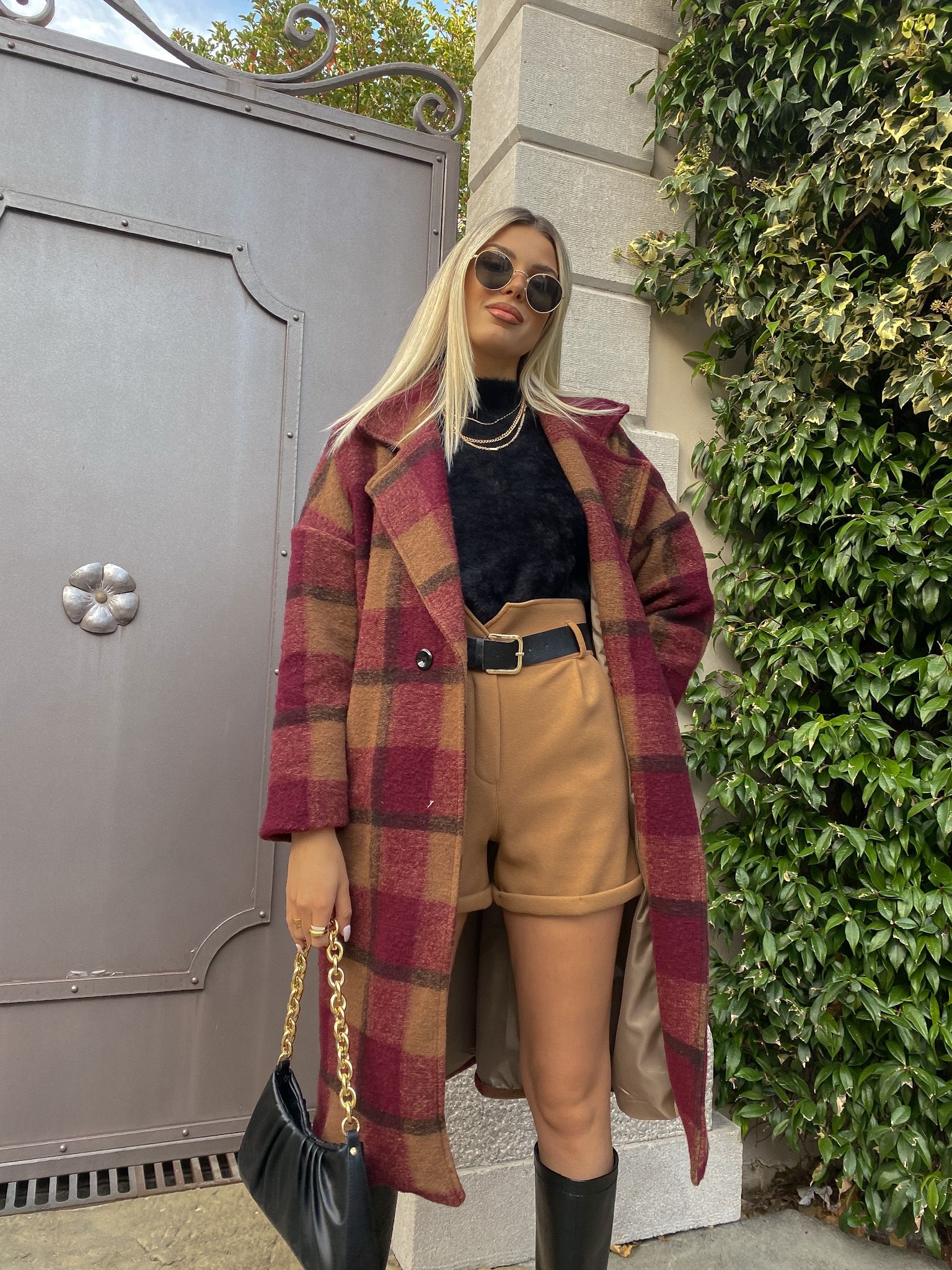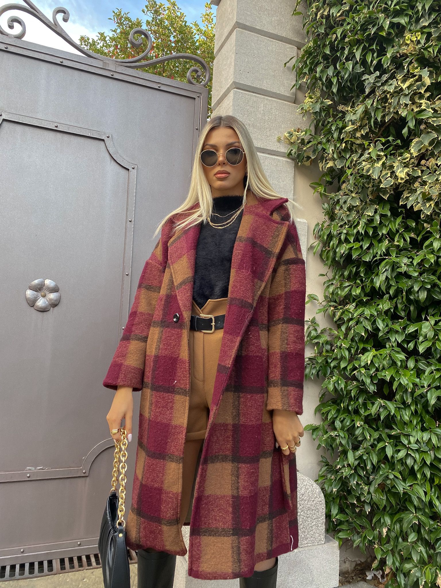 Cappotto in panno peonia e Camel in tessuto comodo e caldo. Cintura tono su tono.