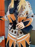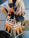 Cardigan in tessuto medio pesante con frange e cintura in vita.