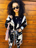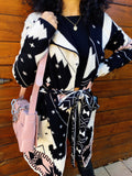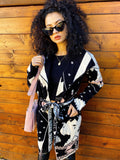 Cardigan in tessuto medio pesante con frange e cintura in vita. Alta qualità