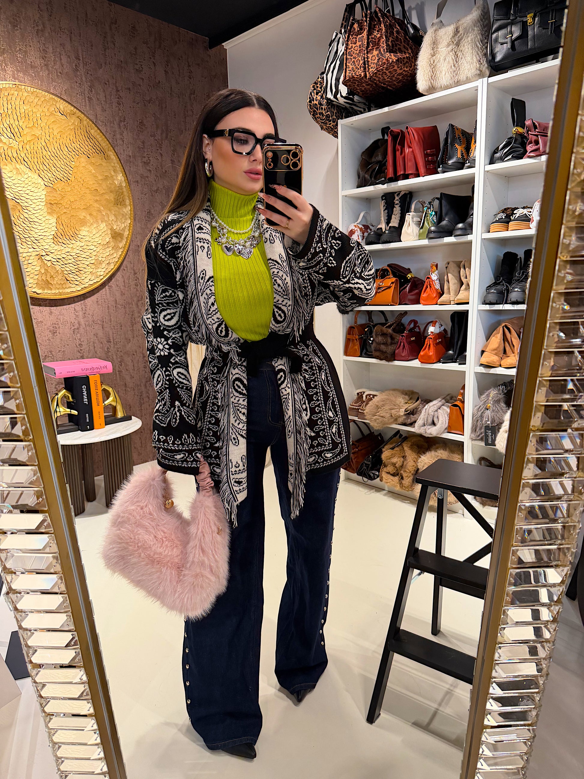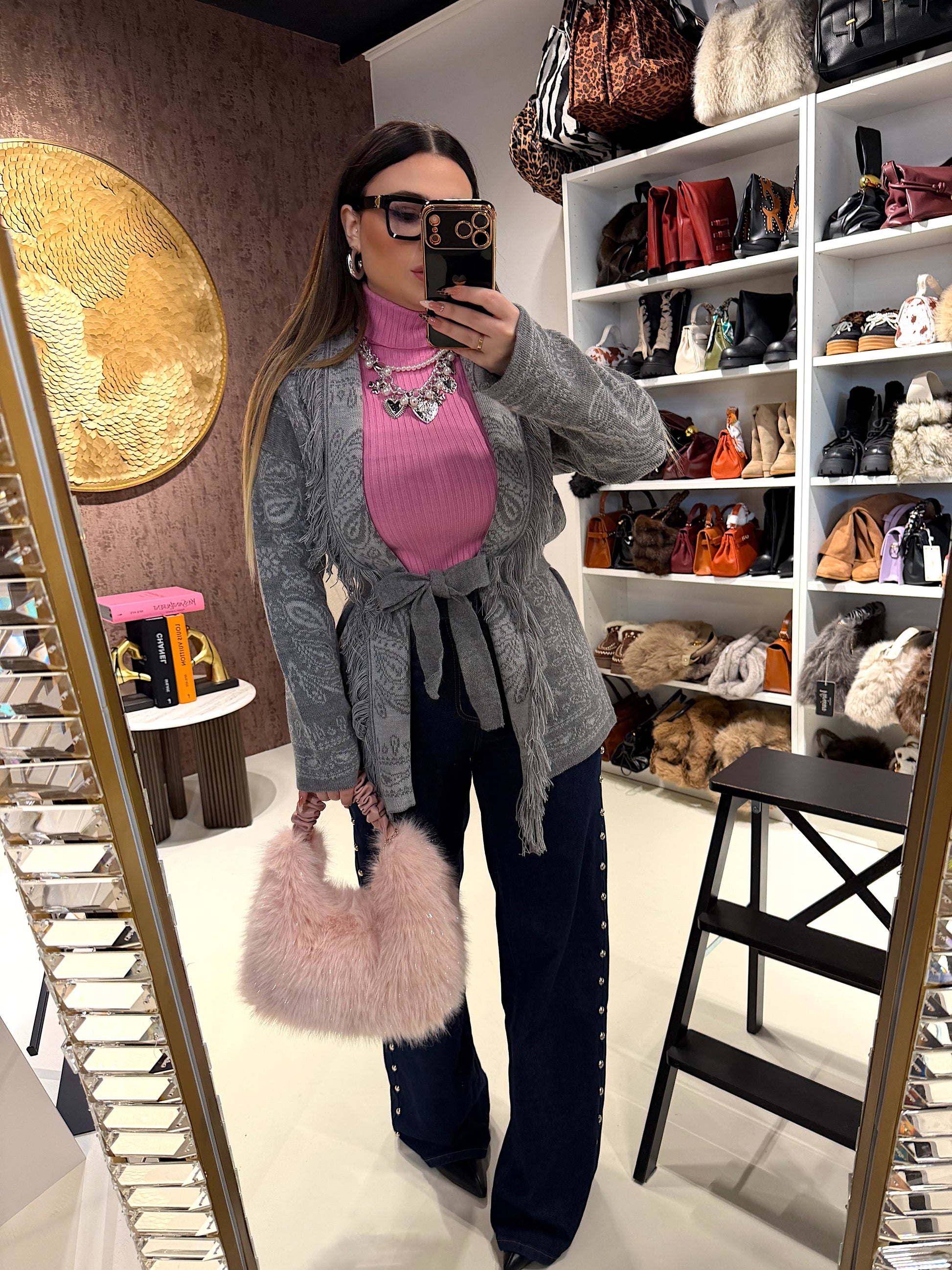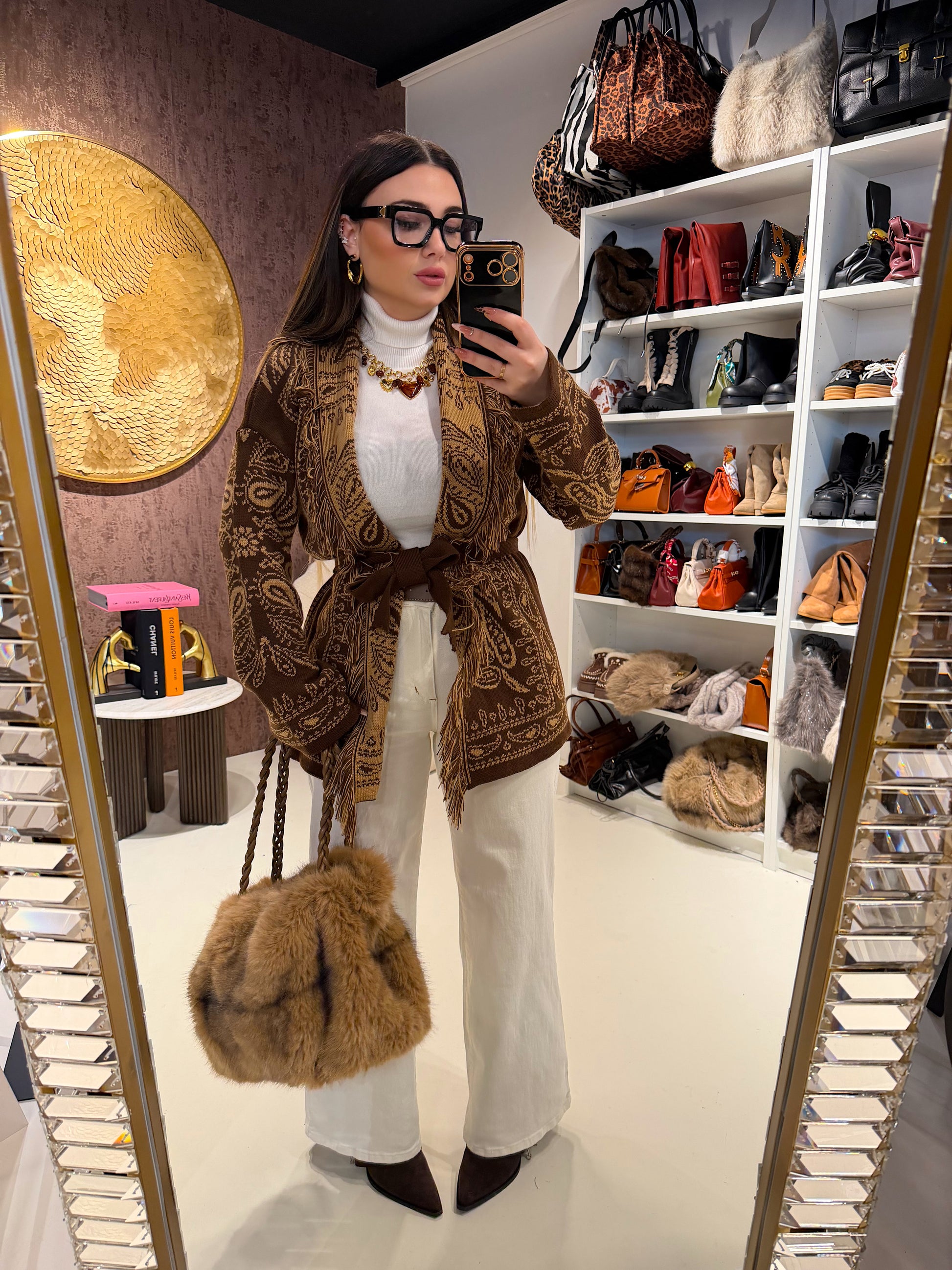 Perfetto sopra jeans o abiti, per un outfit caldo e super glam. 🤎✨