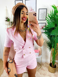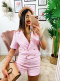 Completo color barbie con bottoni oro composta da Short più giacca con tasche leggermente elasticizzato.