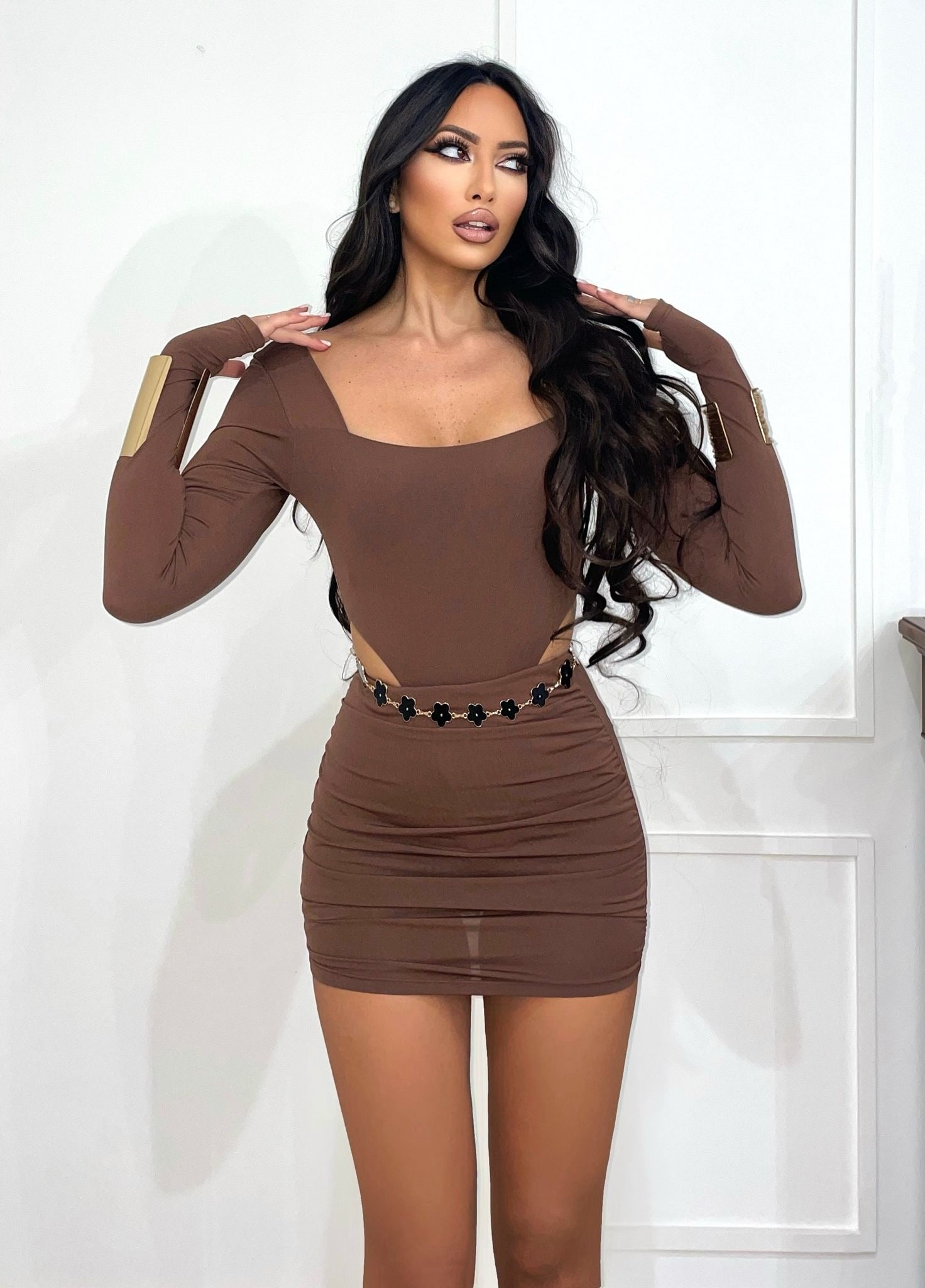 Completo due pezzi in tessuto elasticizzato massimo taglia 42. Body con scollo senza coppe e gonna con elastico