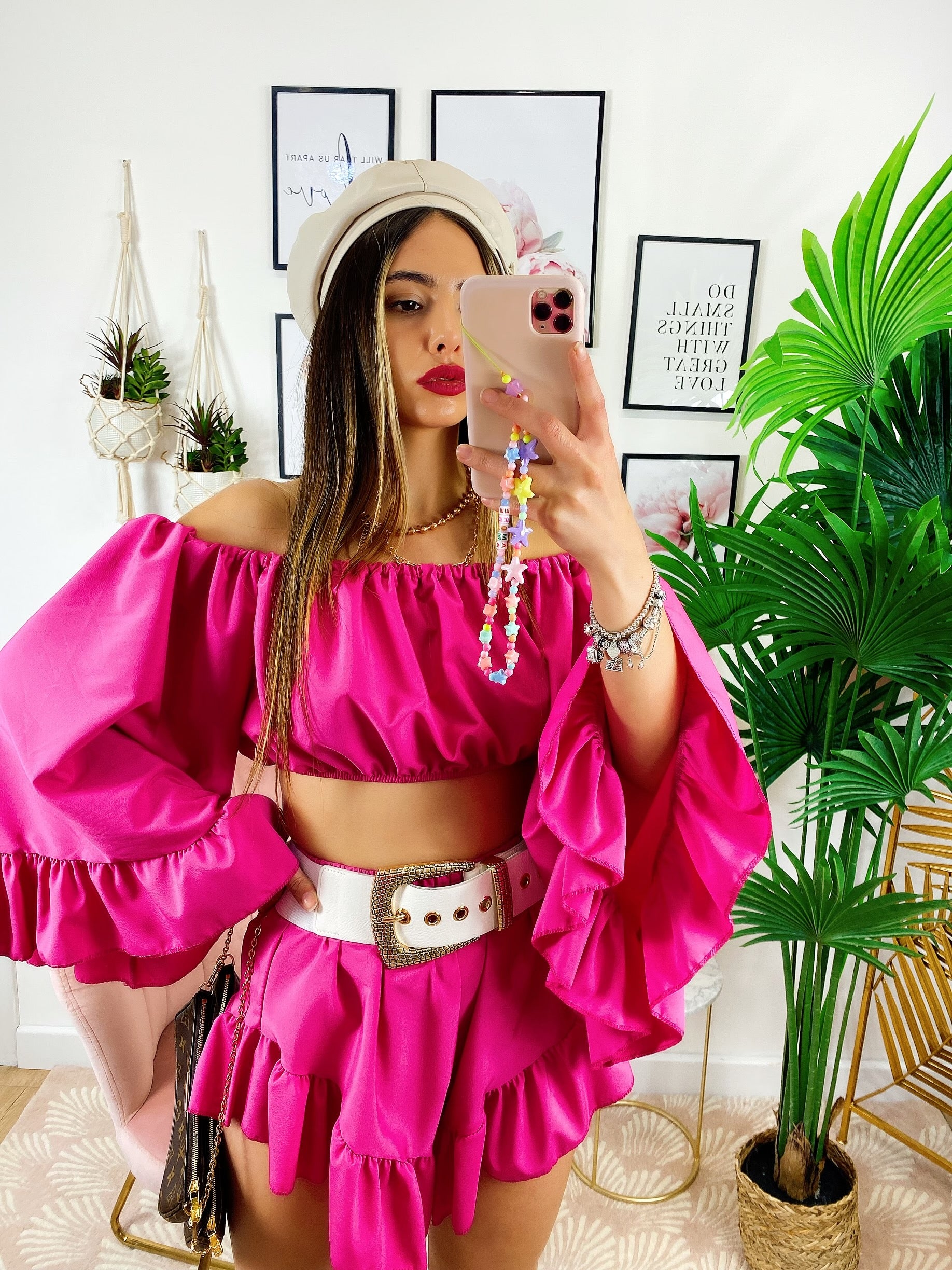 Completo composto da top e Short. Particolarissimi tagli per un look wow.