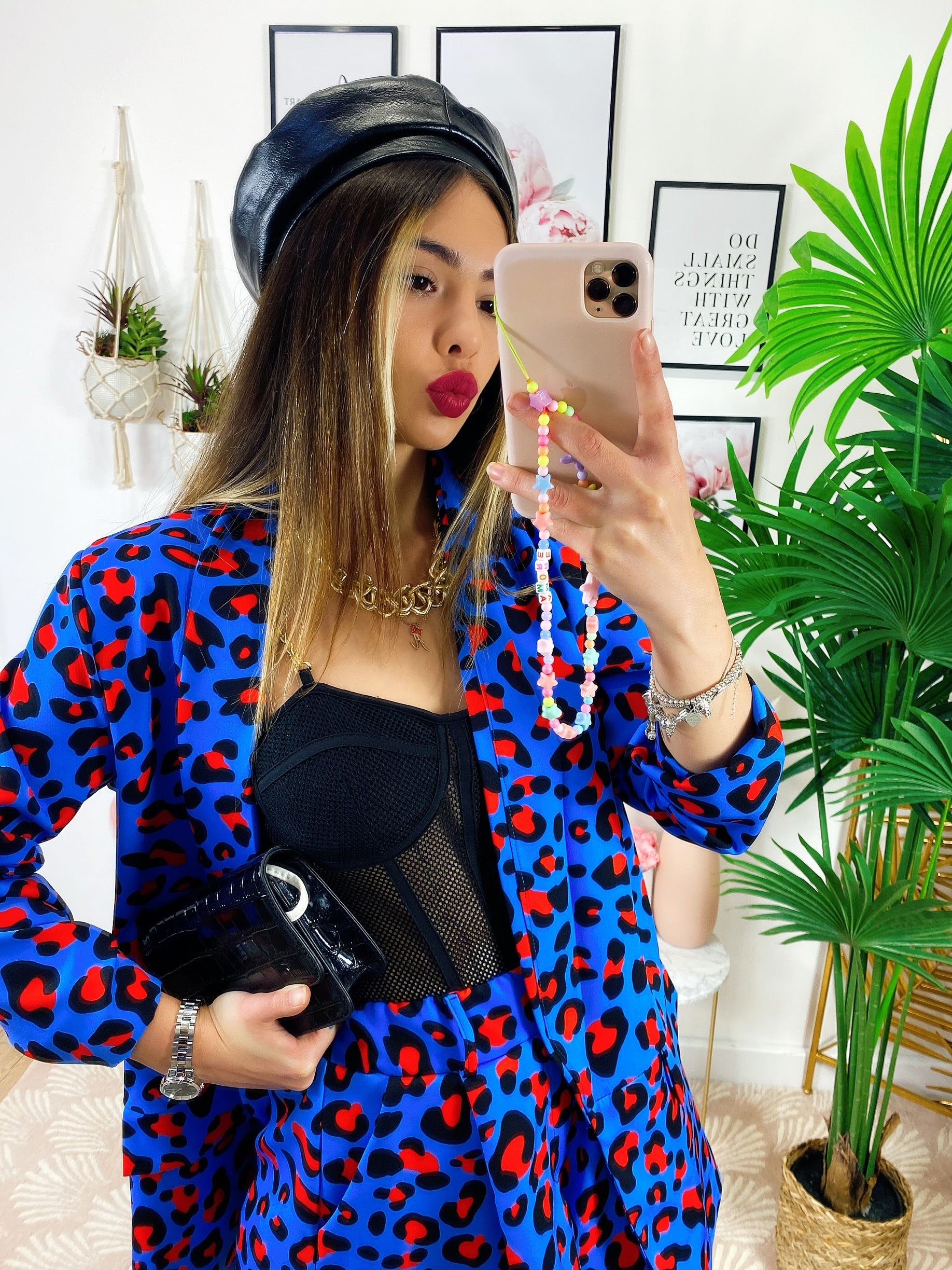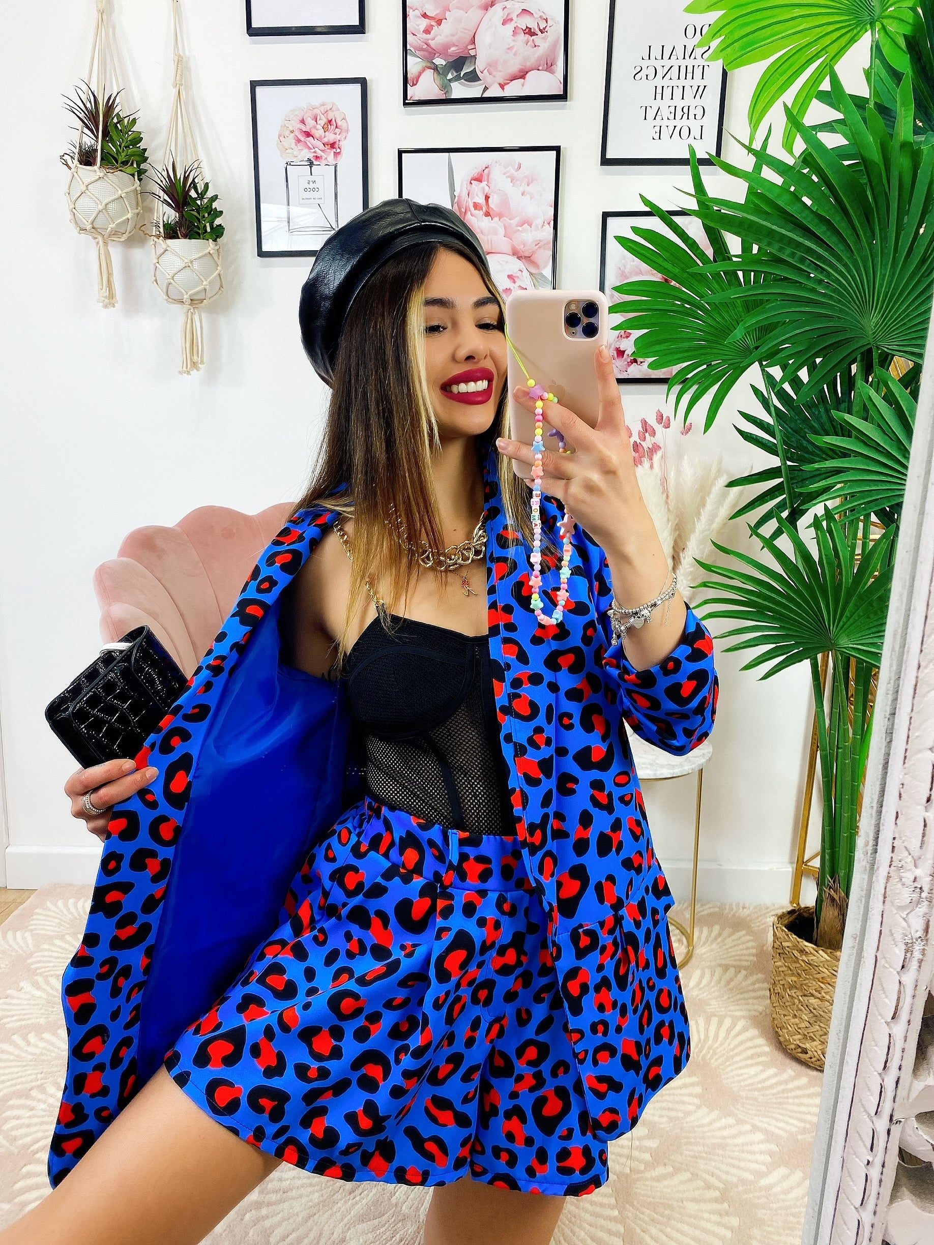 Completo due pezzi maculato base chiara, Short elasticizzato.