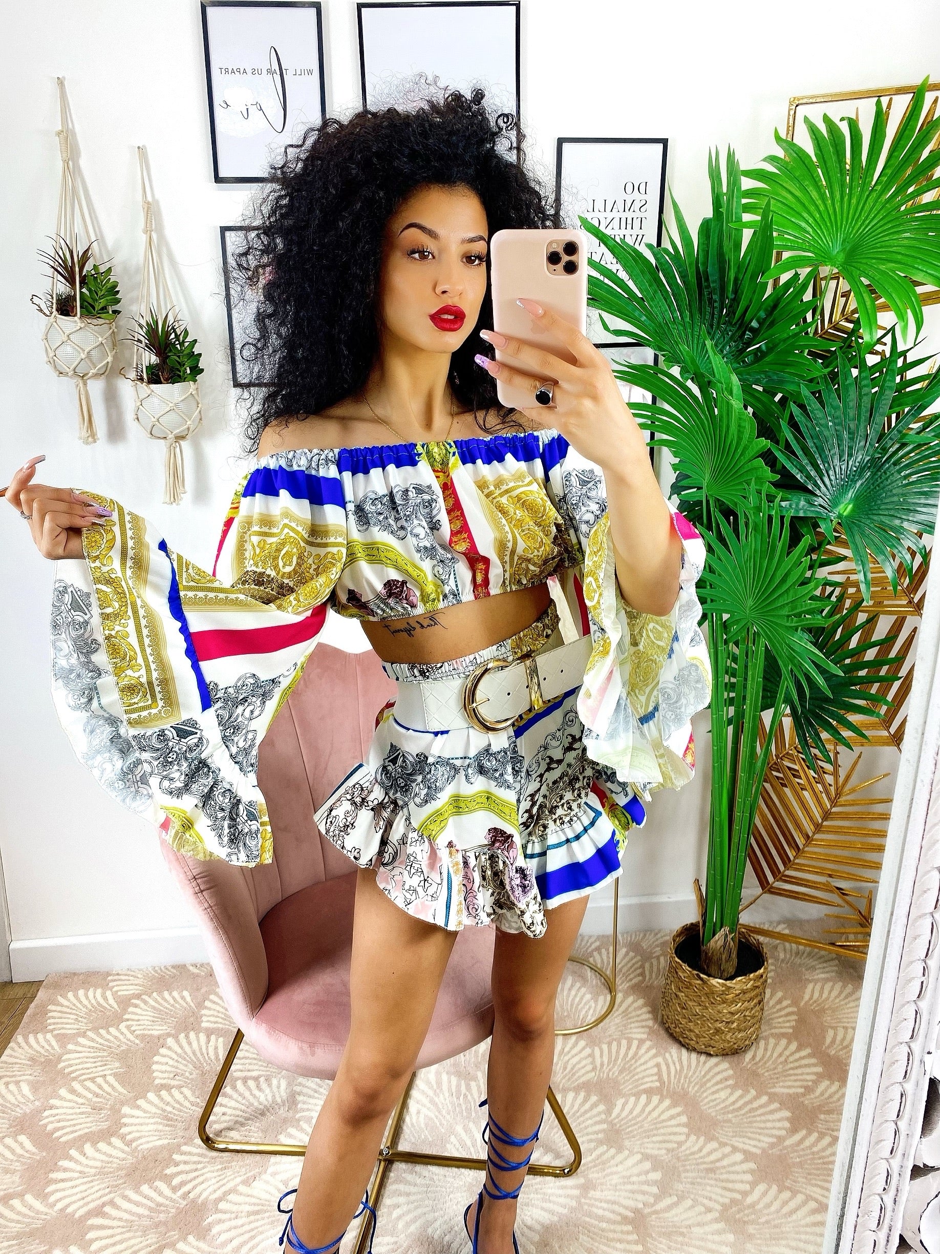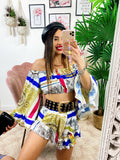 Completo composto da top e Short. Particolarissimi tagli per un look wow.