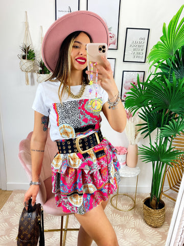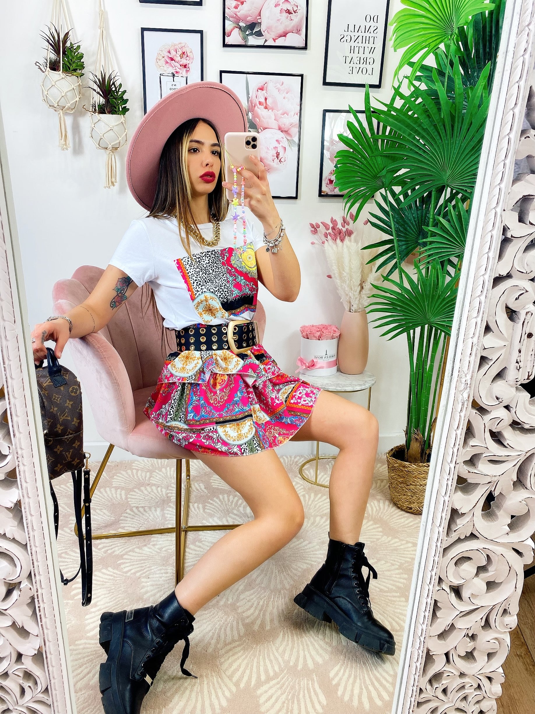 Completo etnico gonna e t-shirt. Gonna con elastico e t-shirt ottimo tessuto con stampa.