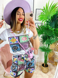 Completo etnico Short e t-shirt base Celeste e lill. Short con elastico e t-shirt ottimo tessuto con stampa.