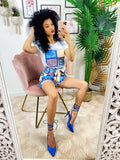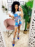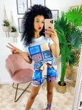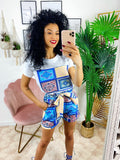 Completo etnico Short e t-shirt base Blu. Short con elastico e t-shirt ottimo tessuto con stampa.