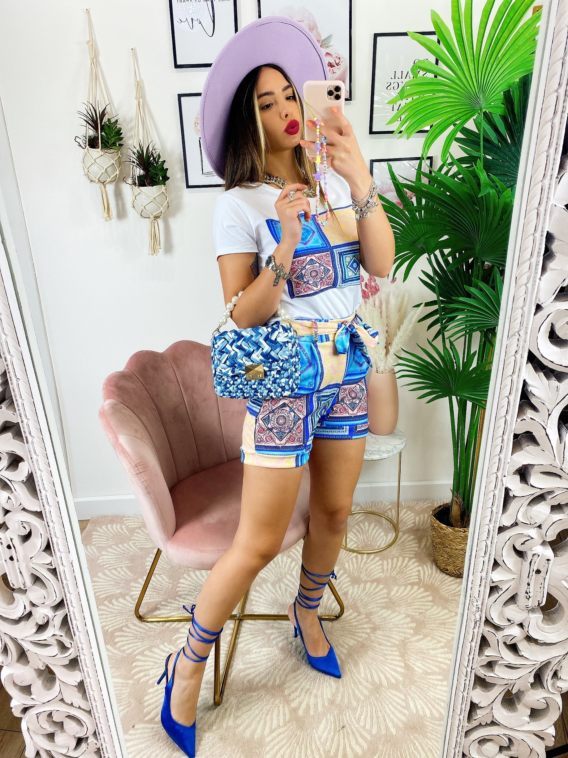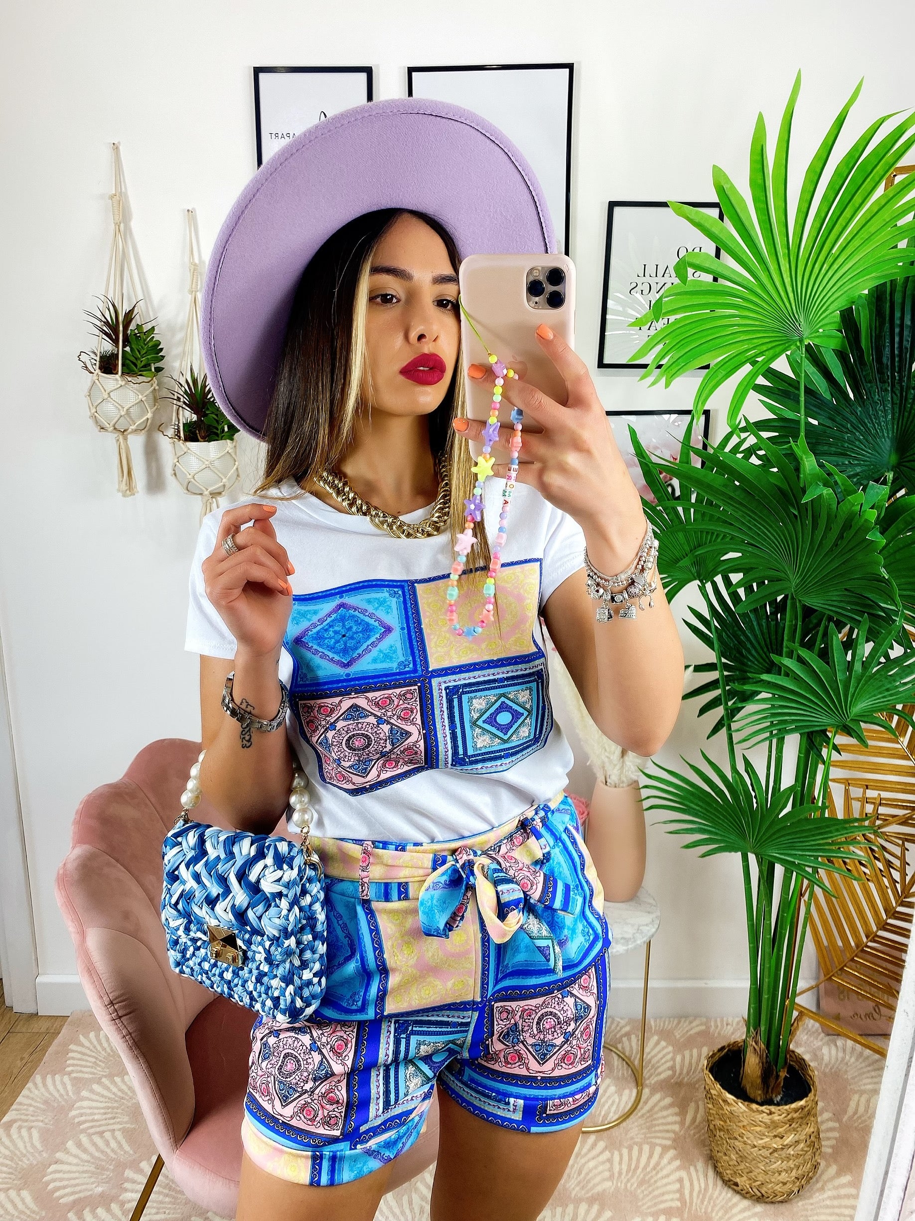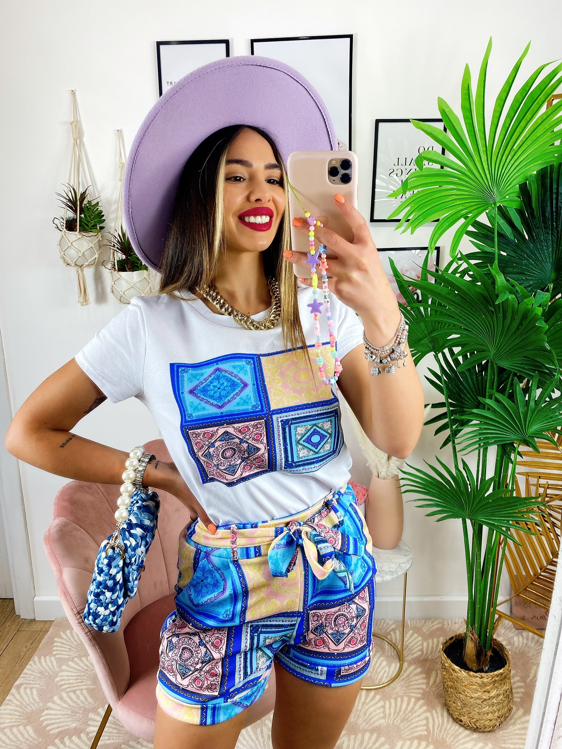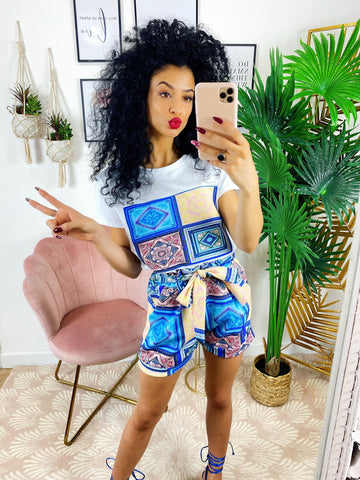 Completo etnico Short e t-shirt base Blu