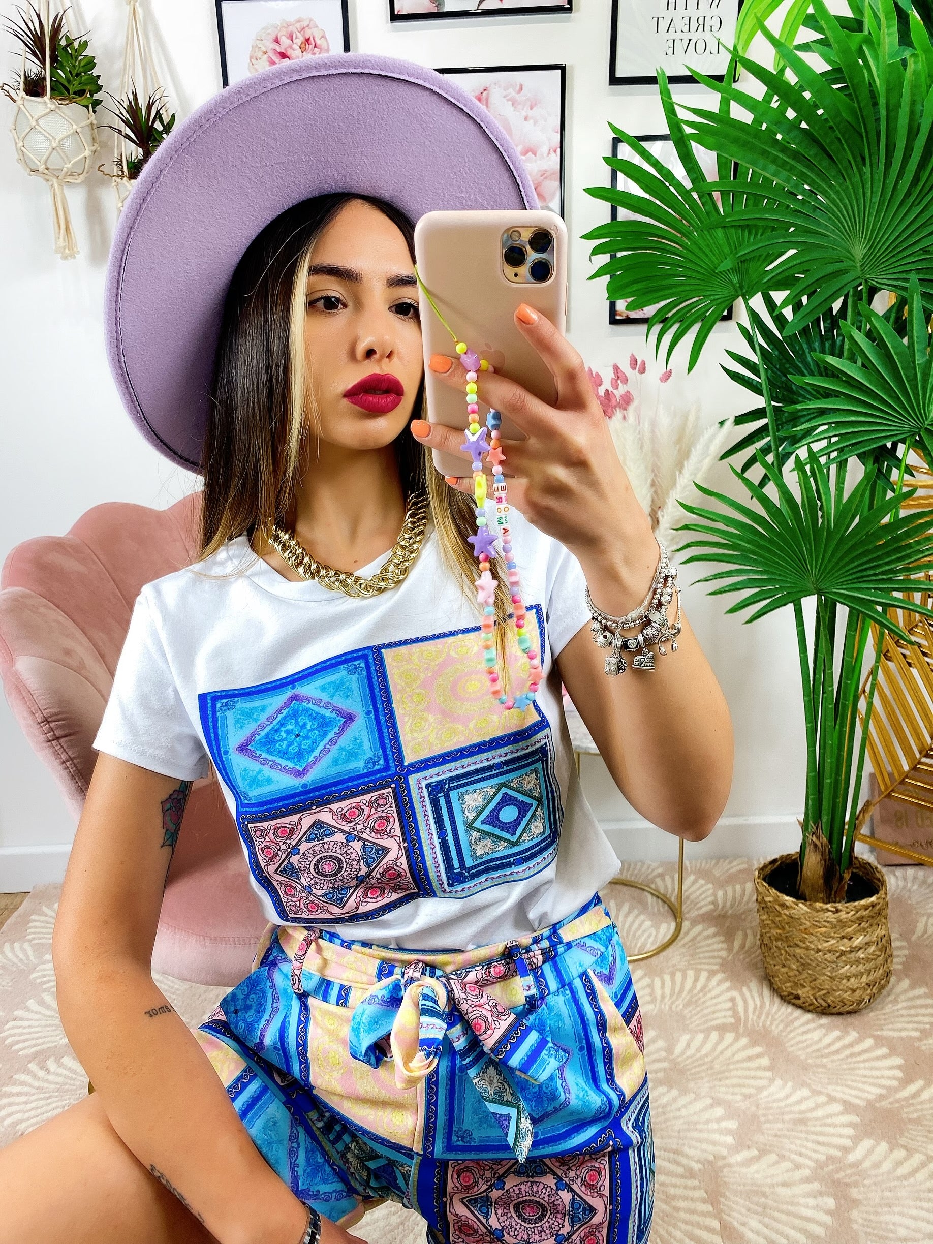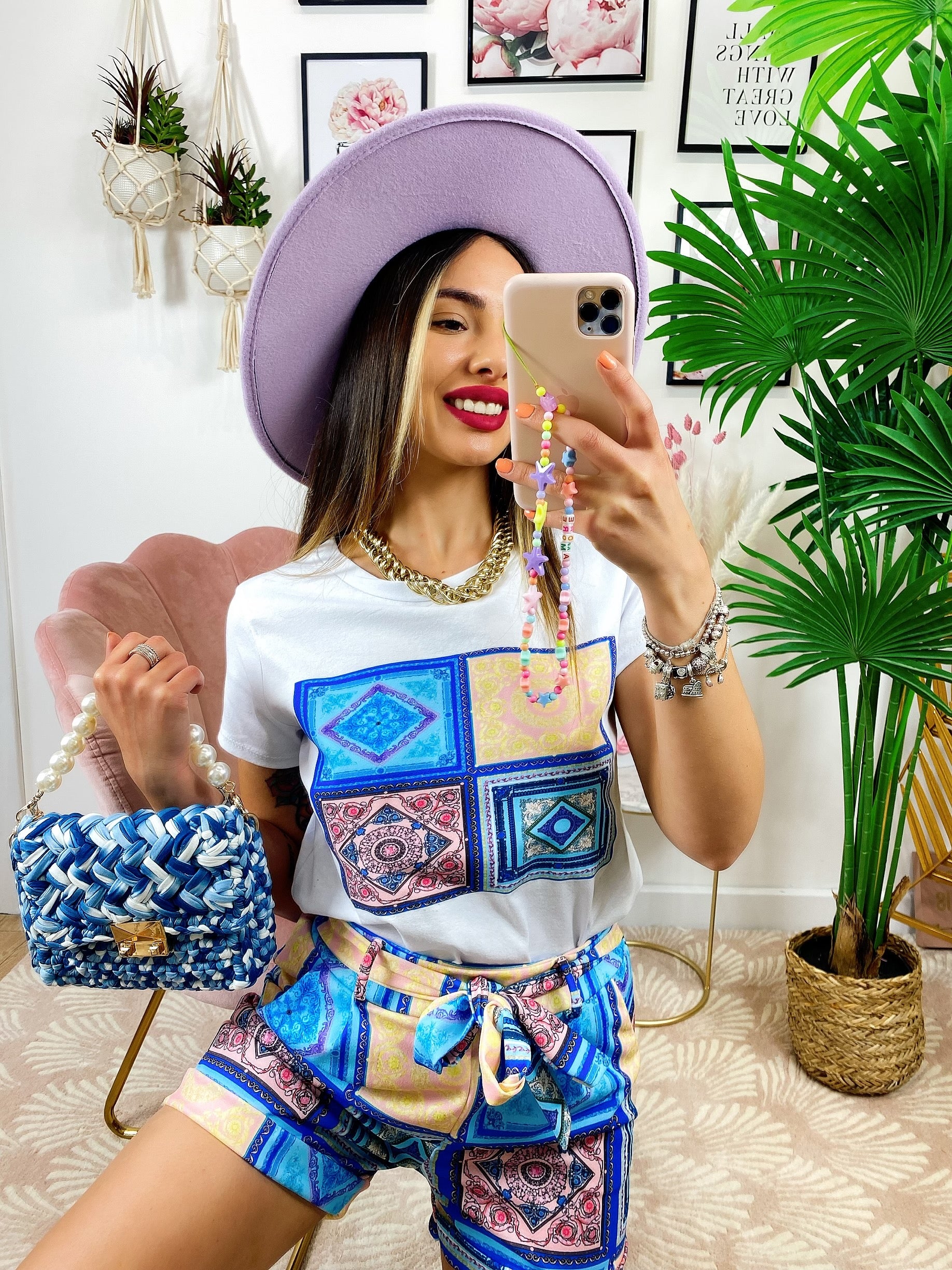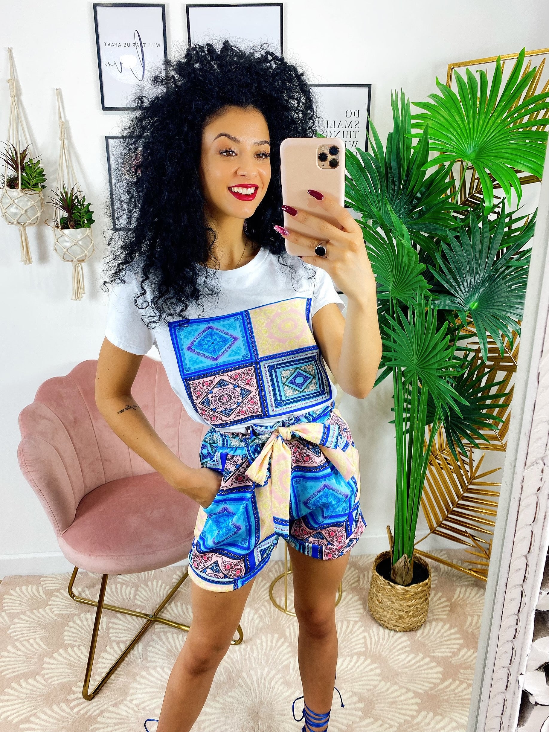 Completo etnico Short e t-shirt base Blu
