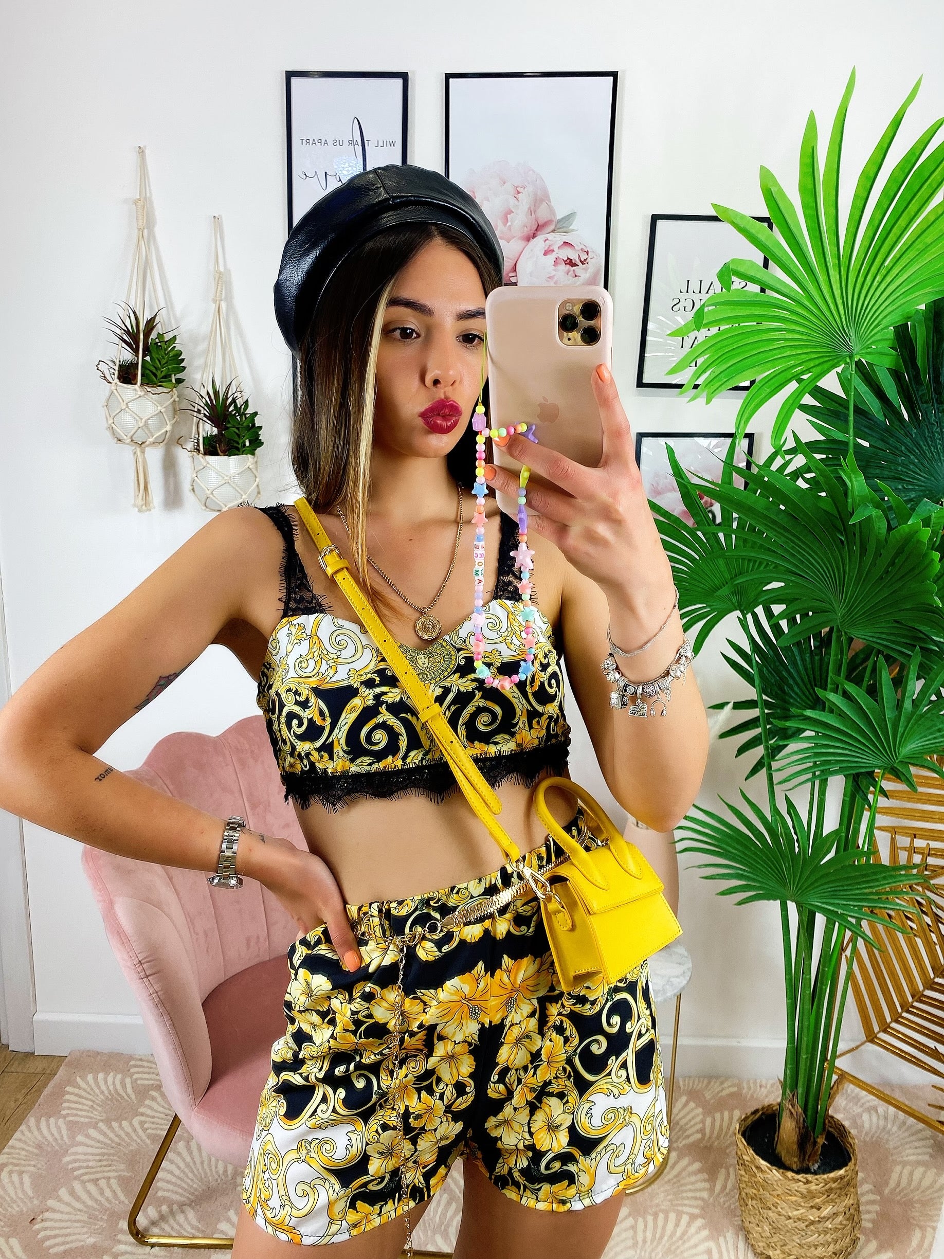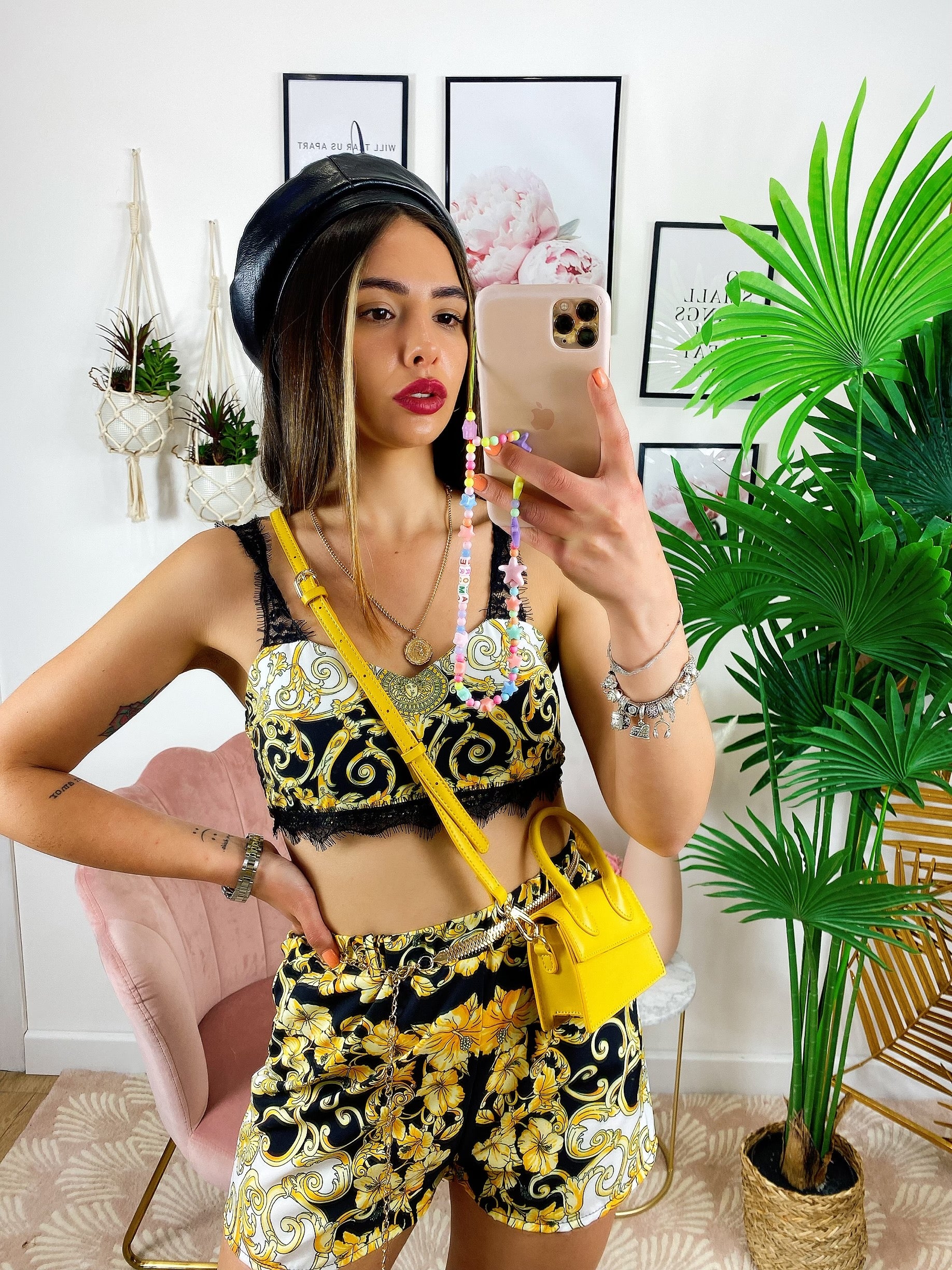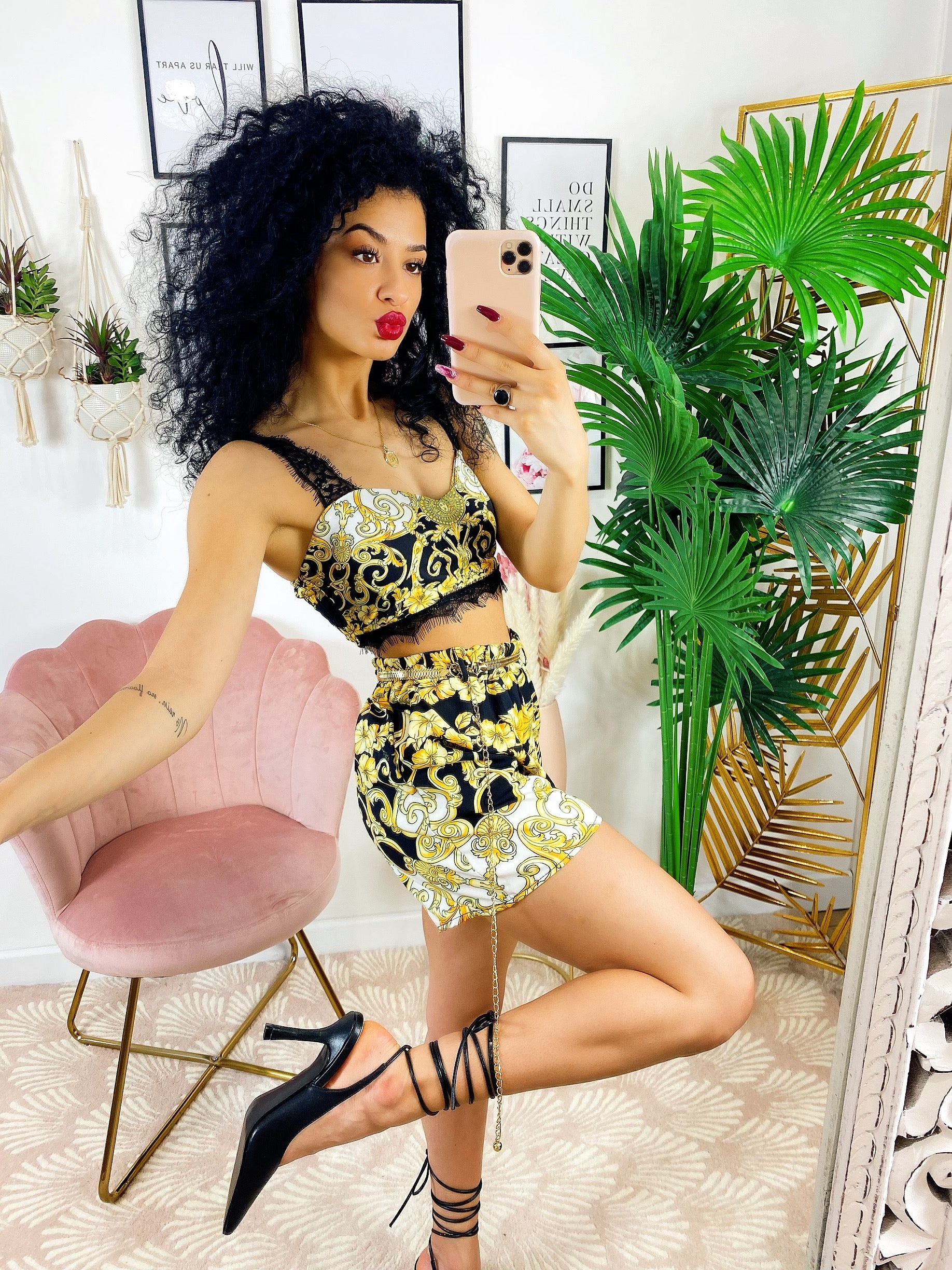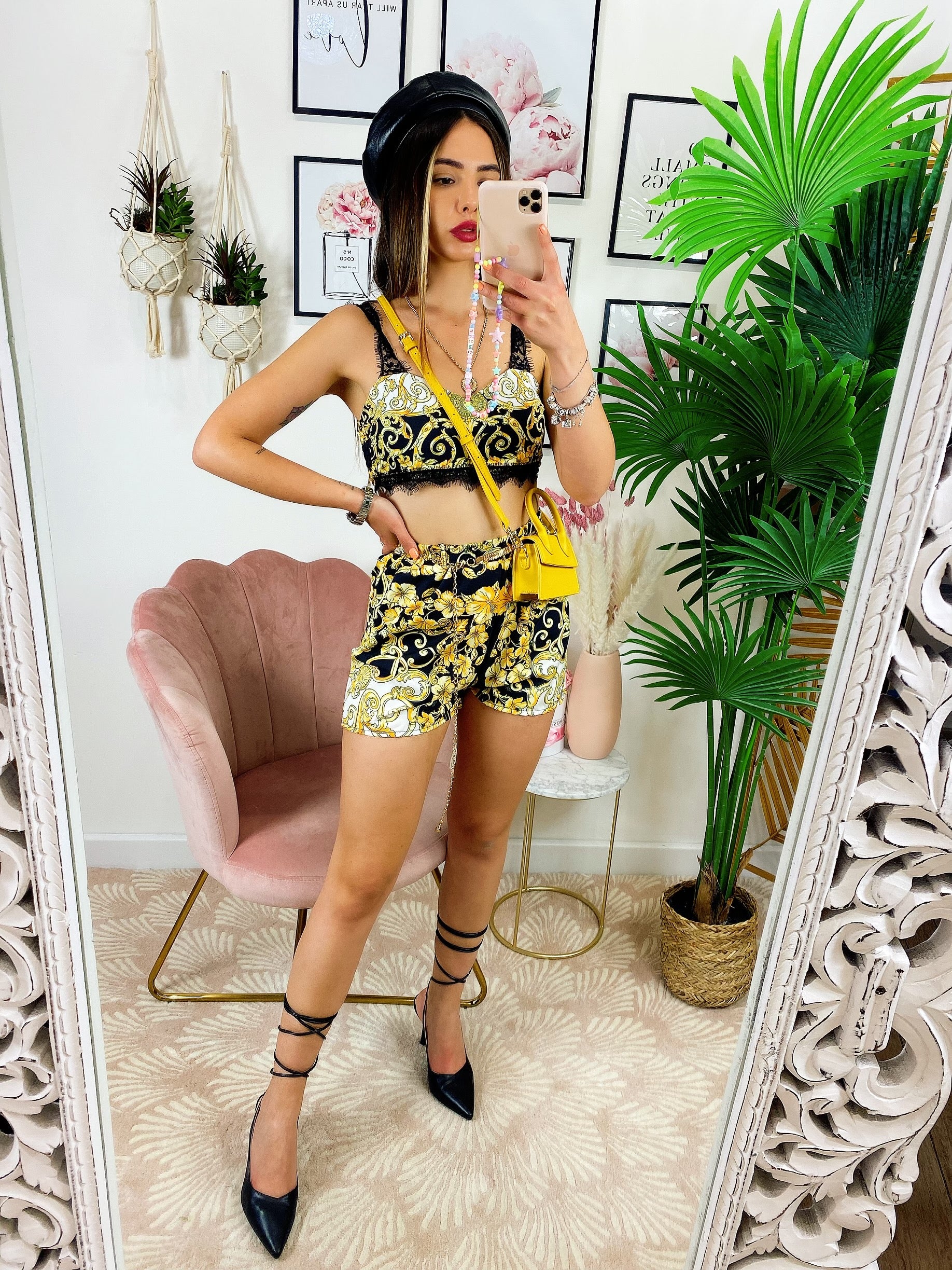 Completo Etnico Top in pizzo e Short elasticizzato con catenina Compresa.