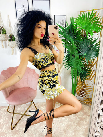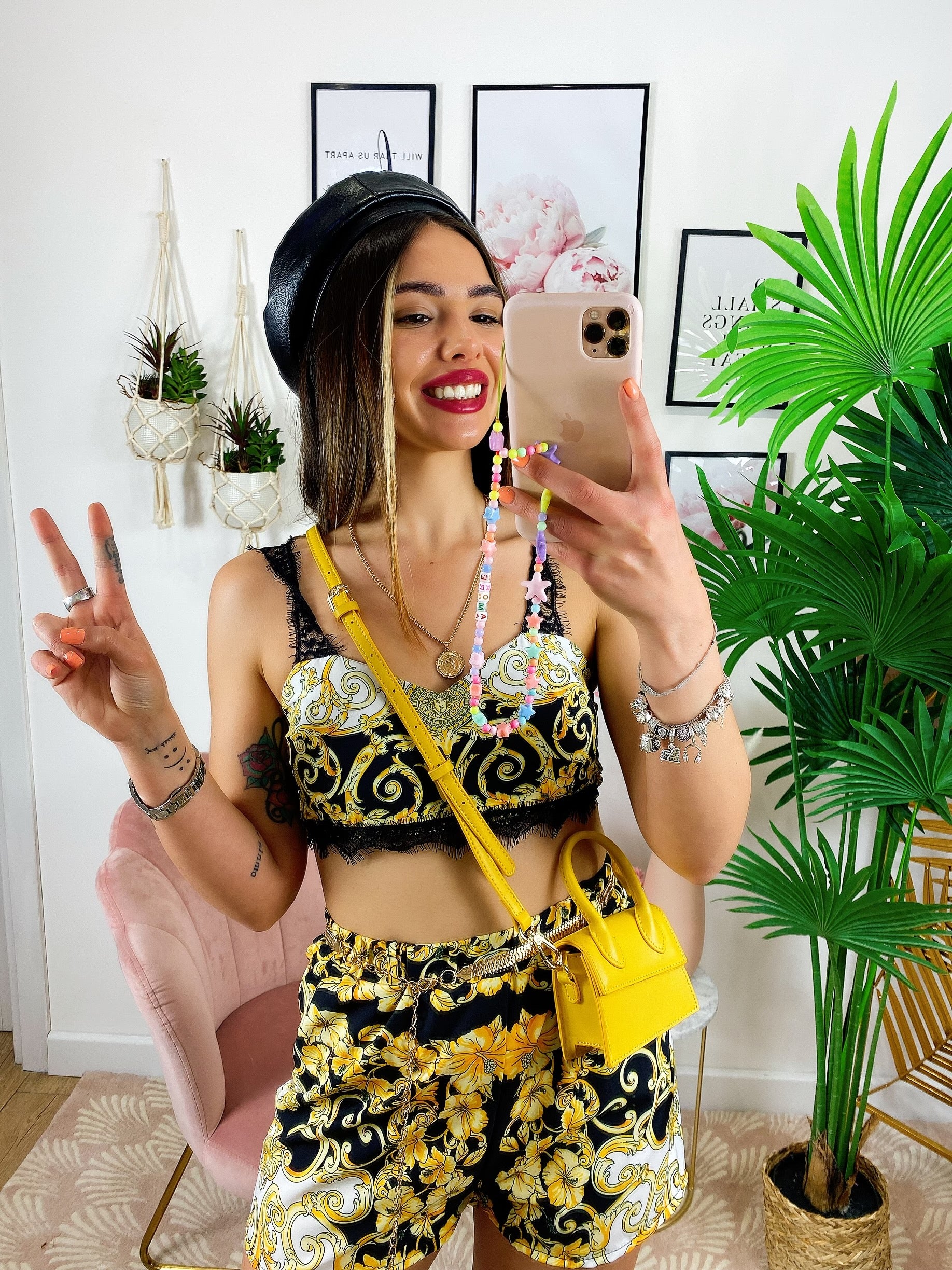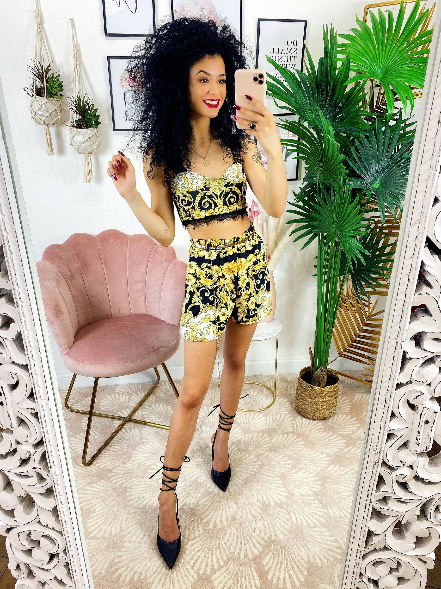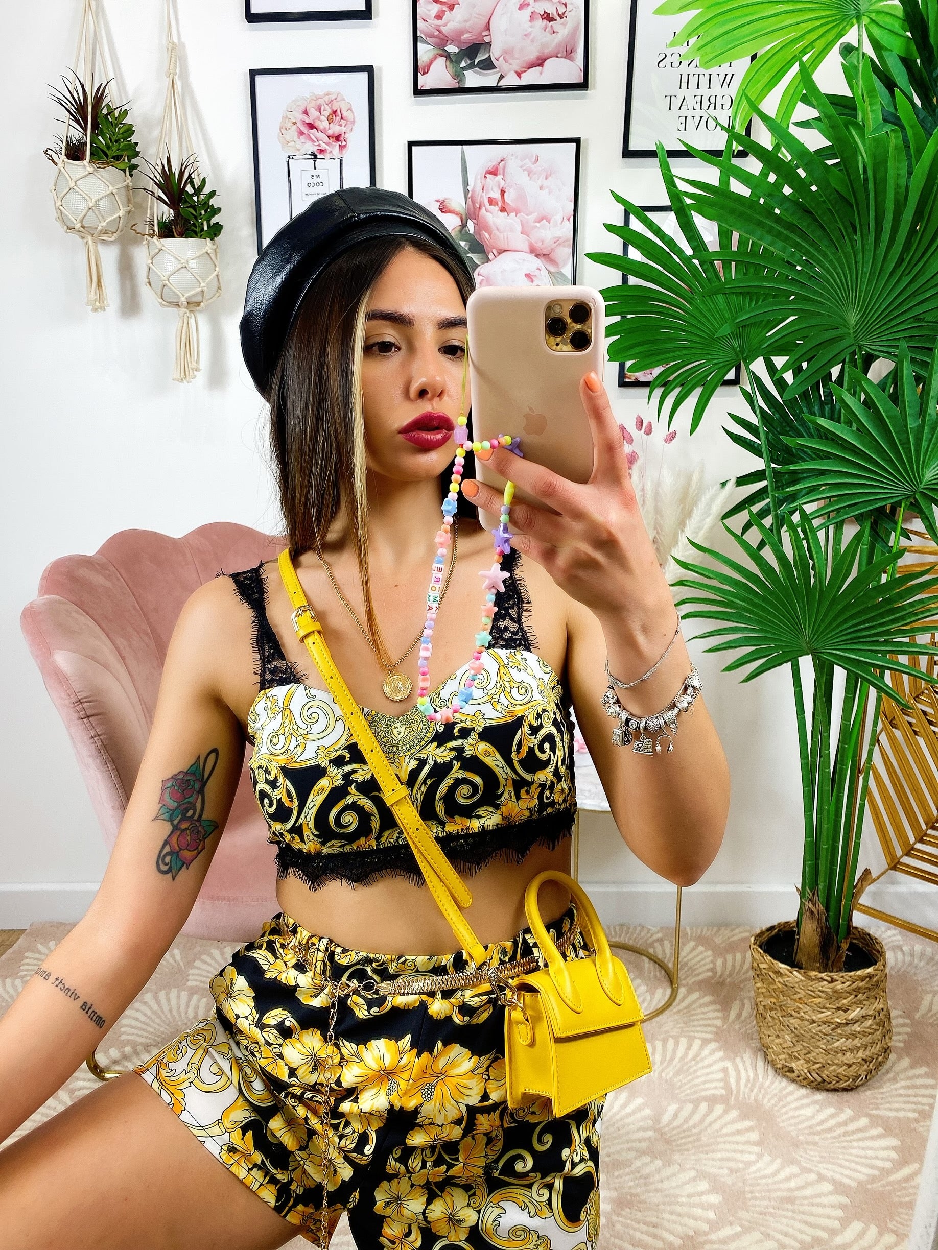 Completo Etnico Top in pizzo e Short elasticizzato con catenina Compresa.