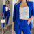 Completo composto da giacca foderata con manica arricciata e pantalone con cintura in vita.