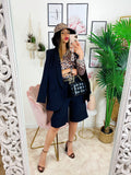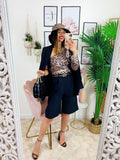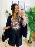 Completo giacca e pantalone nero con tasche, è elasticizzato vita.