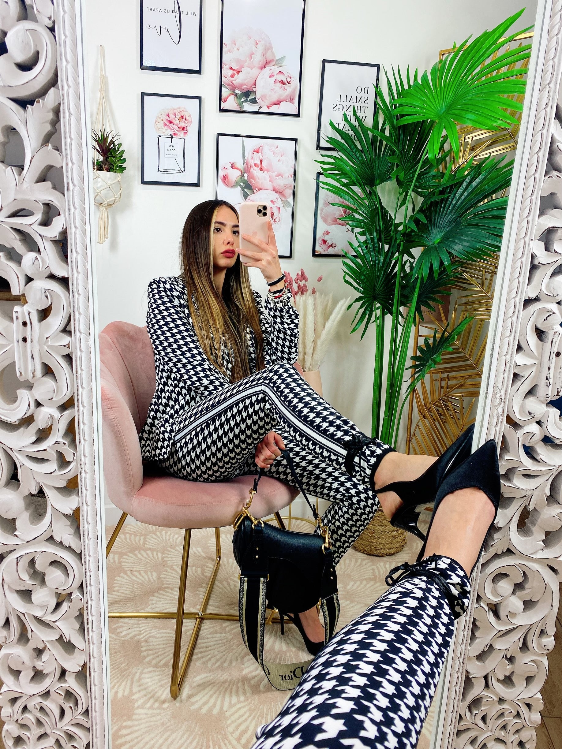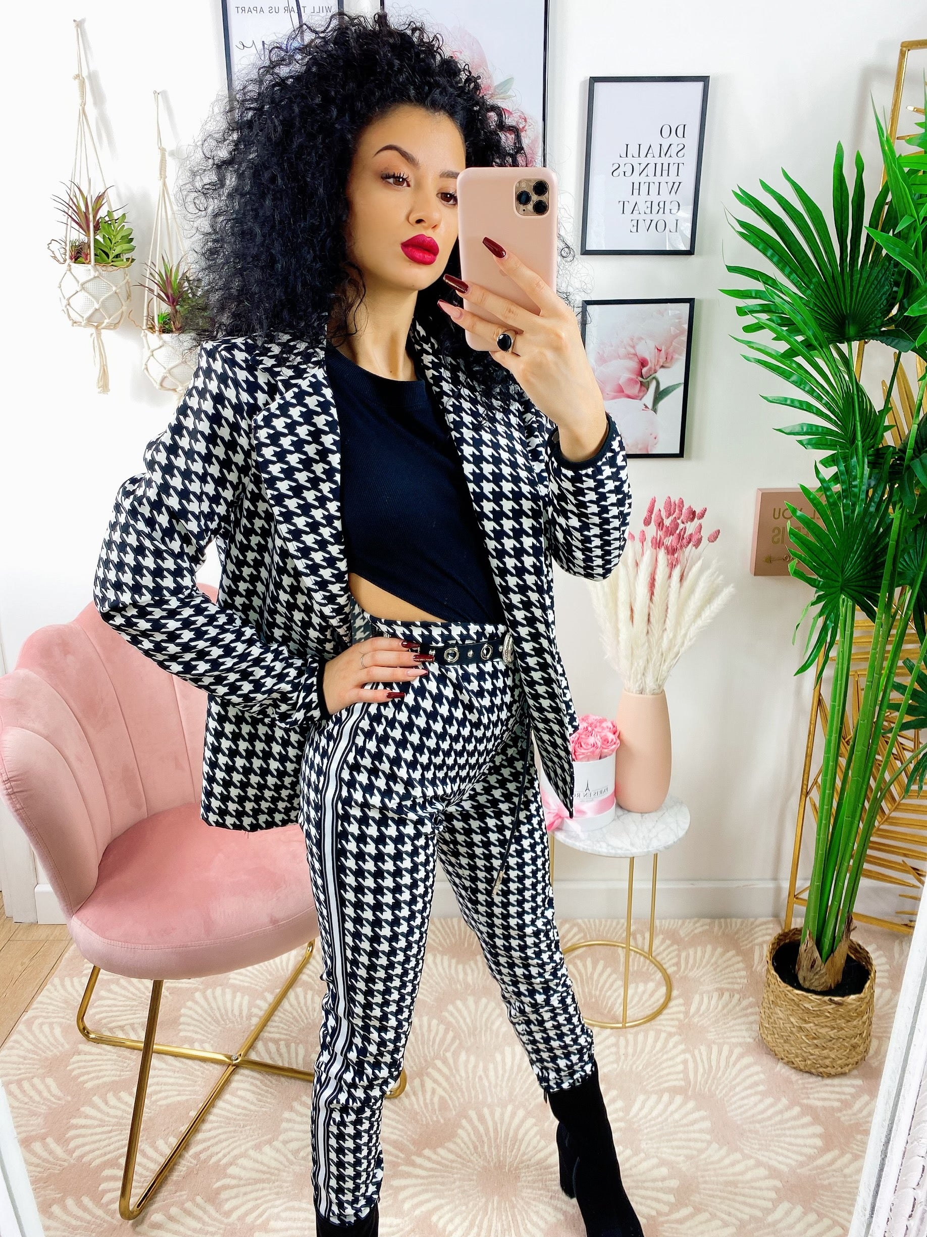 Completo Giacca e Pantalone a Zampa alta qualità Trama pied de poule.