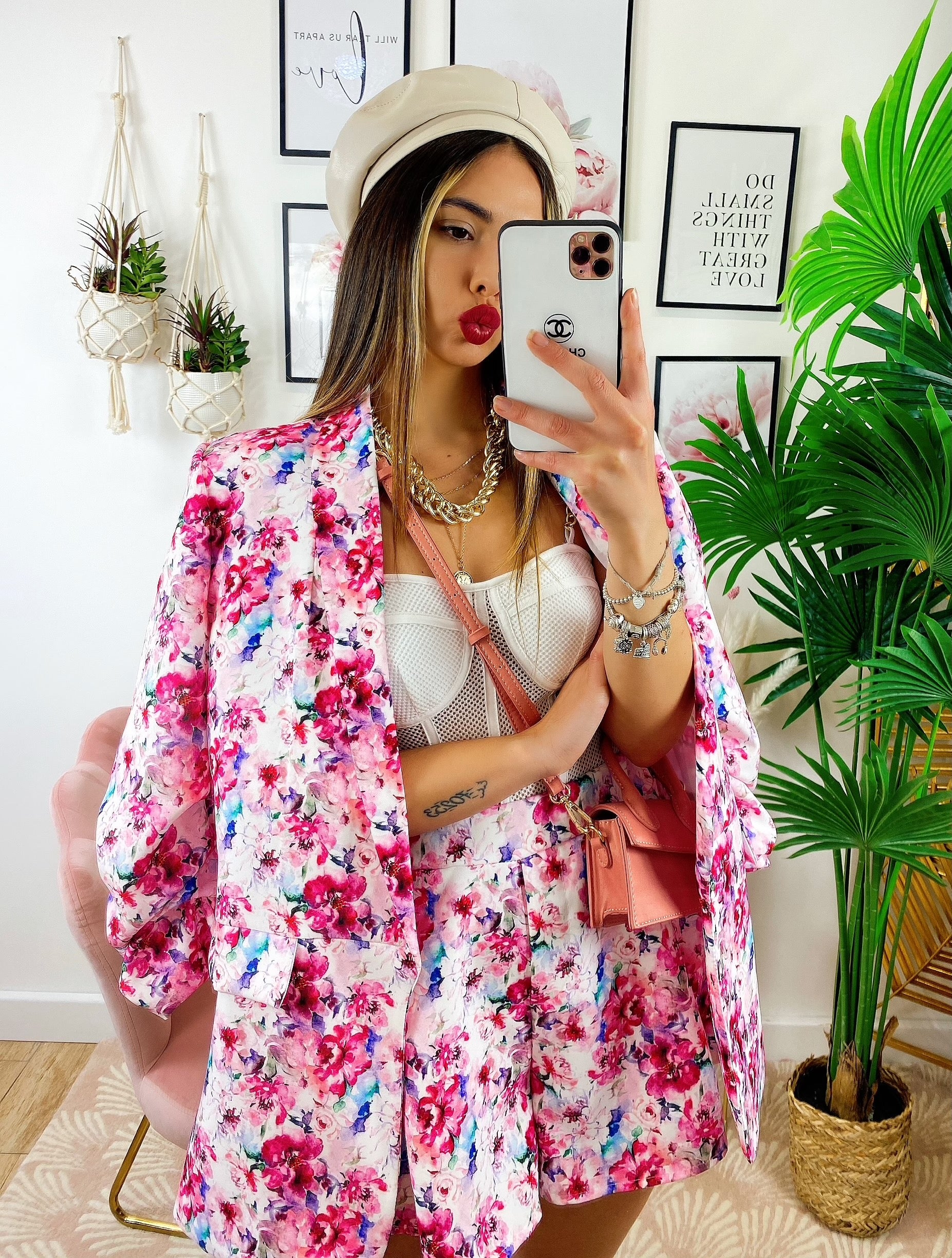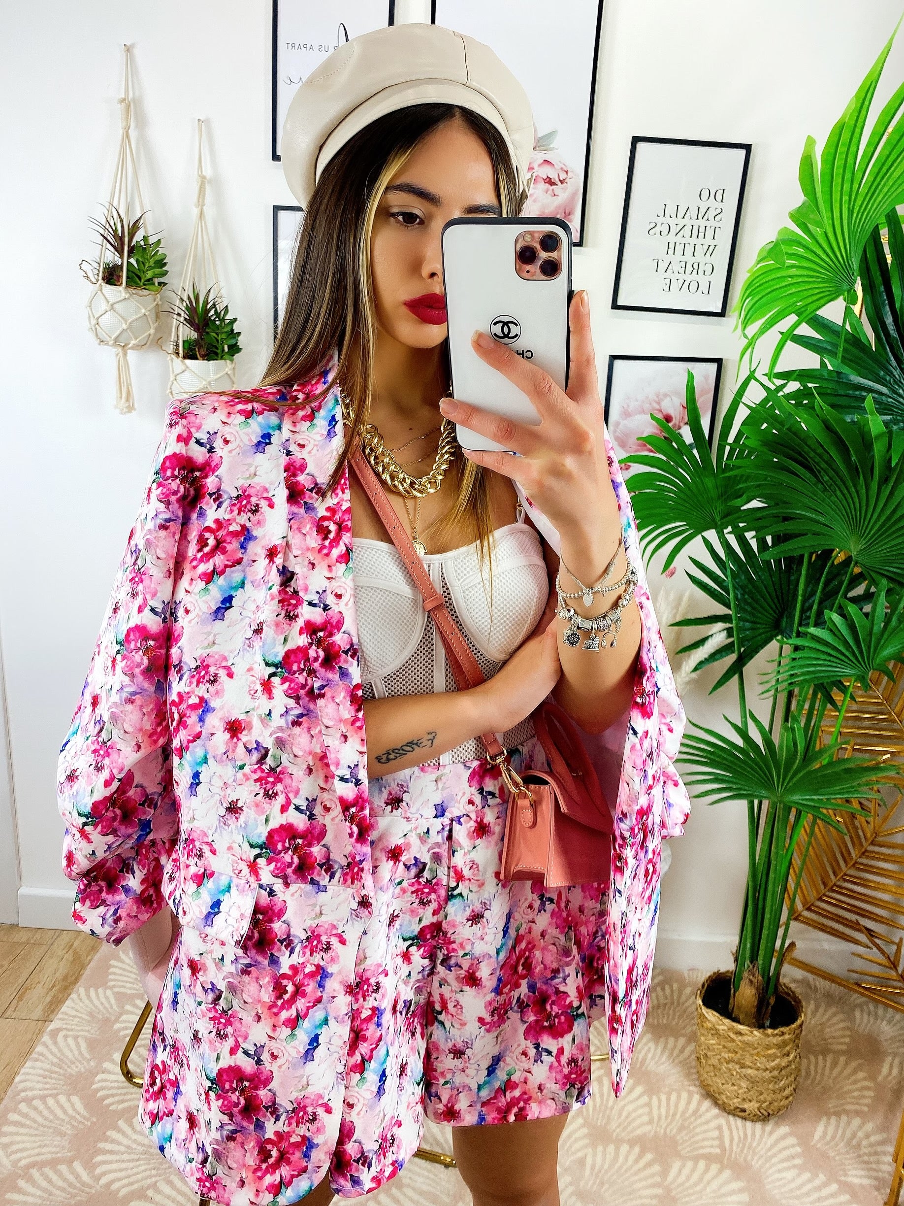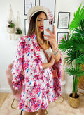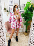 Completo Giacca e Short fiori fucsia