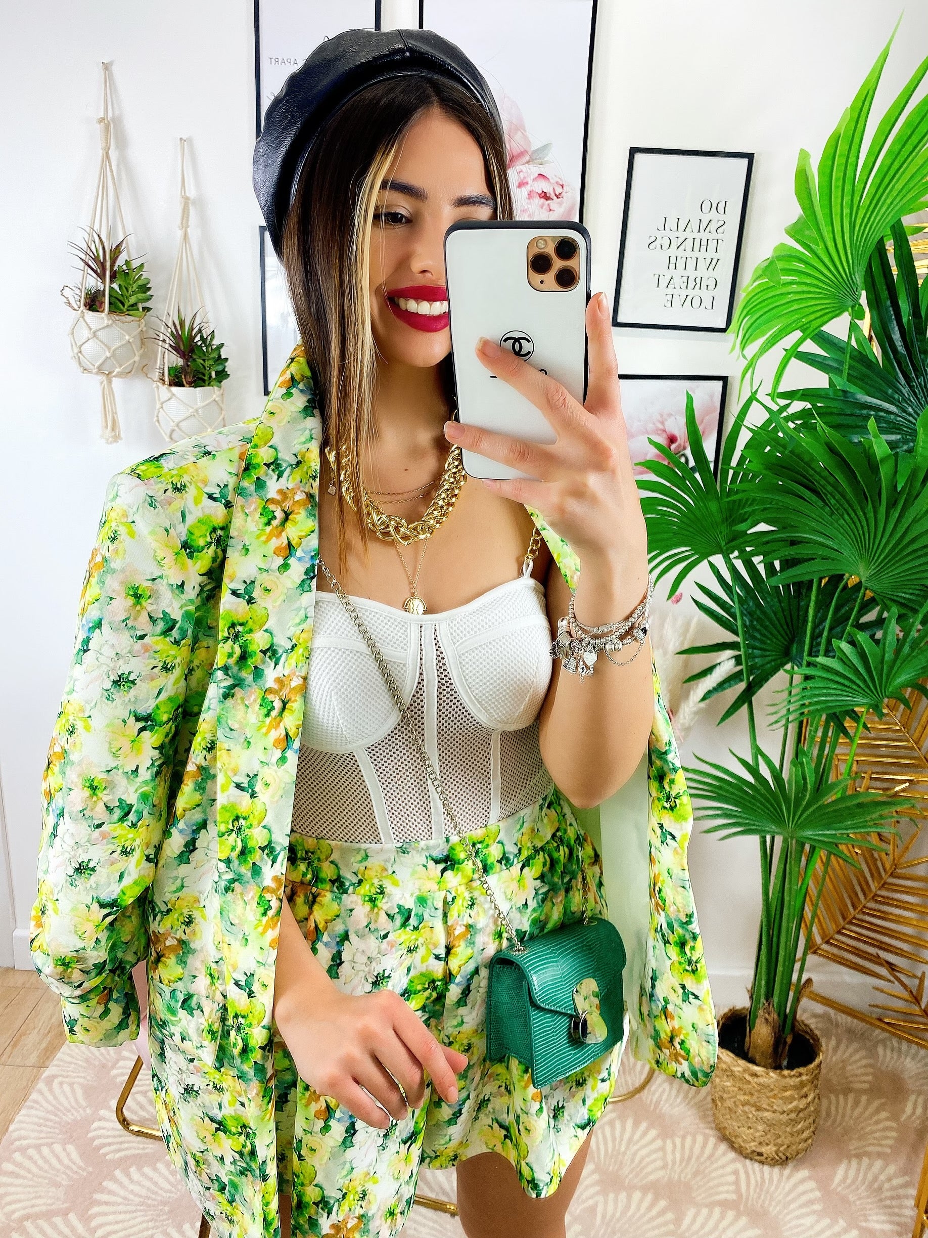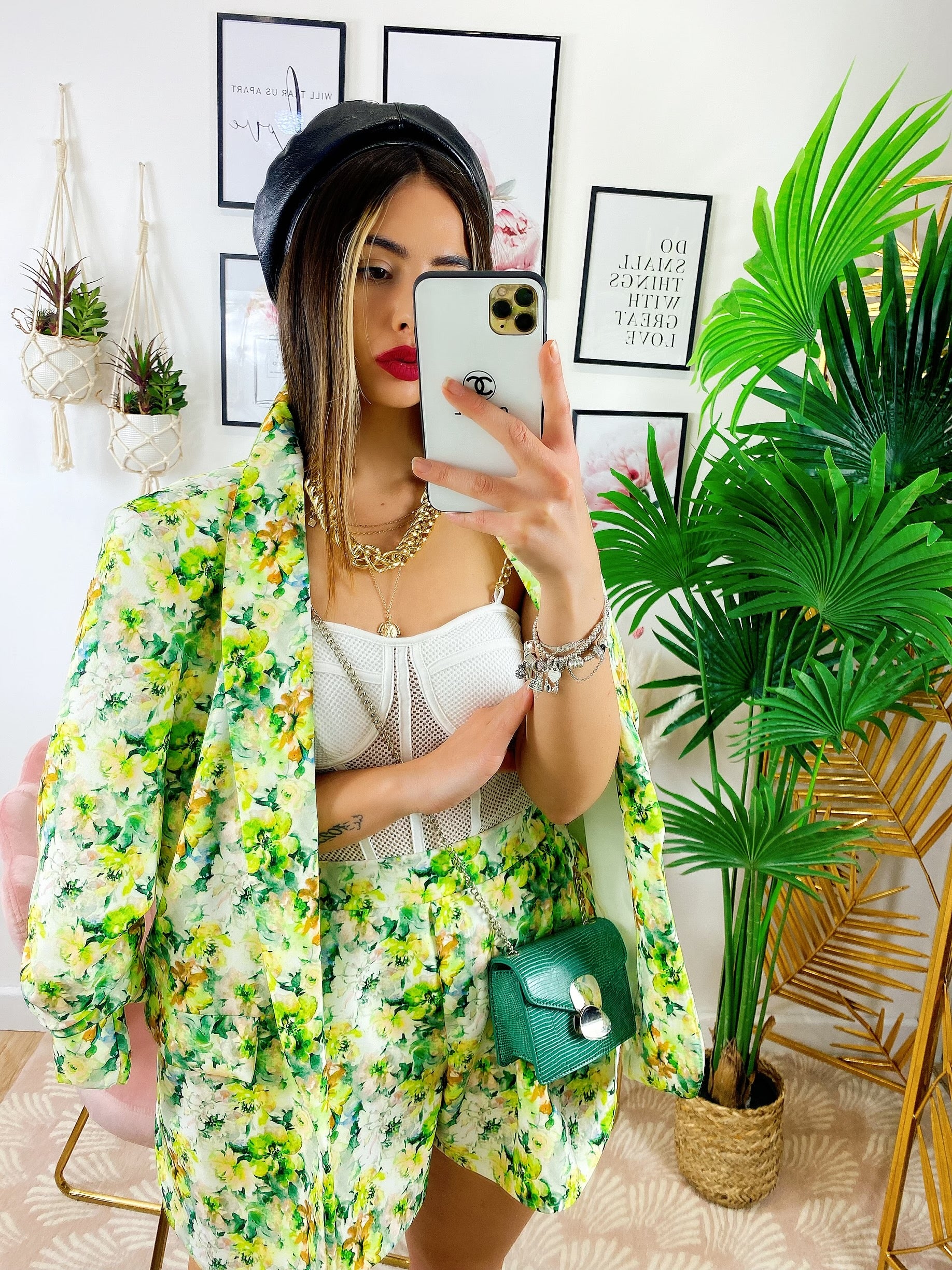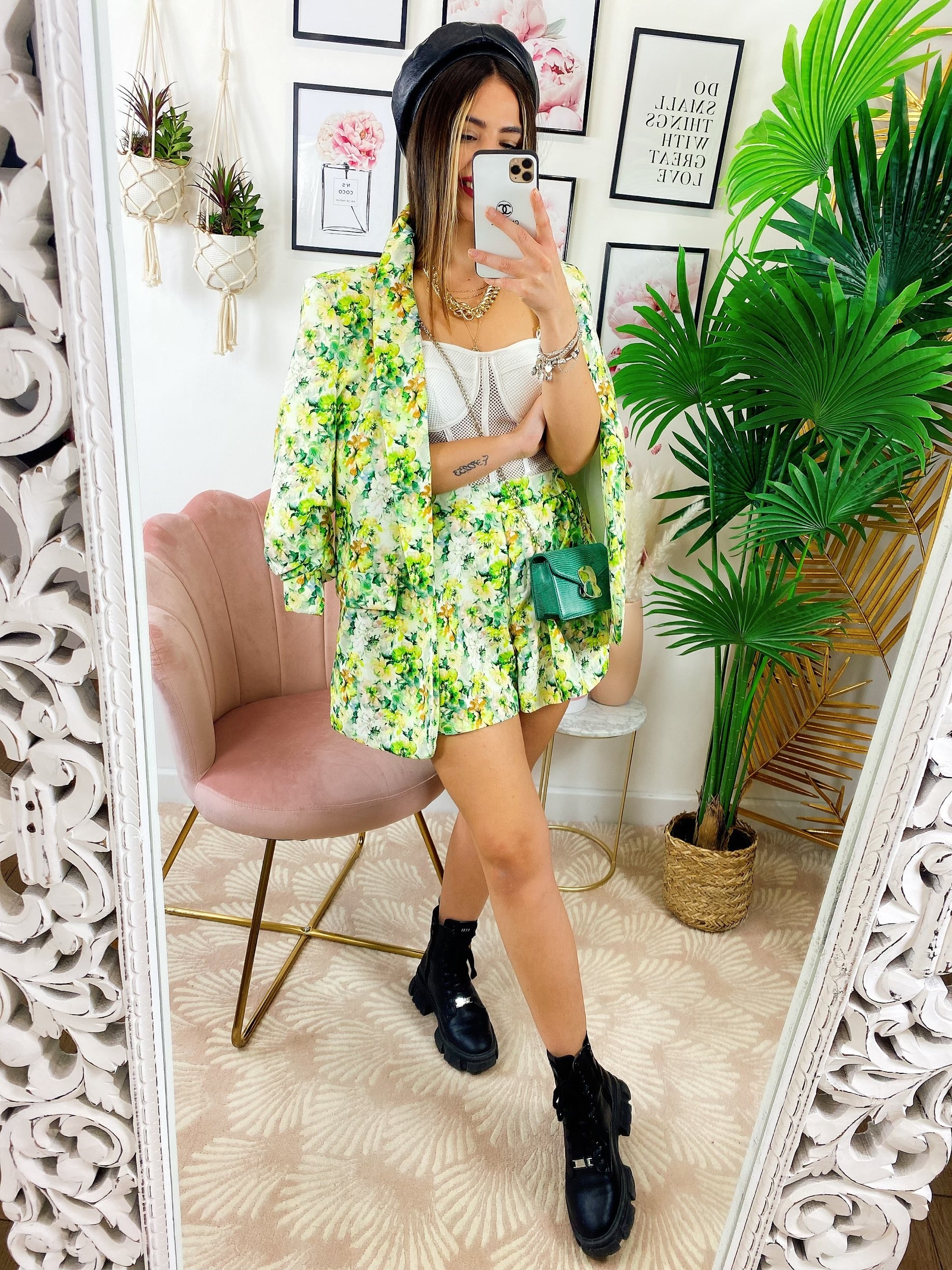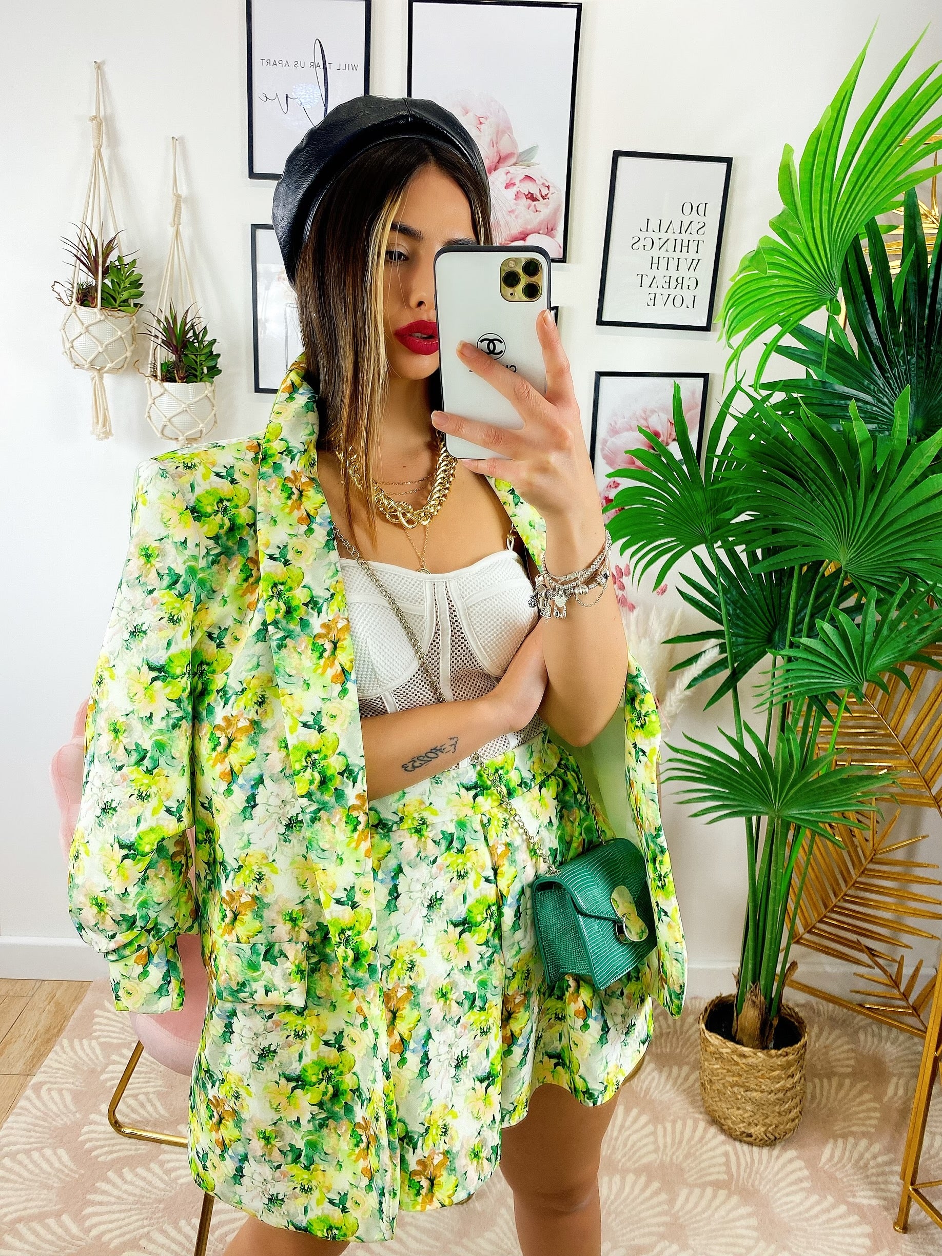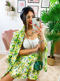 Completo Giacca e Short fiori lime