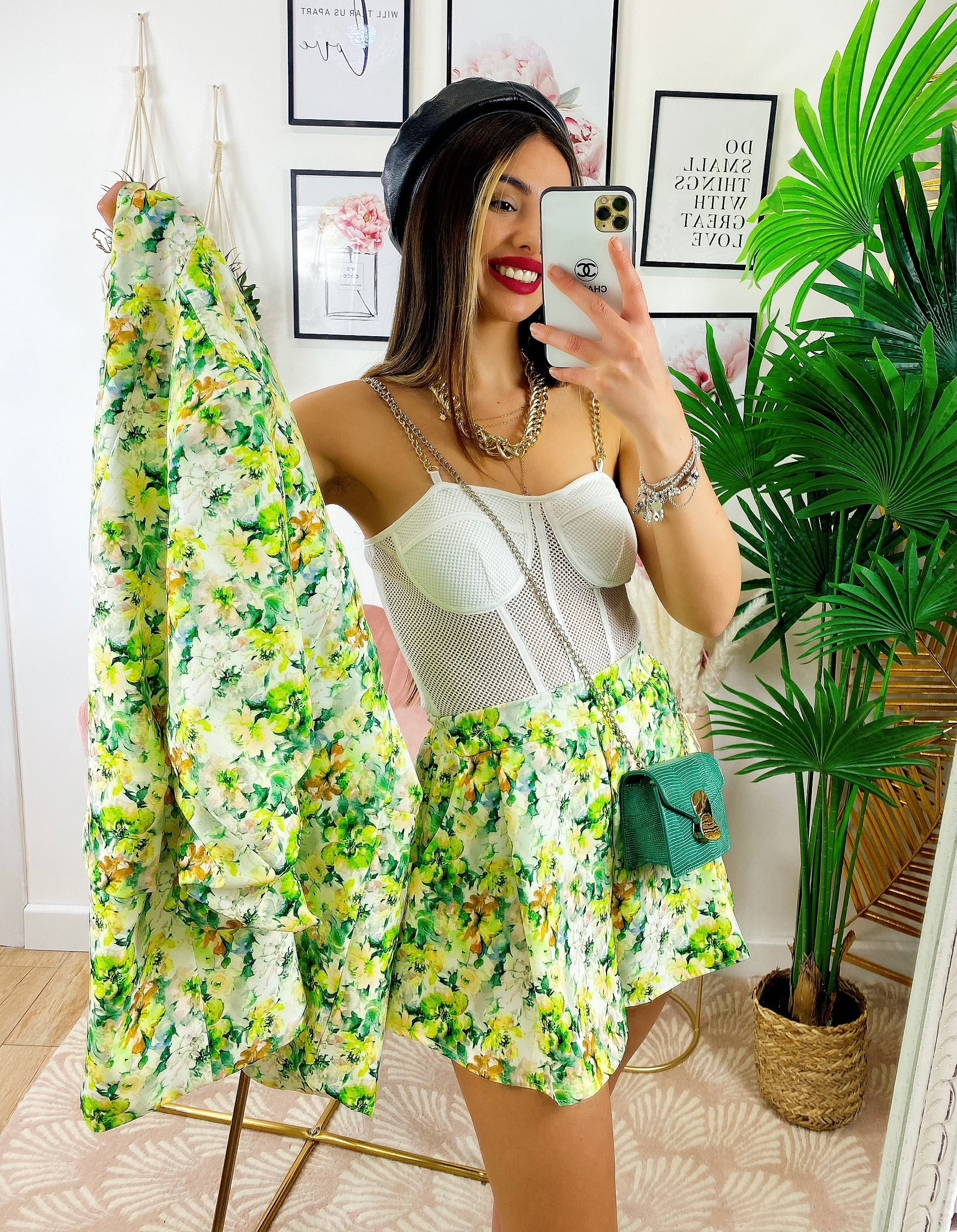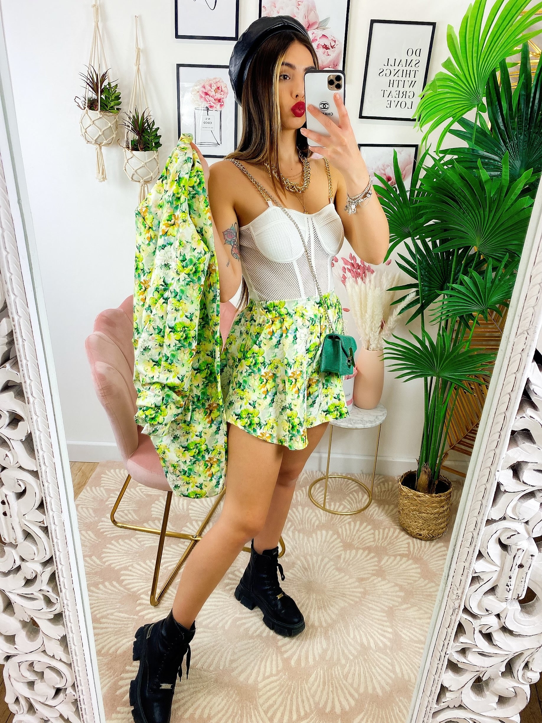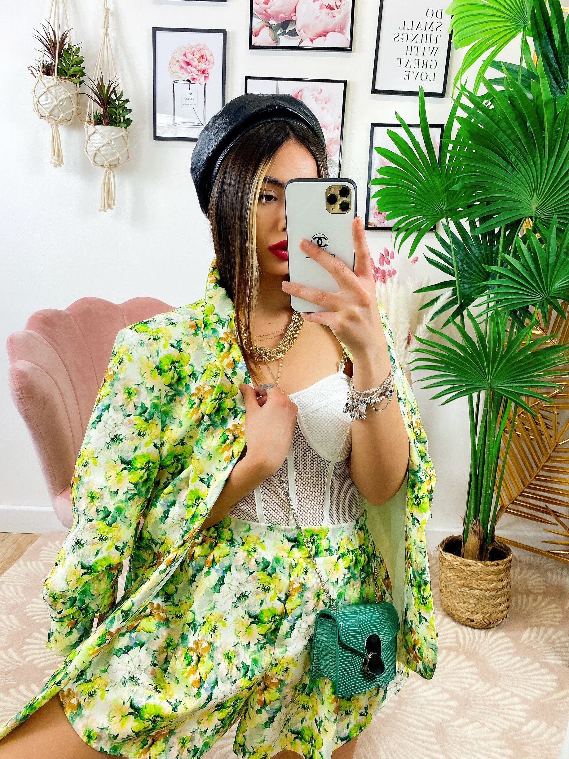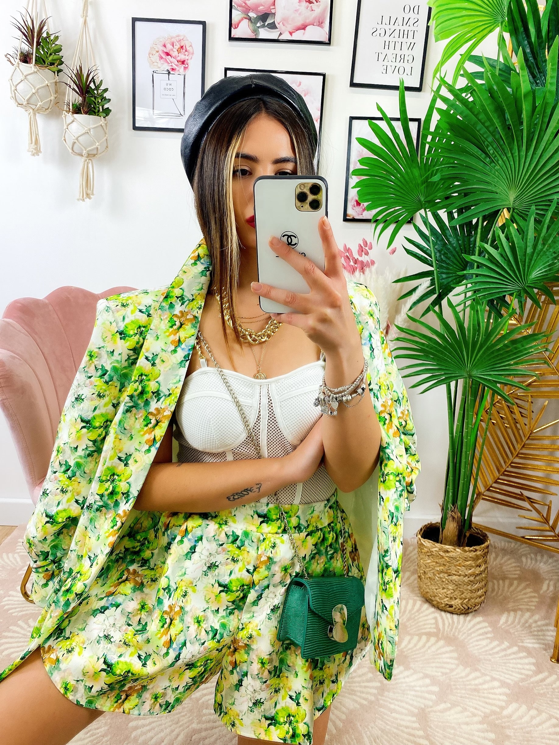 Completo Giacca e Short fiori lime