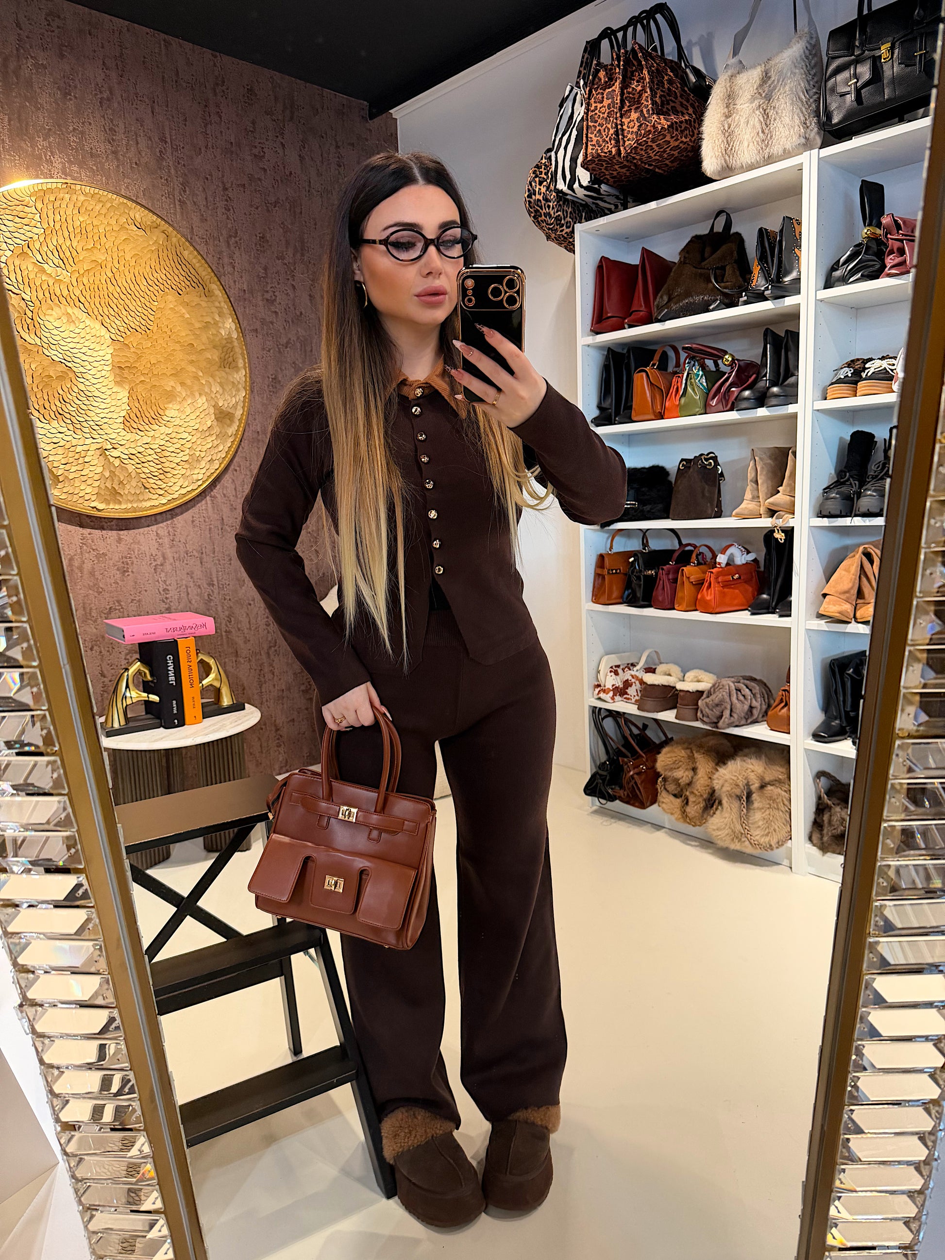 Il tessuto caldo e soffice avvolge con delicatezza, rendendo questo outfit ideale sia per il tempo libero che per look più raffinati. Puoi indossarli insieme per un total look chic, oppure separati per creare outfit sempre nuovi.