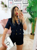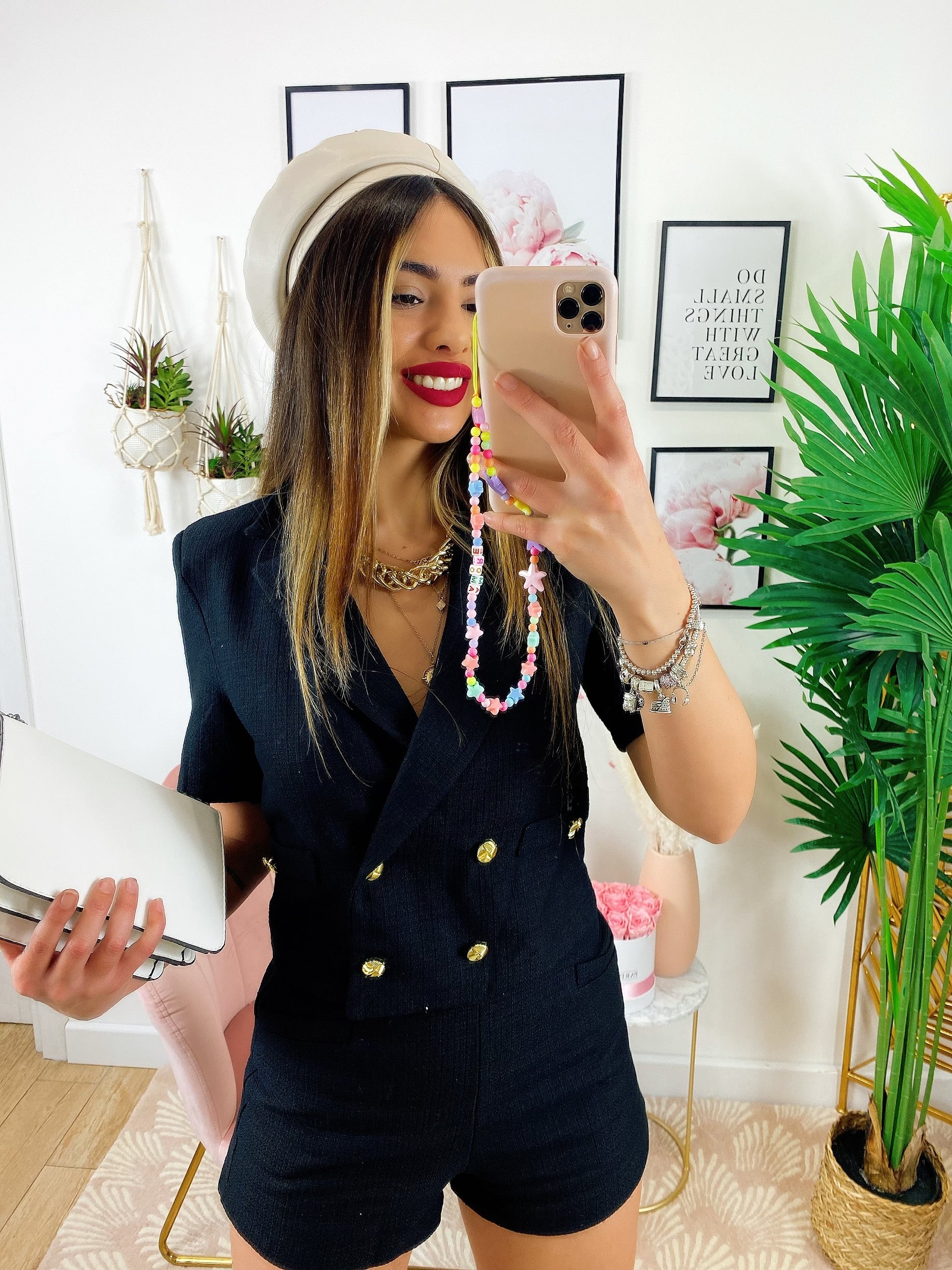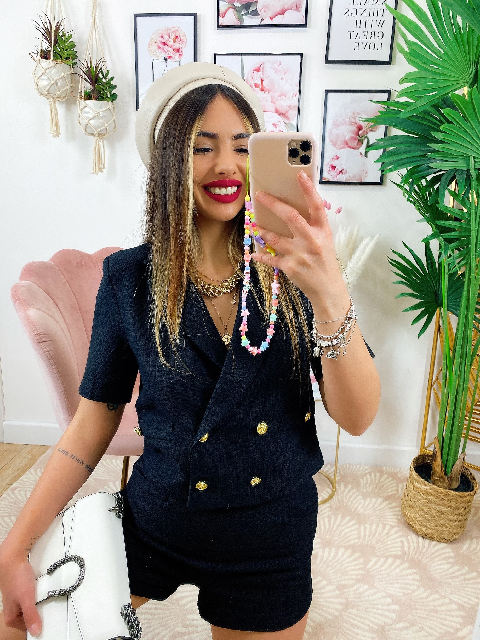 Completo nero con bottoni oro composta da Short più giacca con tasche leggermente elasticizzato.