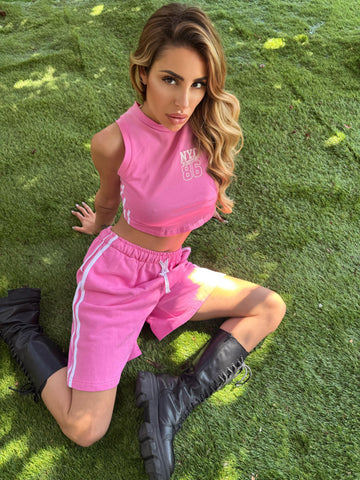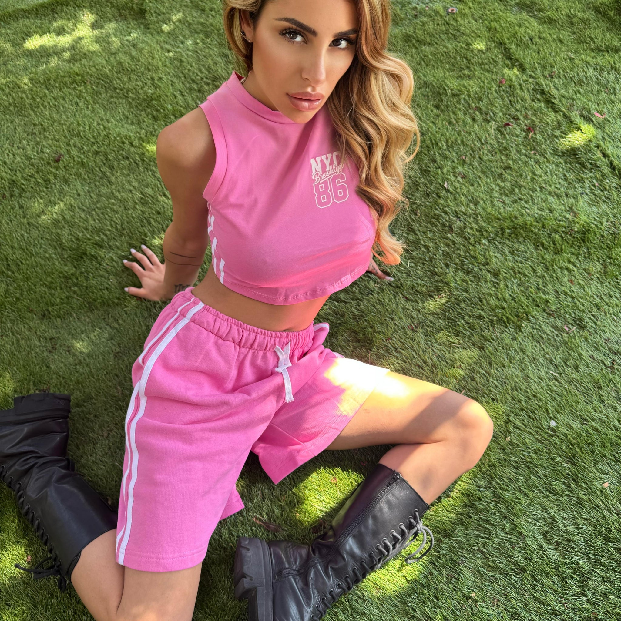 Perfetto per un look casual ma curato, il completo NYC Brooklyn 86 unisce comfort e stile urbano. Realizzato in morbido cotone elasticizzato, è composto da crop top smanicato e shorts con coulisse regolabile e tasche laterali. Il dettaglio stampato “NYC Brooklyn 86” dona un tocco streetwear che non passa inosservato. Ideale per il tempo libero, le passeggiate o i tuoi momenti off-duty.