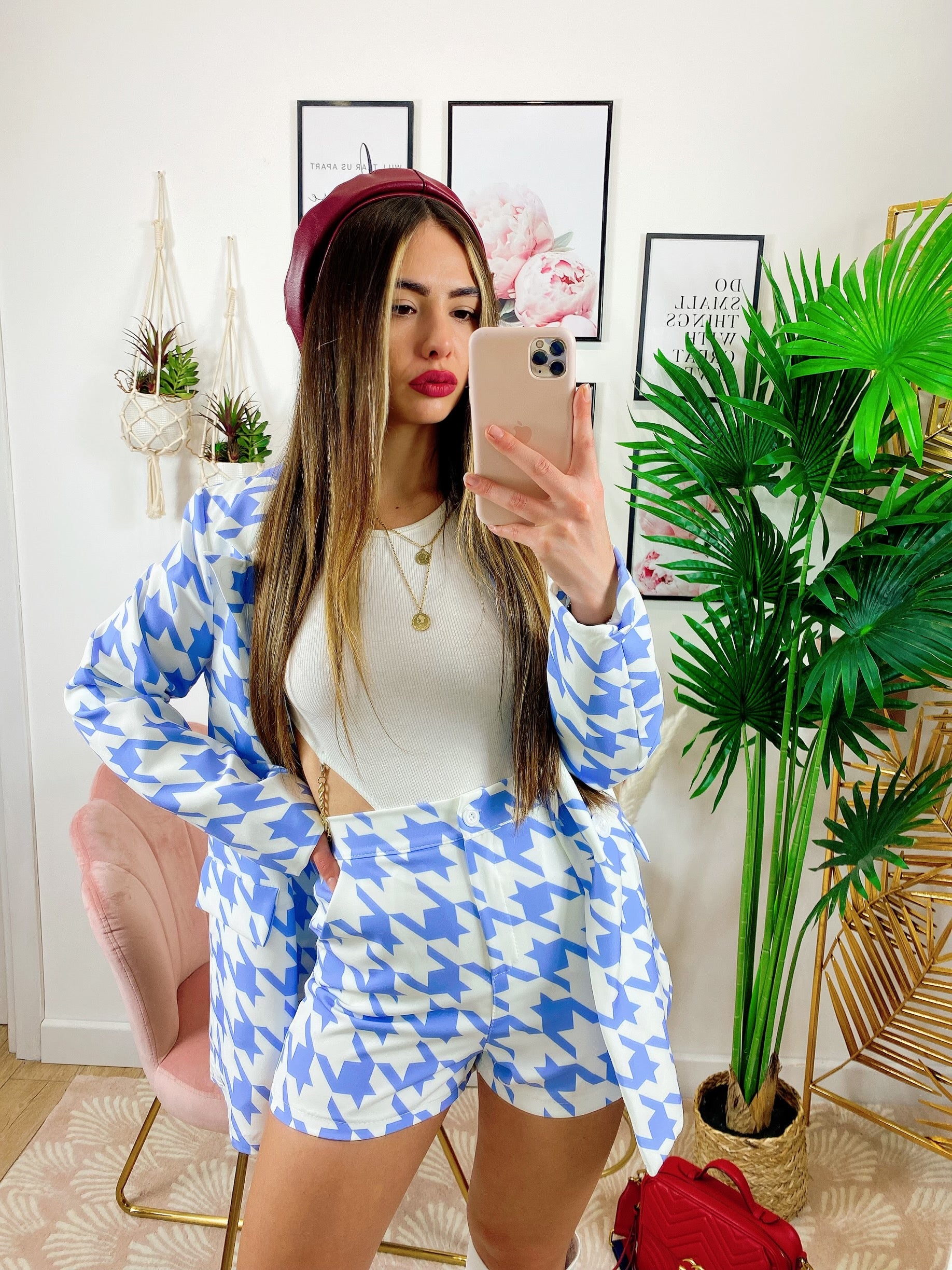Completo pied de poule carta da zucchero Short e giacca. Ottima qualità