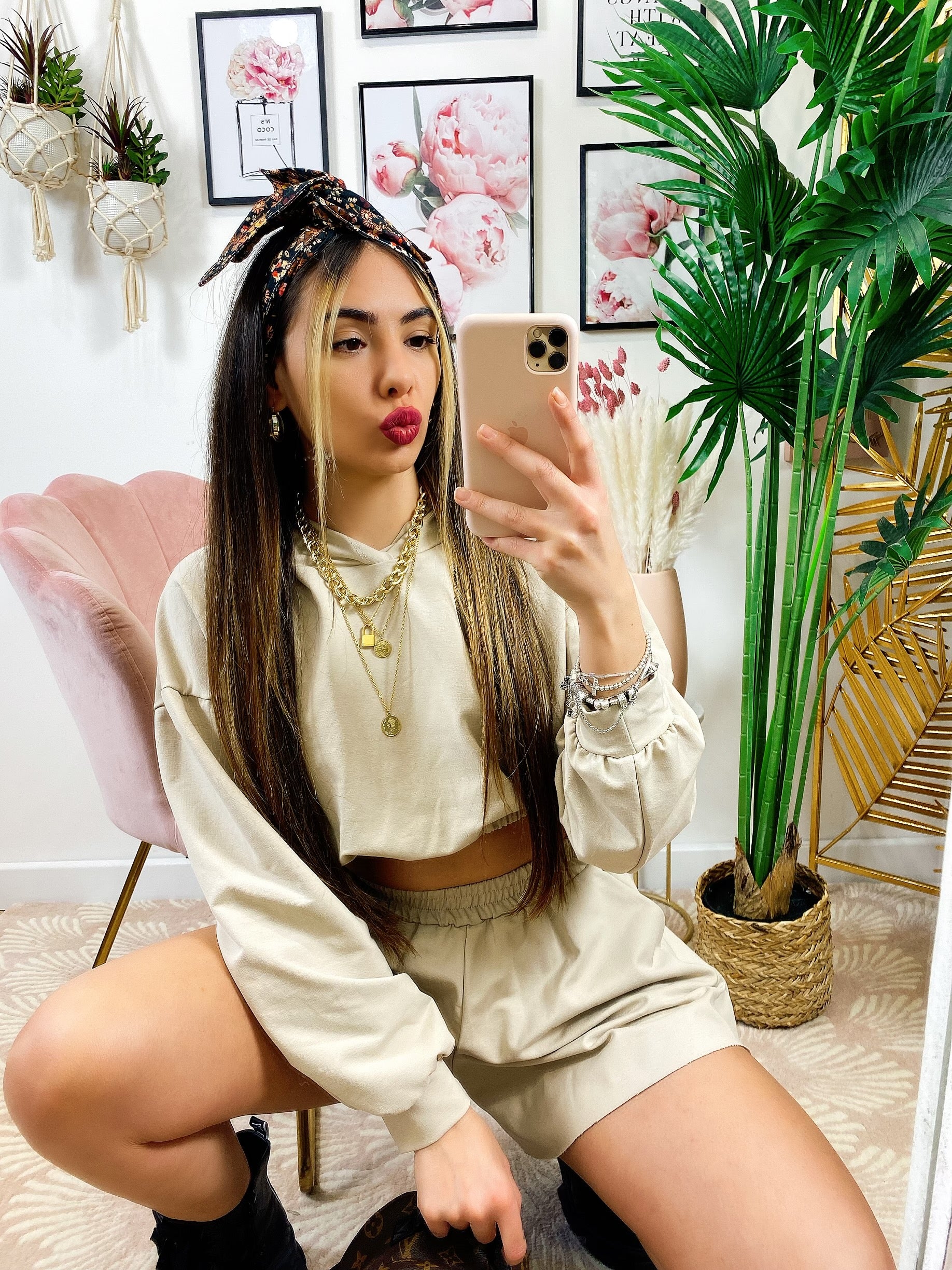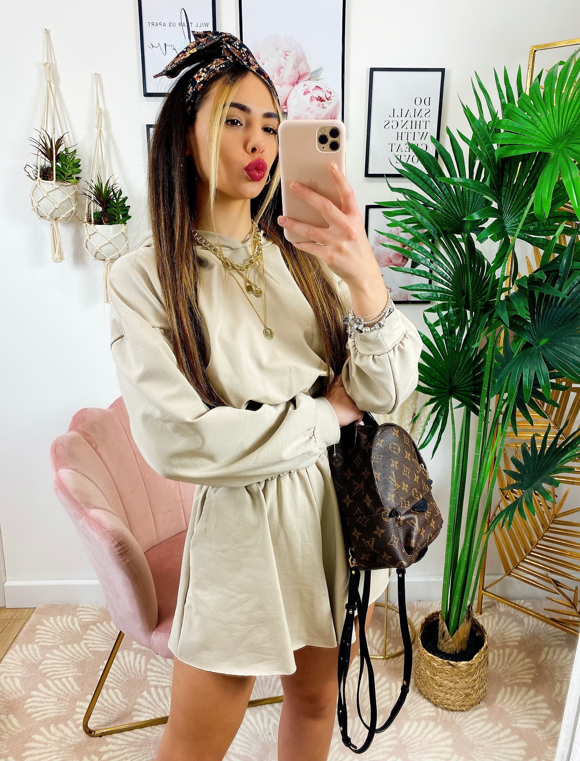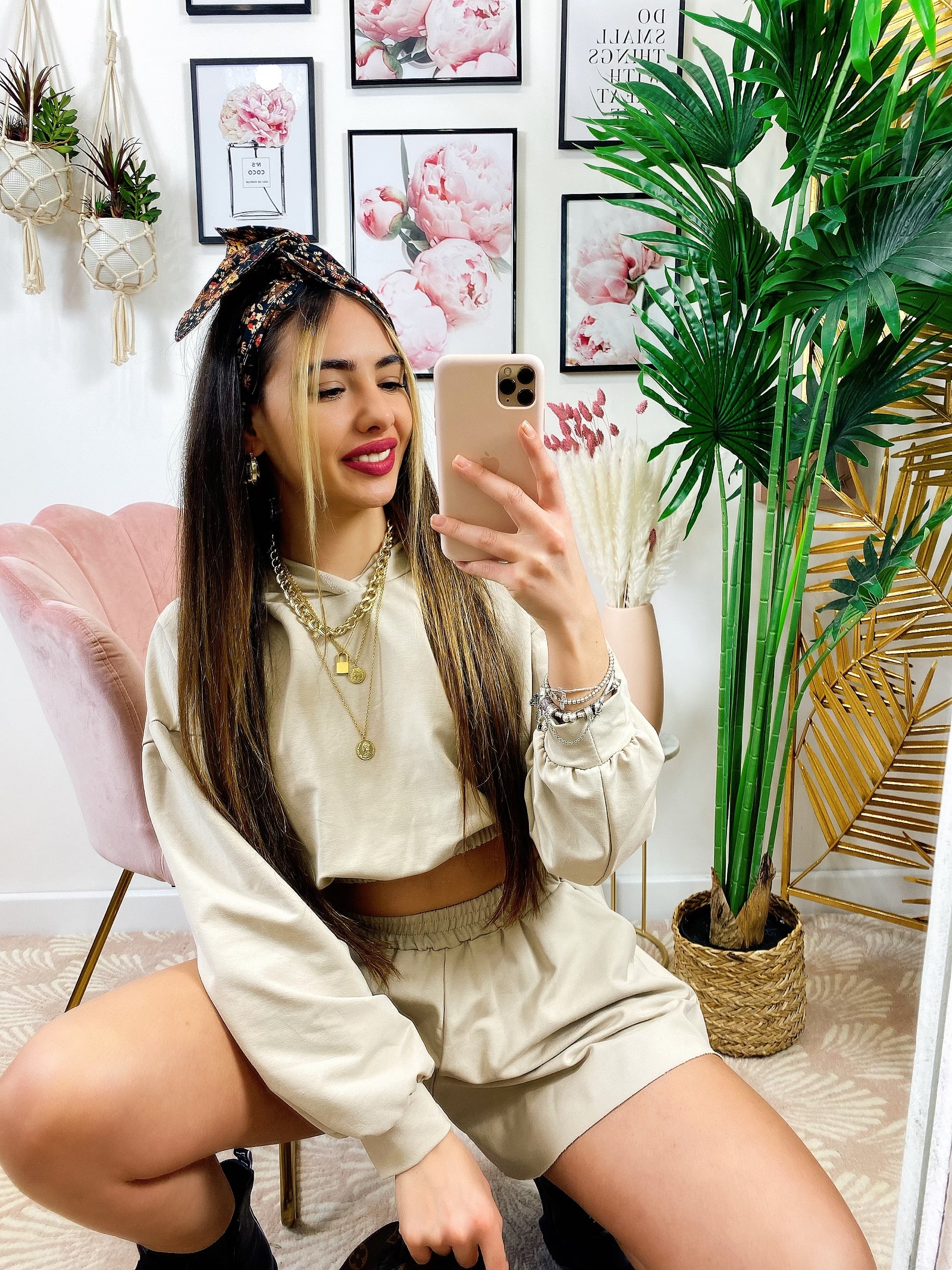 Completo Short e felpa Beige