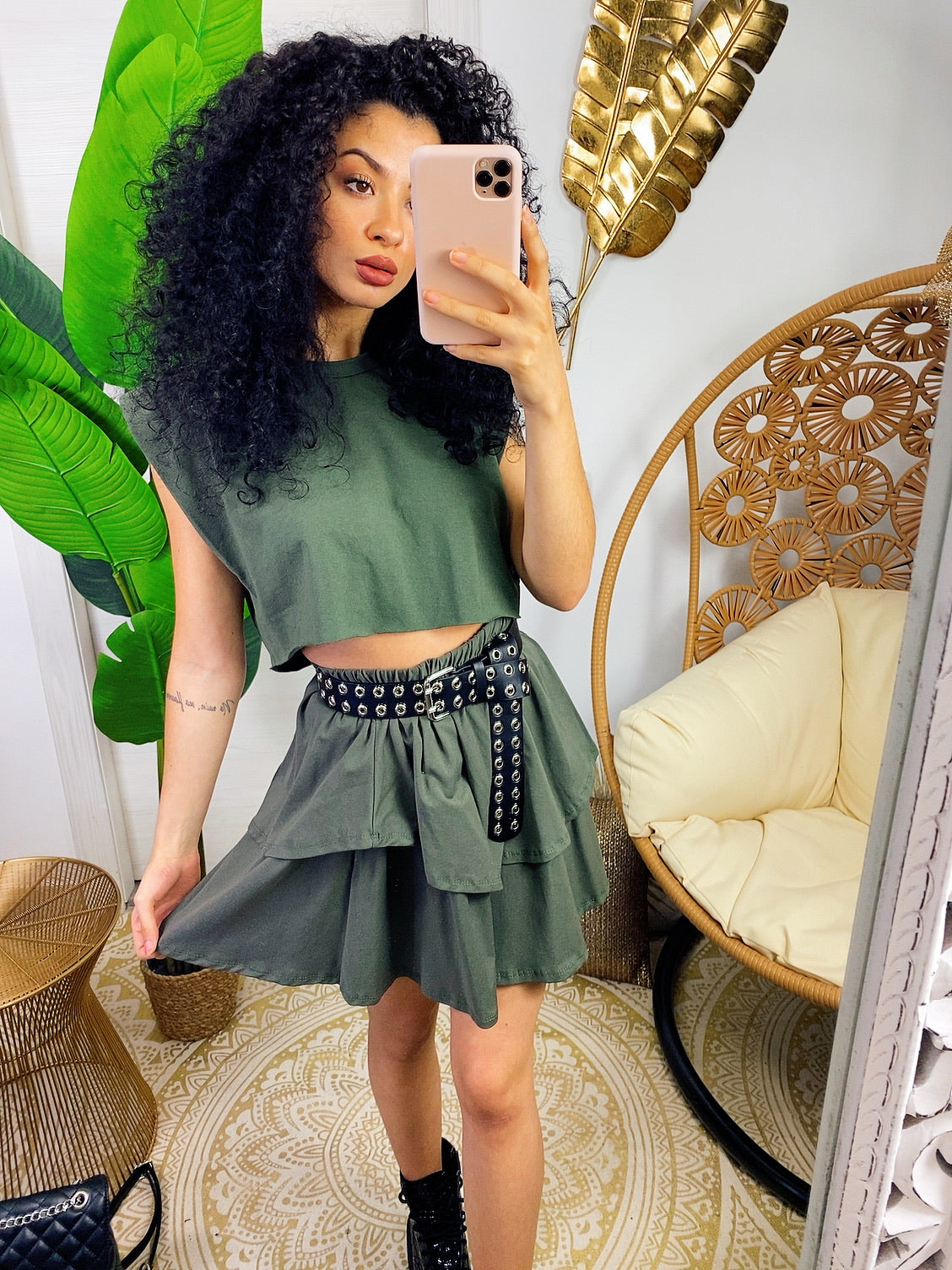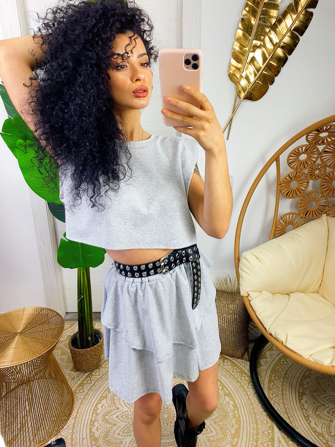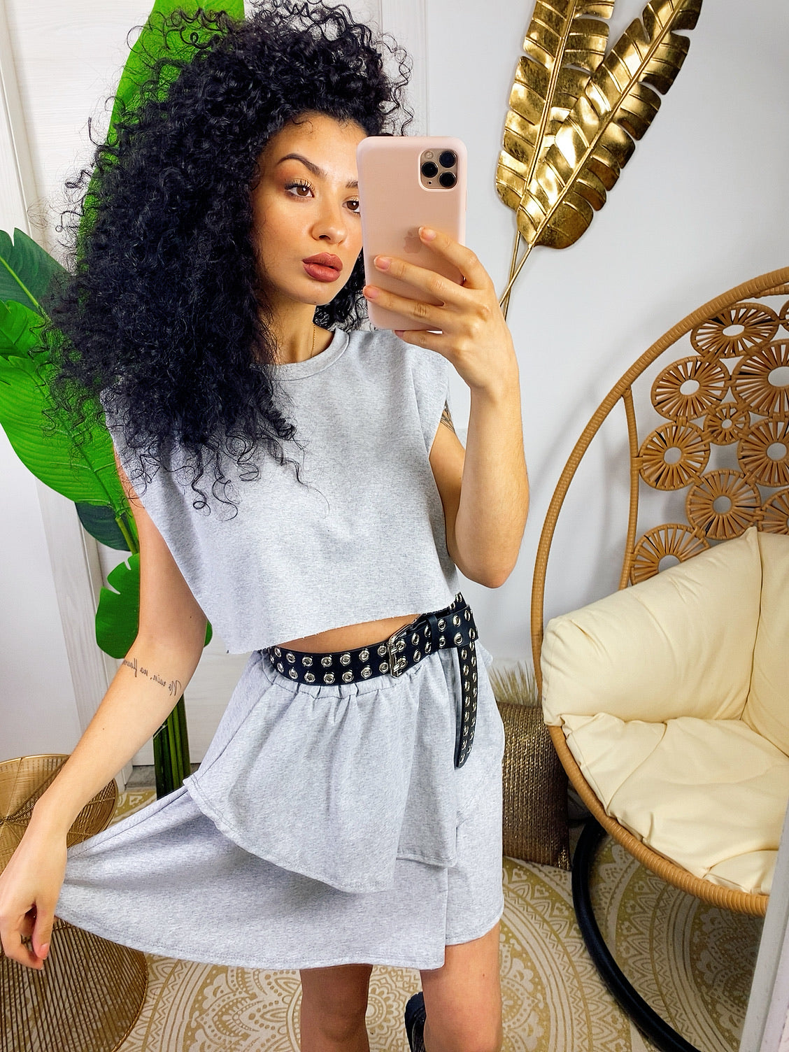 Completo maglia e gonna sportiva. Elasticizzato e garzato per la stagione estiva.