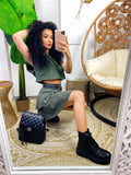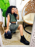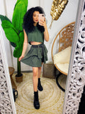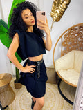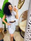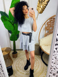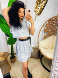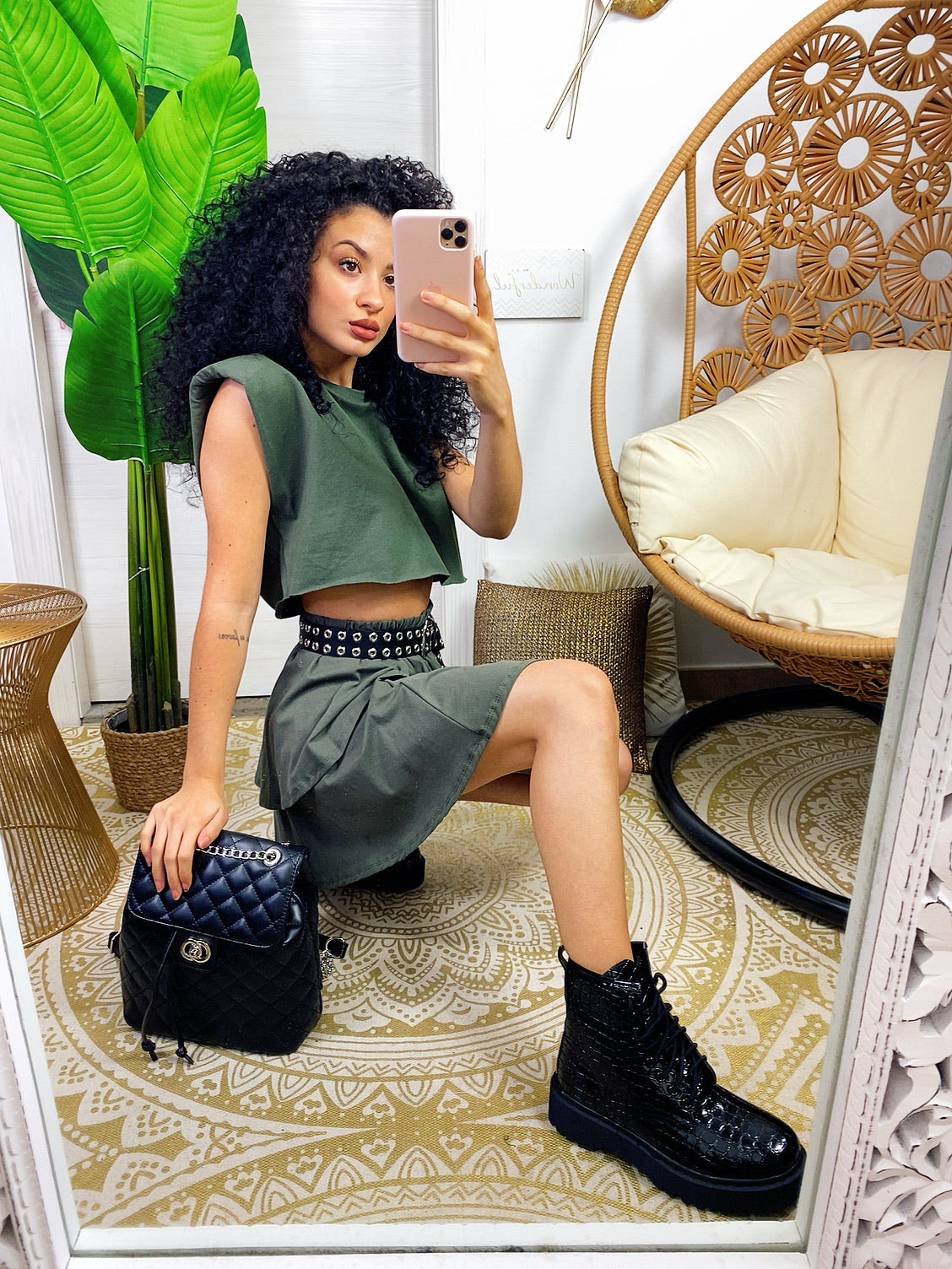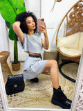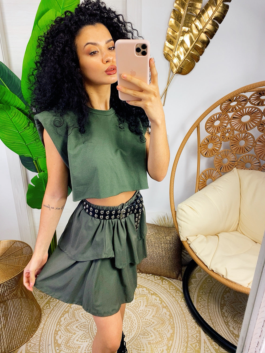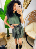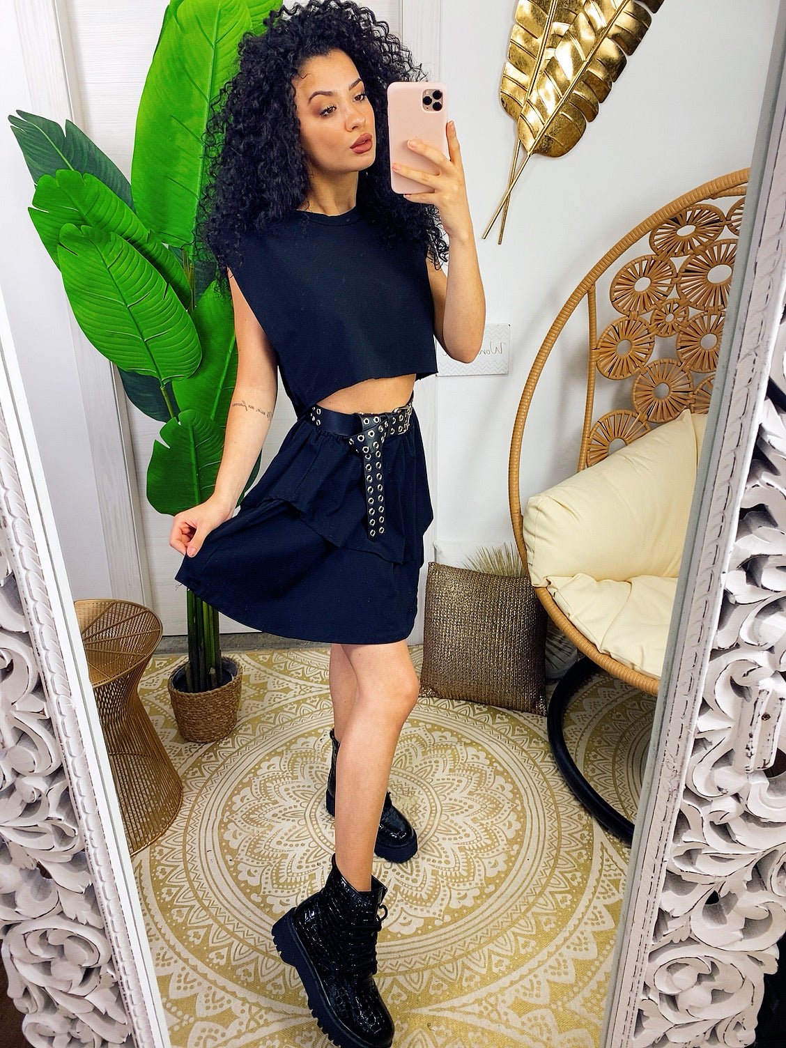 Completo maglia e gonna sportiva. Elasticizzato e garzato per la stagione estiva.