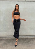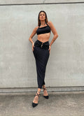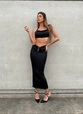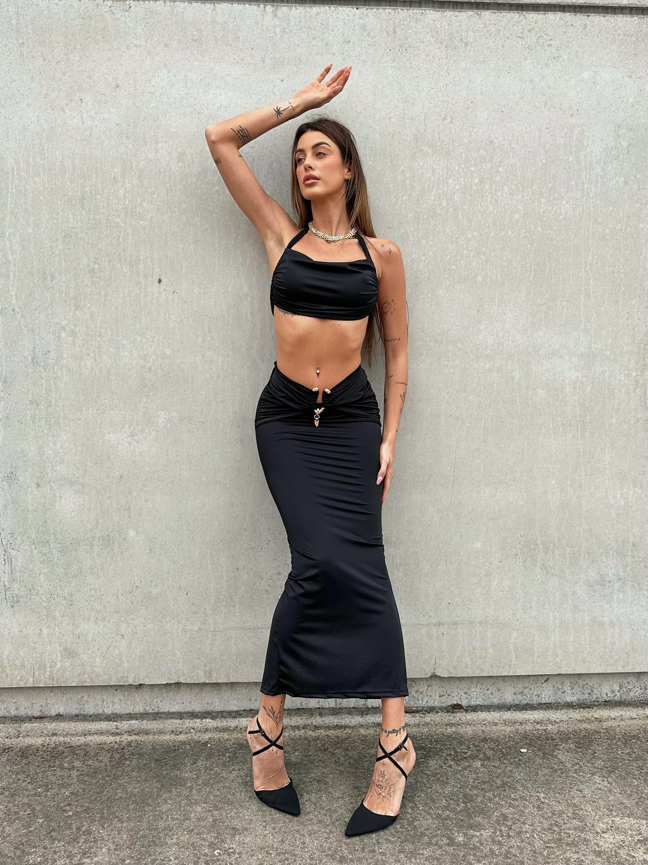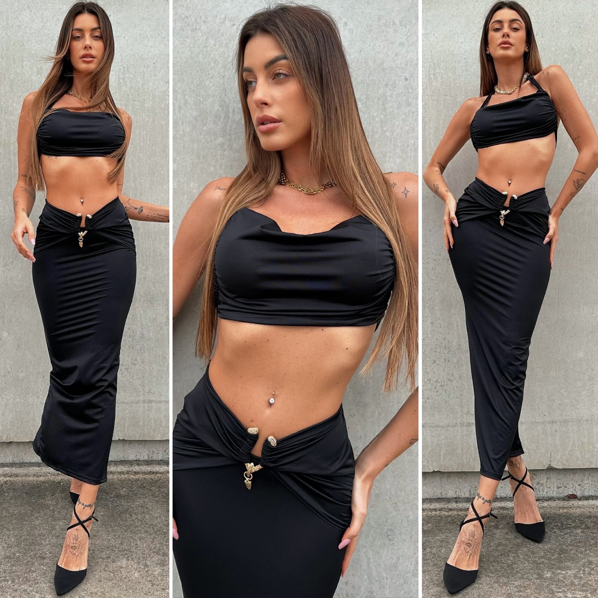Completo top e gonna in lycra con top senza coppe e gonna con gioiello sul davanti