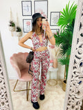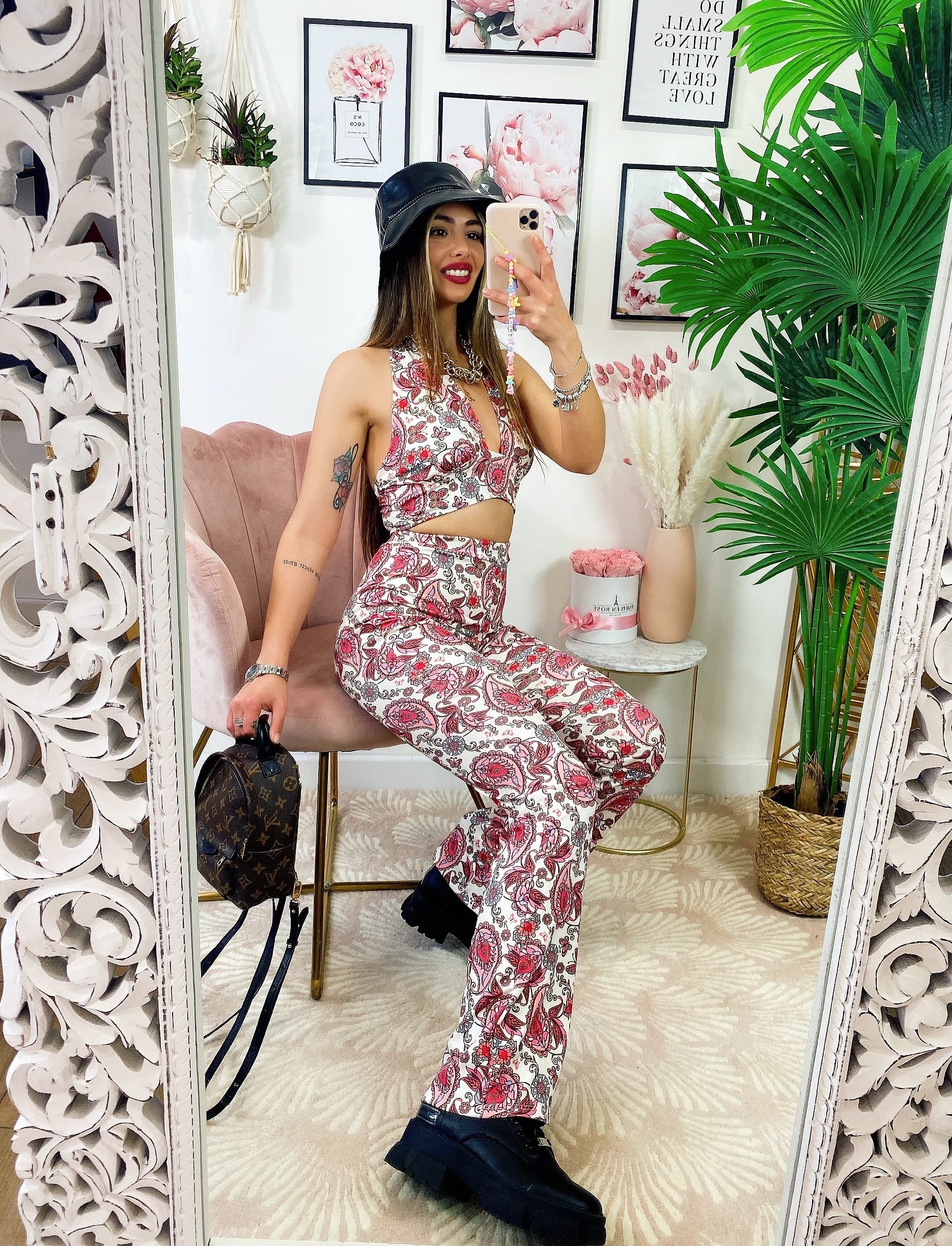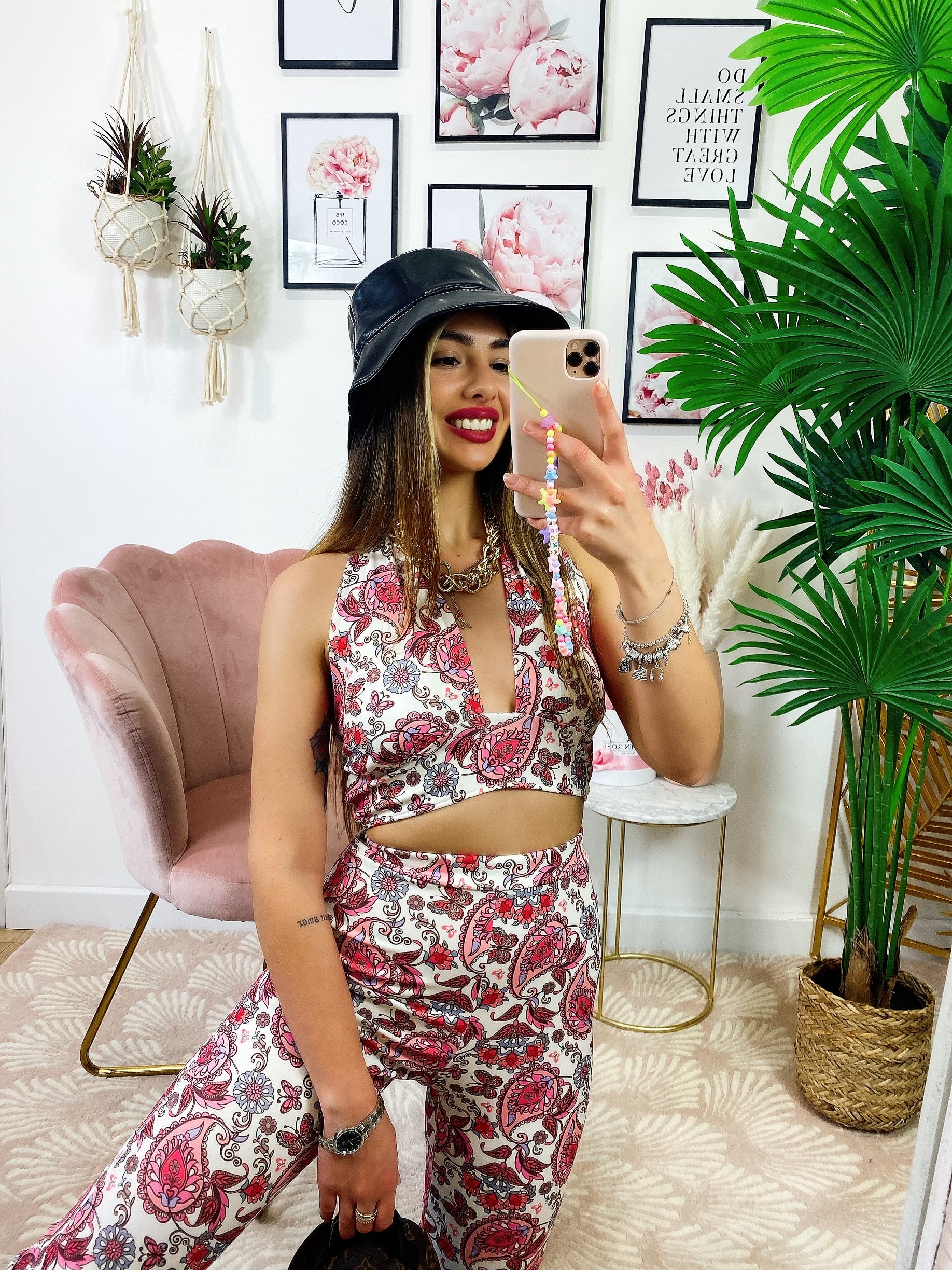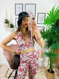 Completo pantalone e top con incrocio dietro al collo. Taglia unica