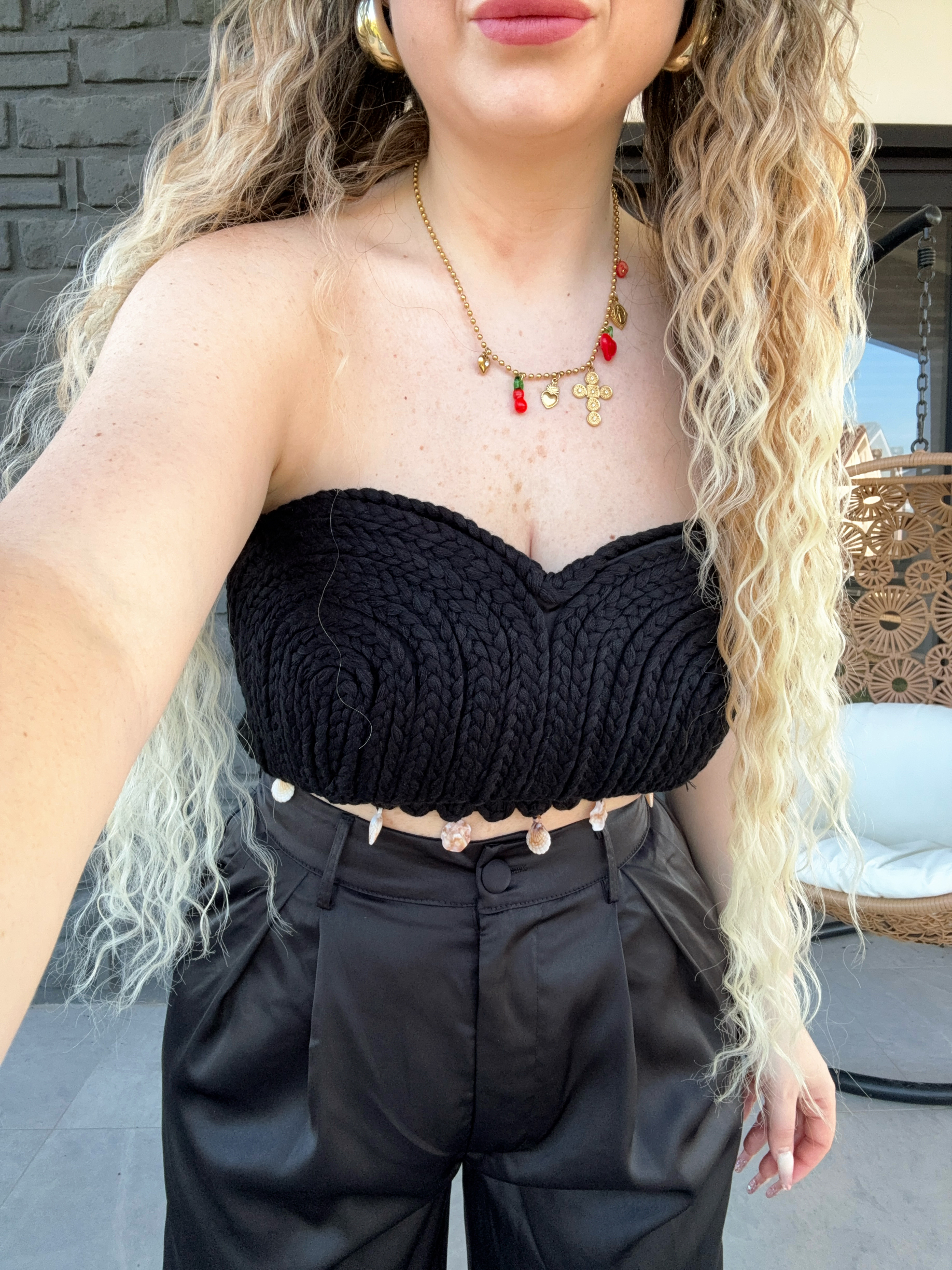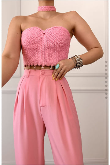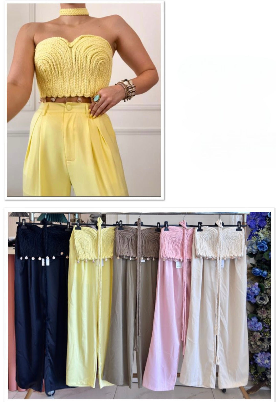 Completo top crochet con conchiglie e pantalone elasticizzato