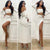 Completo composto da due pezzi. Top a fascia elasticizzato, foderato e senza coppe con manicotti. E gonna midi con elastico in vita e arricciatura con spacco
