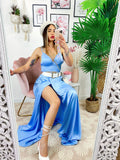 Completo venere in raso con top elasticizzato e gonna con ampio spacco. Ottima qualità