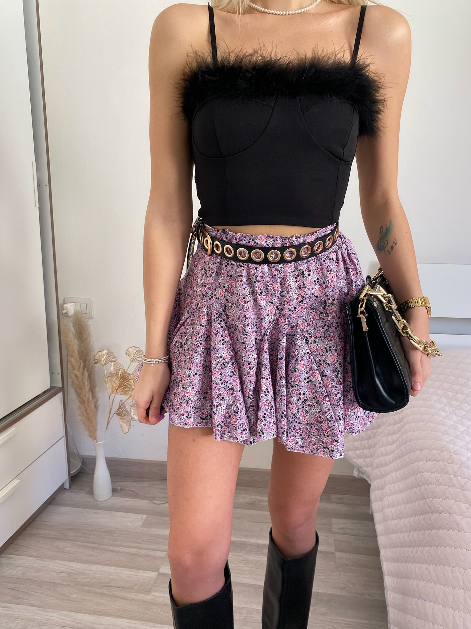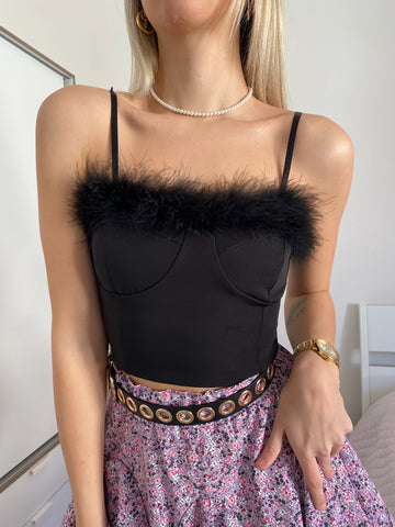 Top con elastico nel dietro e coppe piume nel décolleté.