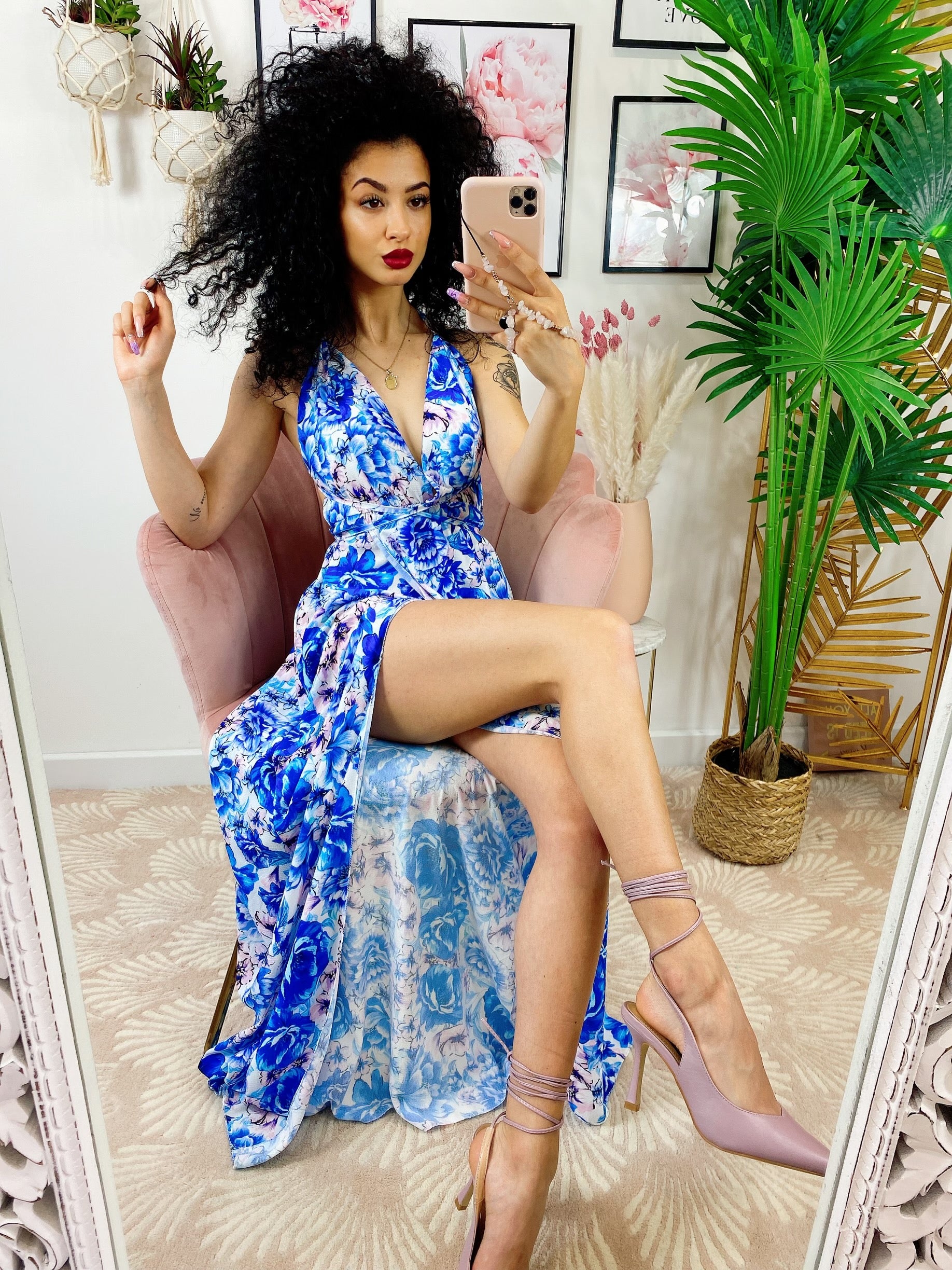 Dress Afrodite, abito lungo con maxi spacco. Con coppe e con possibilità di diverse modalità d'incrocio: a X dietro la schiena o solo al collo. In raso.