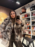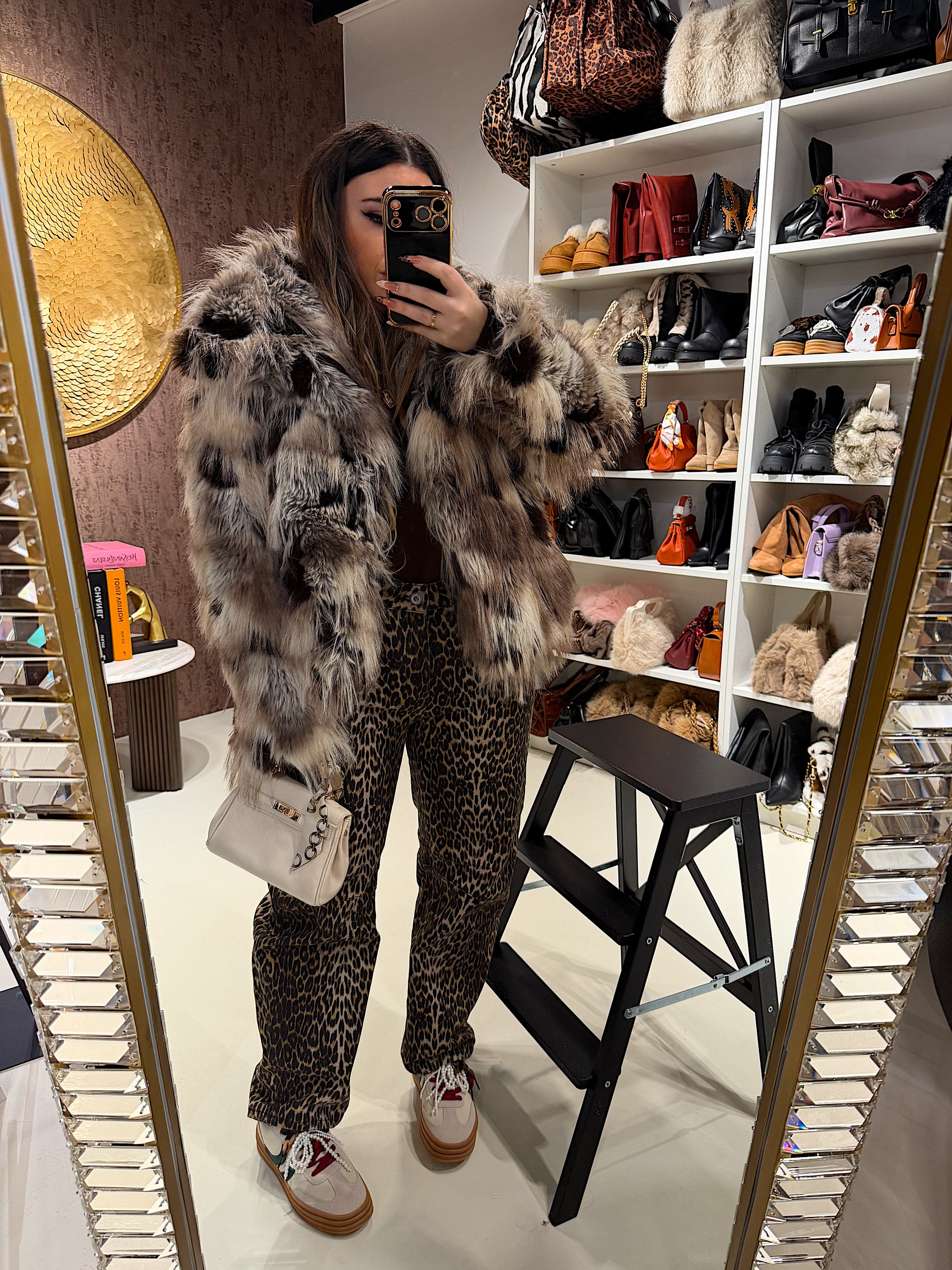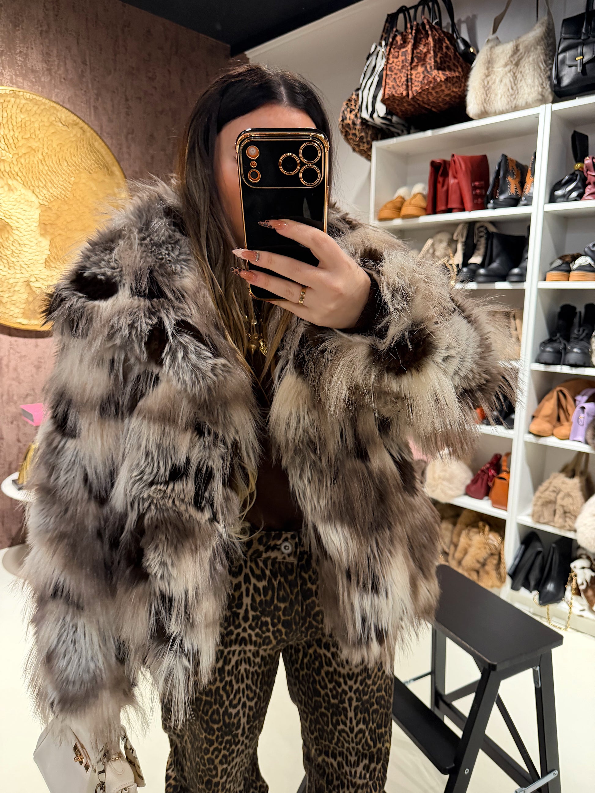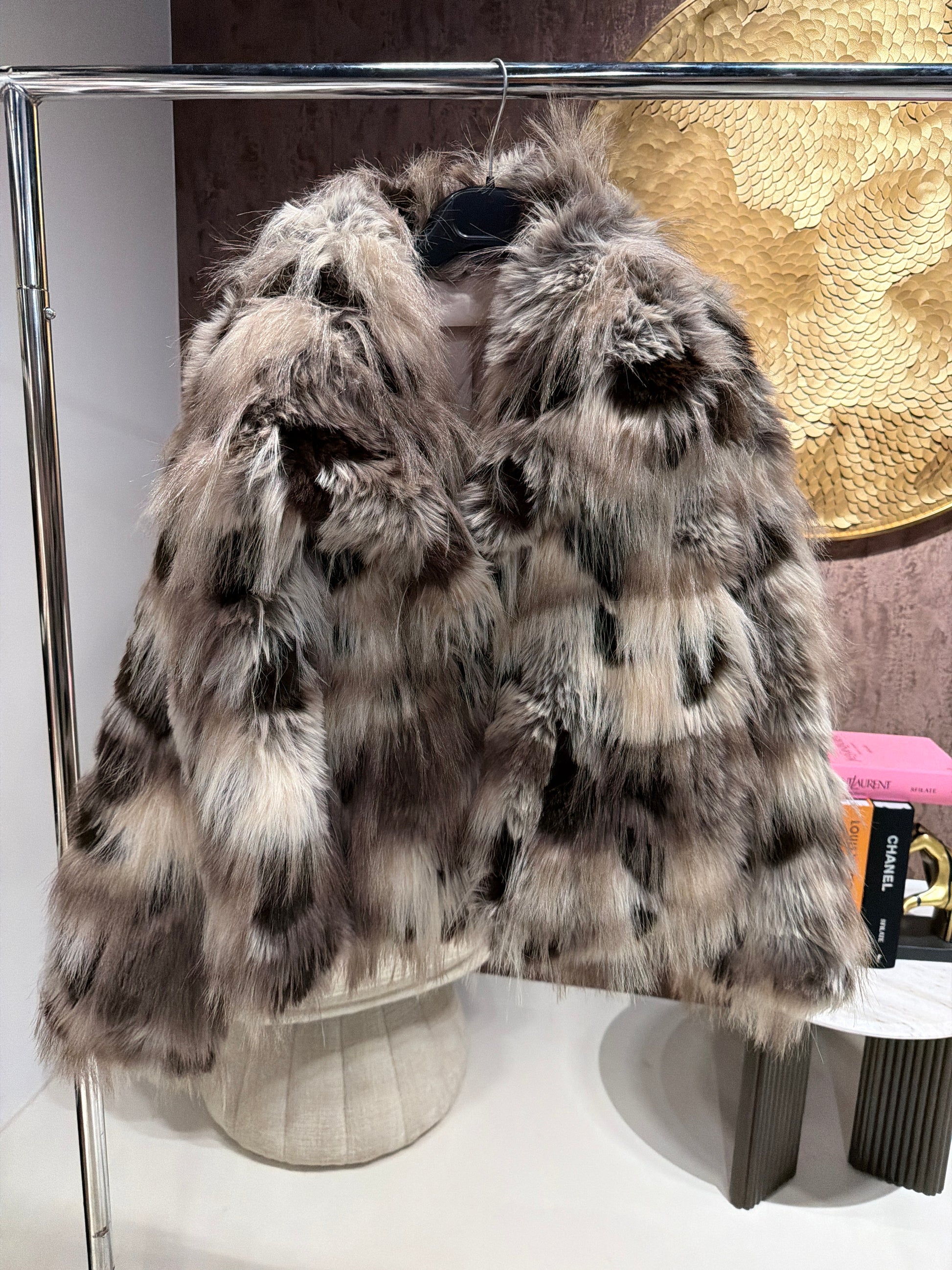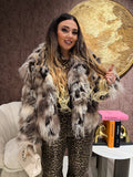Eco-pelliccia foderata in questa fantasia multicolore