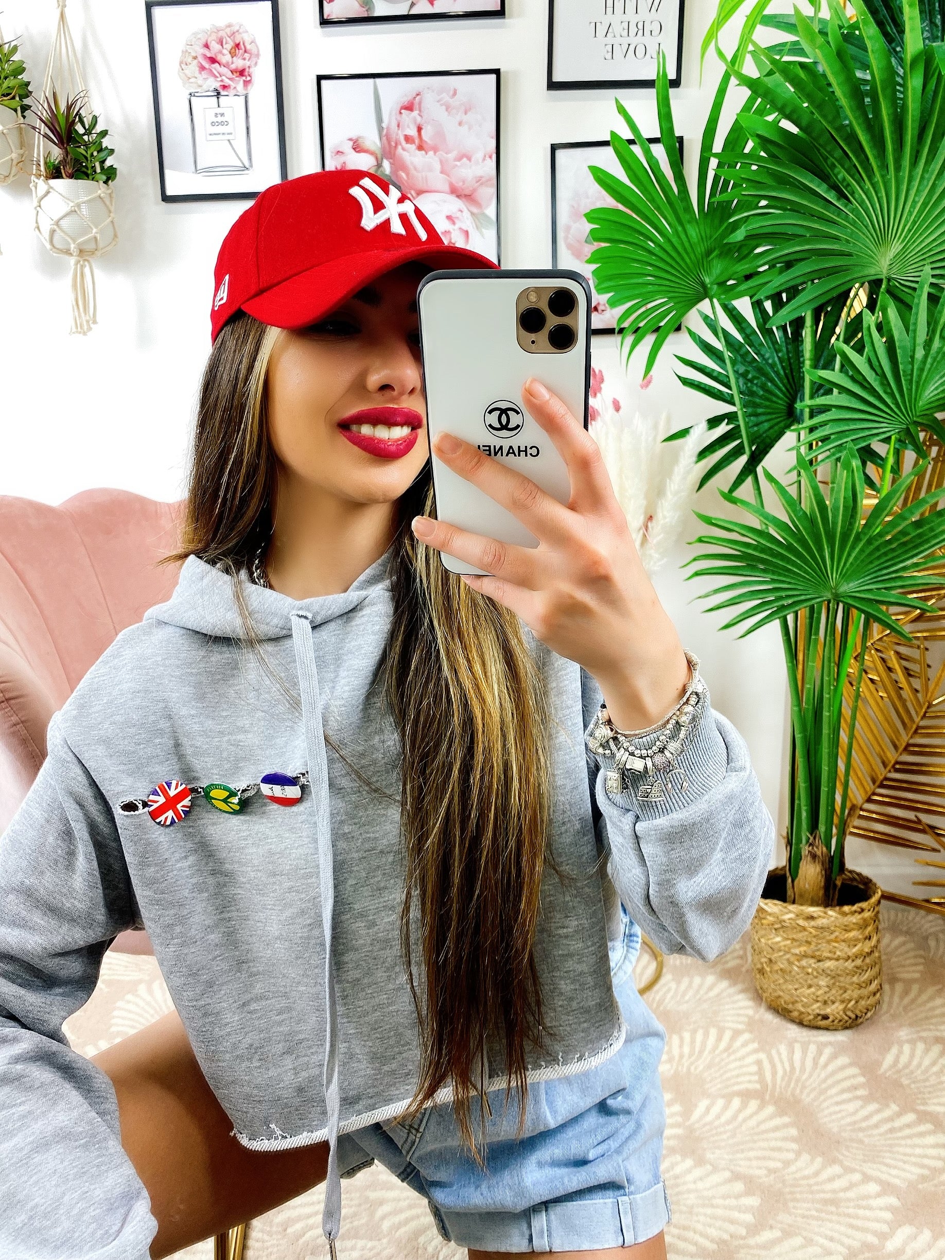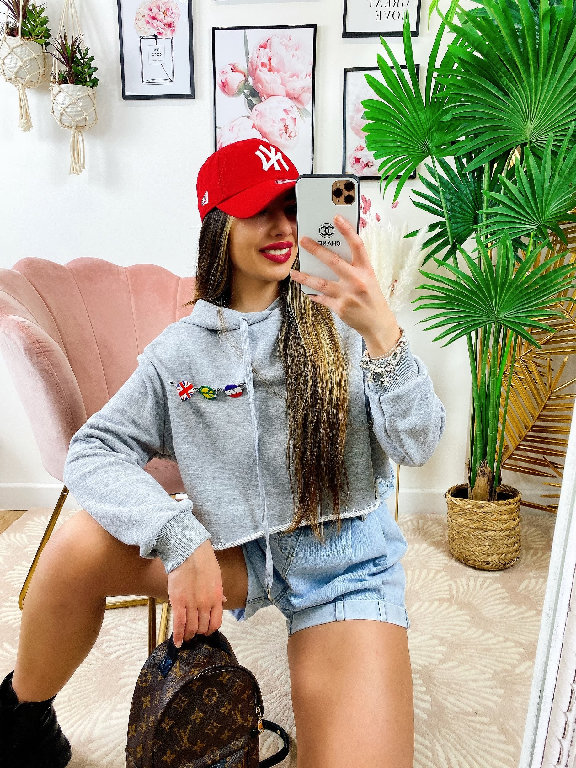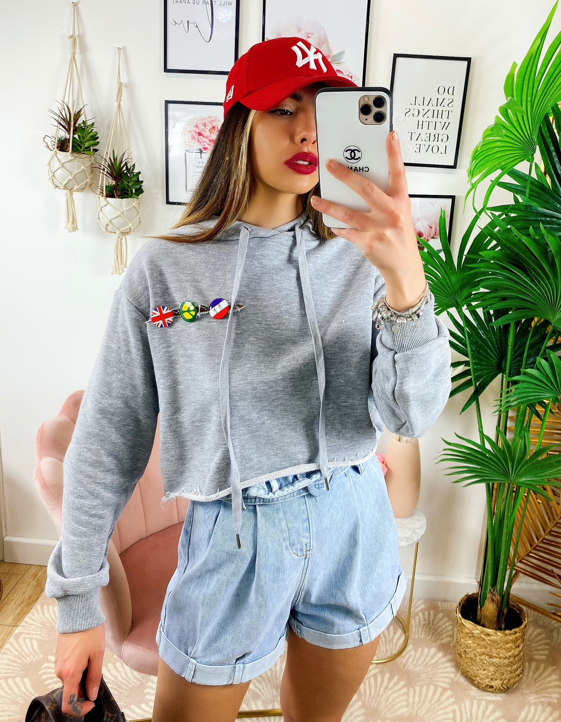 Felpa con spille e spacco Grigia, ottima per le giornate primaverili.