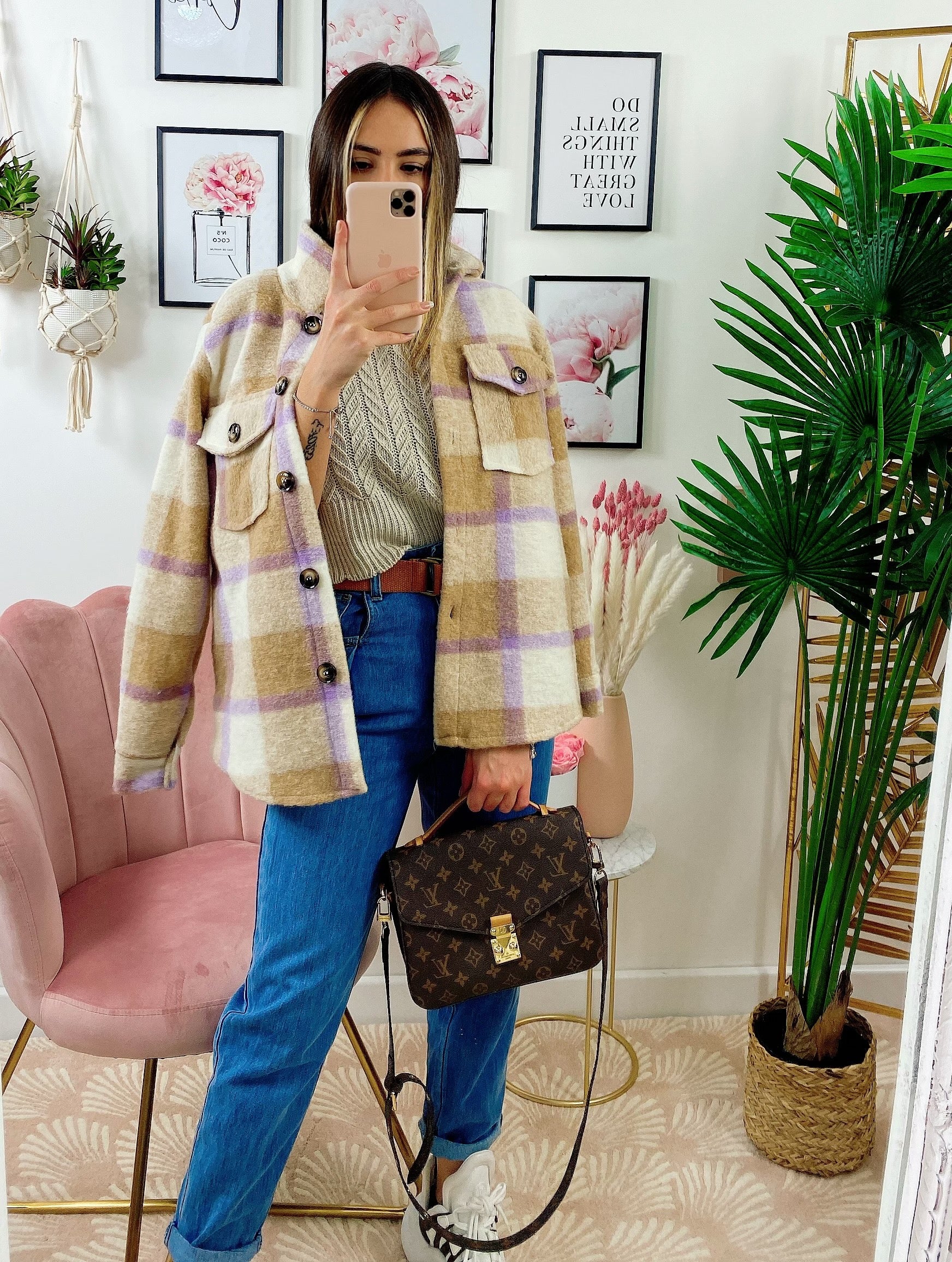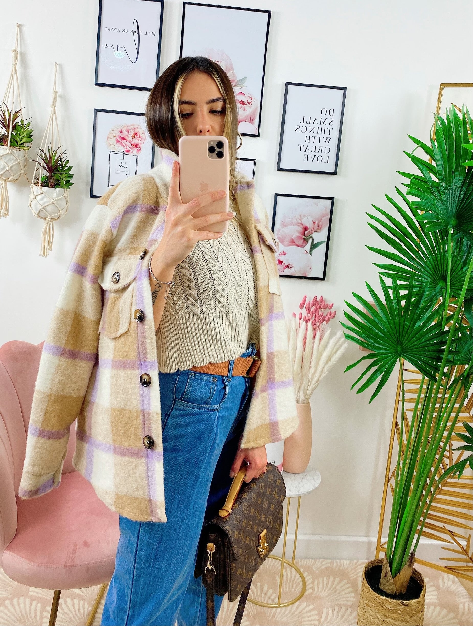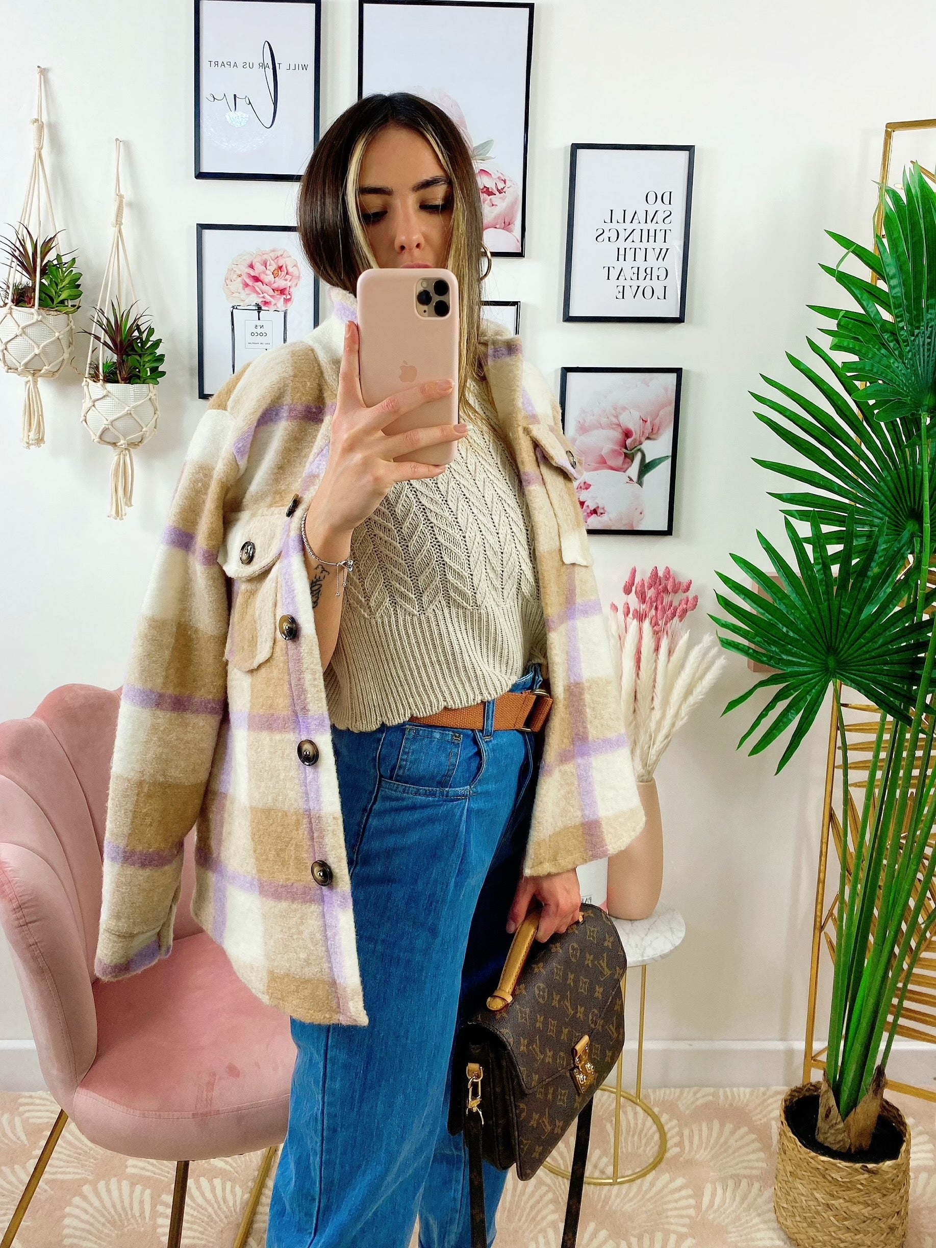 Giacca a quadri Beige/Lilla